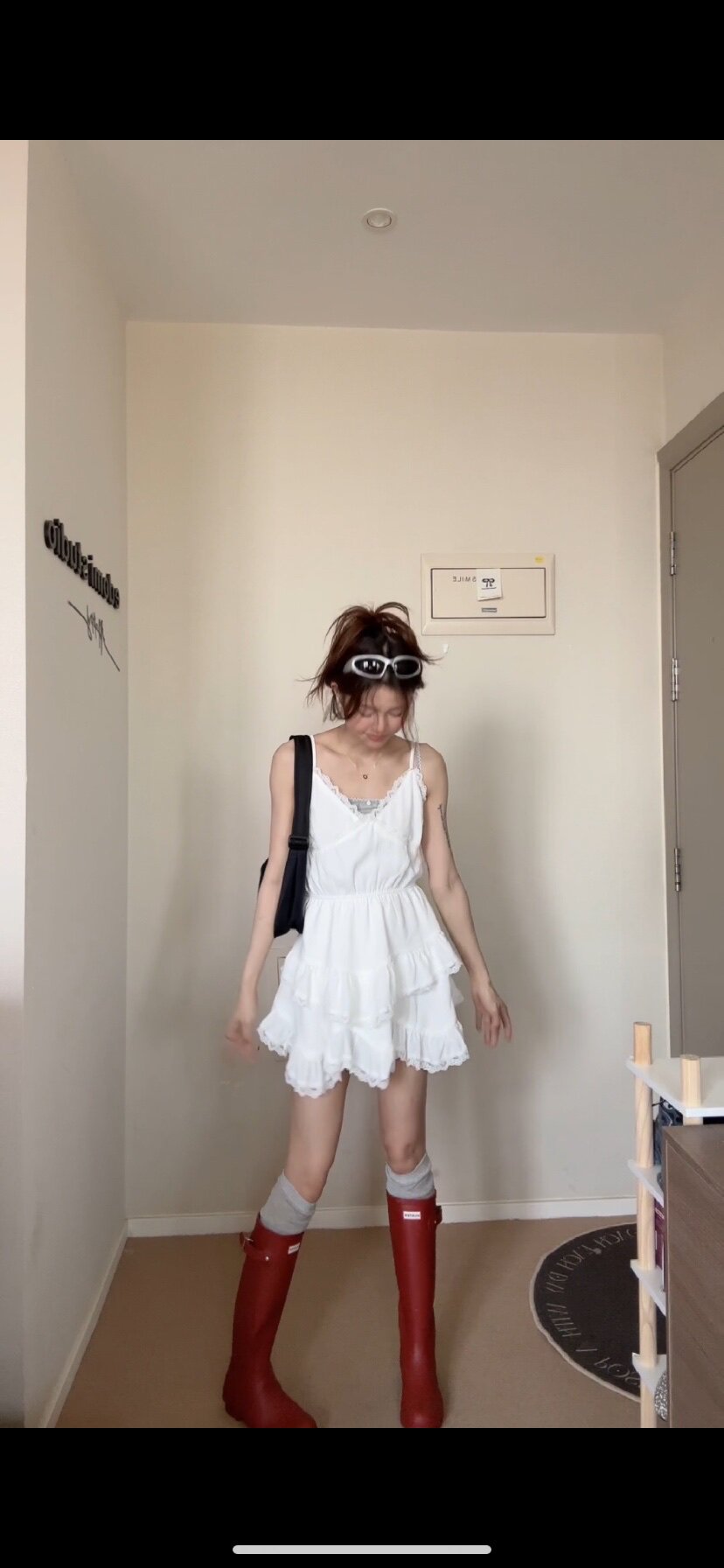 法式白裙搭雨靴 出其不意的好看