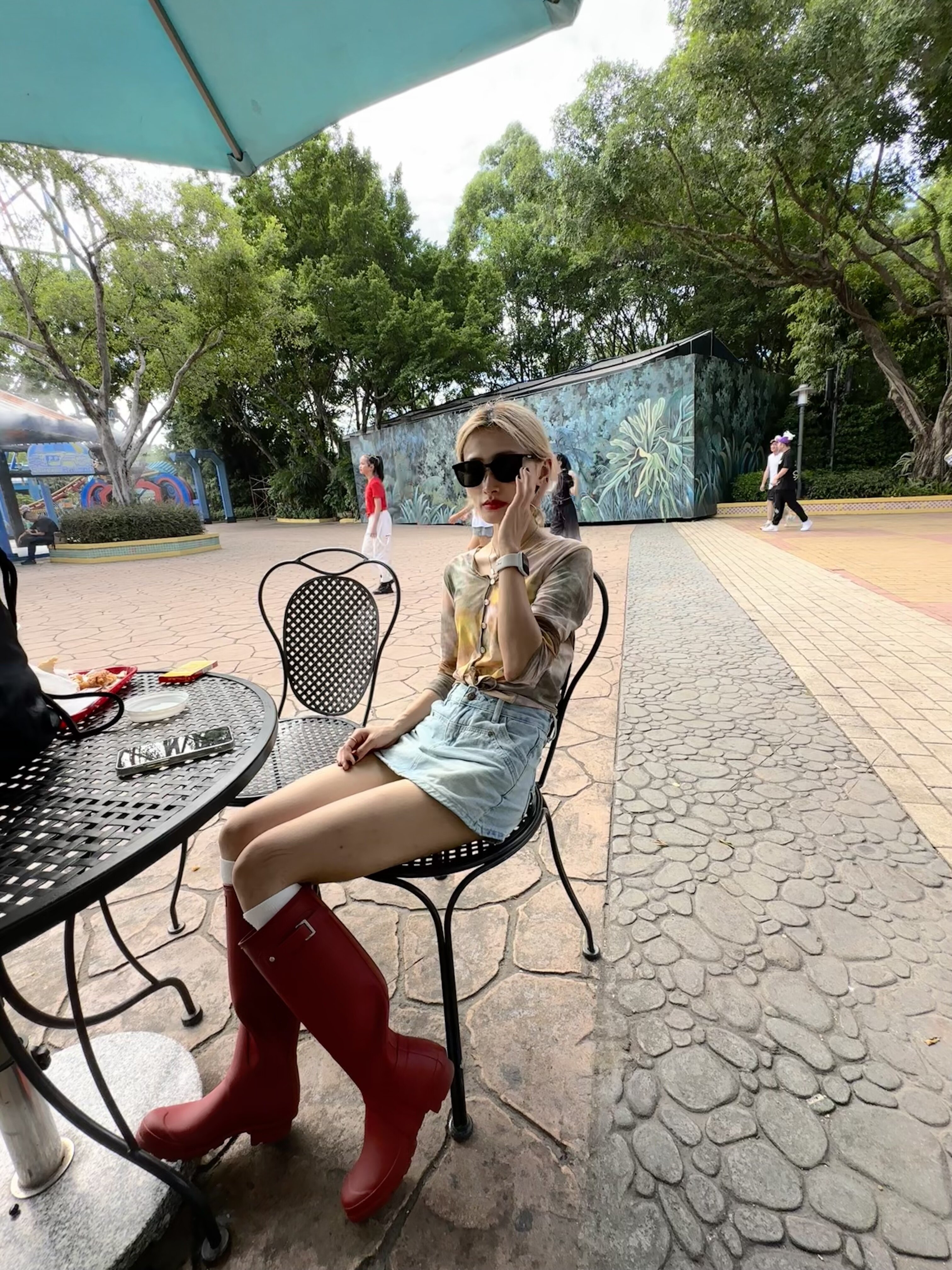 红色雨靴太出片了简直!! 逛公园暴走一天也不会累