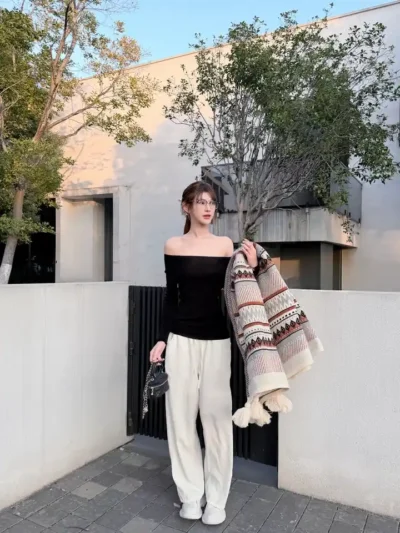 盈瓷品质|醋纤羊毛珠绣新中式打底衫女冬国风提花驼鸟毛内搭上衣