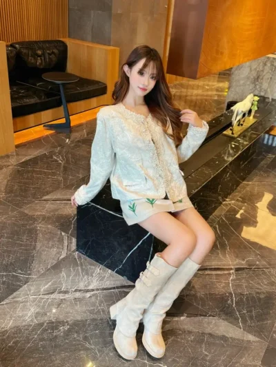 CYNR原创设计蓬松手作感澳毛长毛粗针针织收腰开衫短裙小香风套装