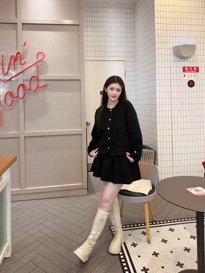 Maison Wester金扣双口袋短裙套装,解锁冬日千金风穿搭!短款显高显瘦,金扣复古精致。双口袋俏皮,套装省心。配长靴酷飒出街,配短靴甜美约会,配连裤袜优雅通勤。一套搞定约会、派对、日常各种场合,让你步步生姿。