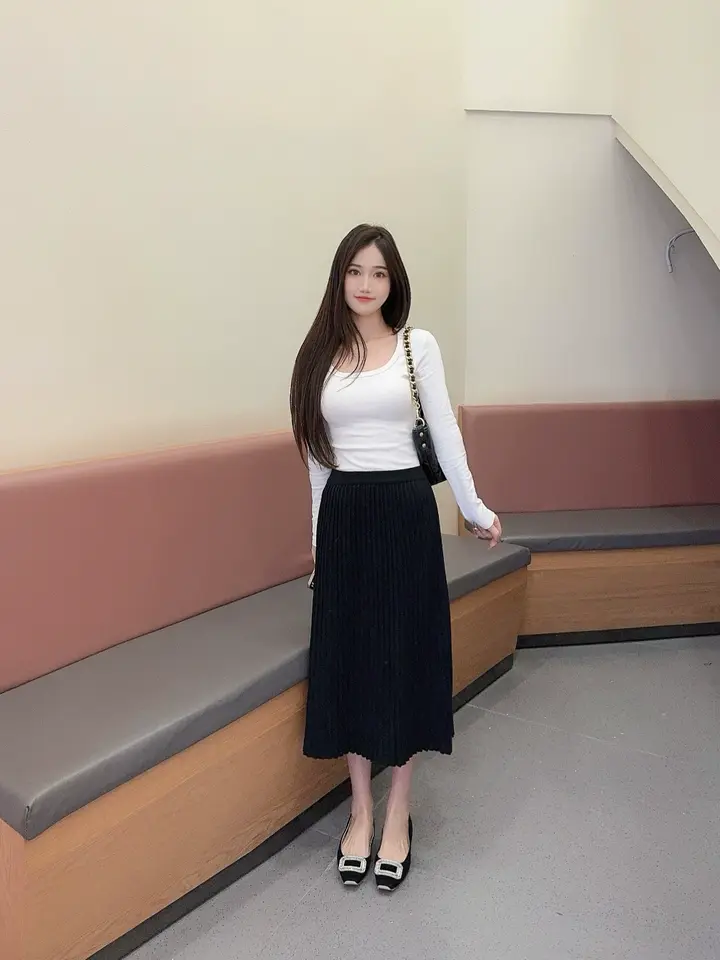CYNR褶皱收腰A字长裙,解锁复古气质穿搭!半高polo领修饰天鹅颈,褶皱收腰勾勒S曲线。A字裙摆遮肉显高,打底单穿皆出彩。配西装干练通勤,搭风衣优雅出街,配针织开衫温柔甜美。一条搞定约会、职场、聚会各种场合,让你步步生姿。