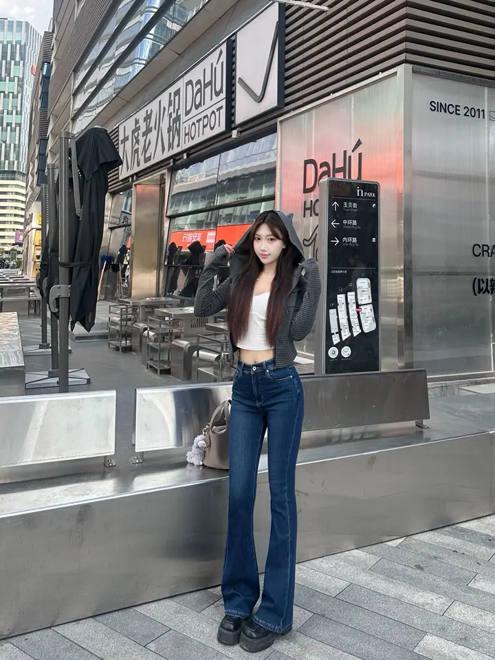 信购春季爆款!复古高腰微喇叭牛仔裤,四面弹紧身提臀显瘦,四季百搭色实用。搭配针织衫温柔气质,配卫衣休闲减龄。一条让你穿出复古时髦感,美得毫不费力!