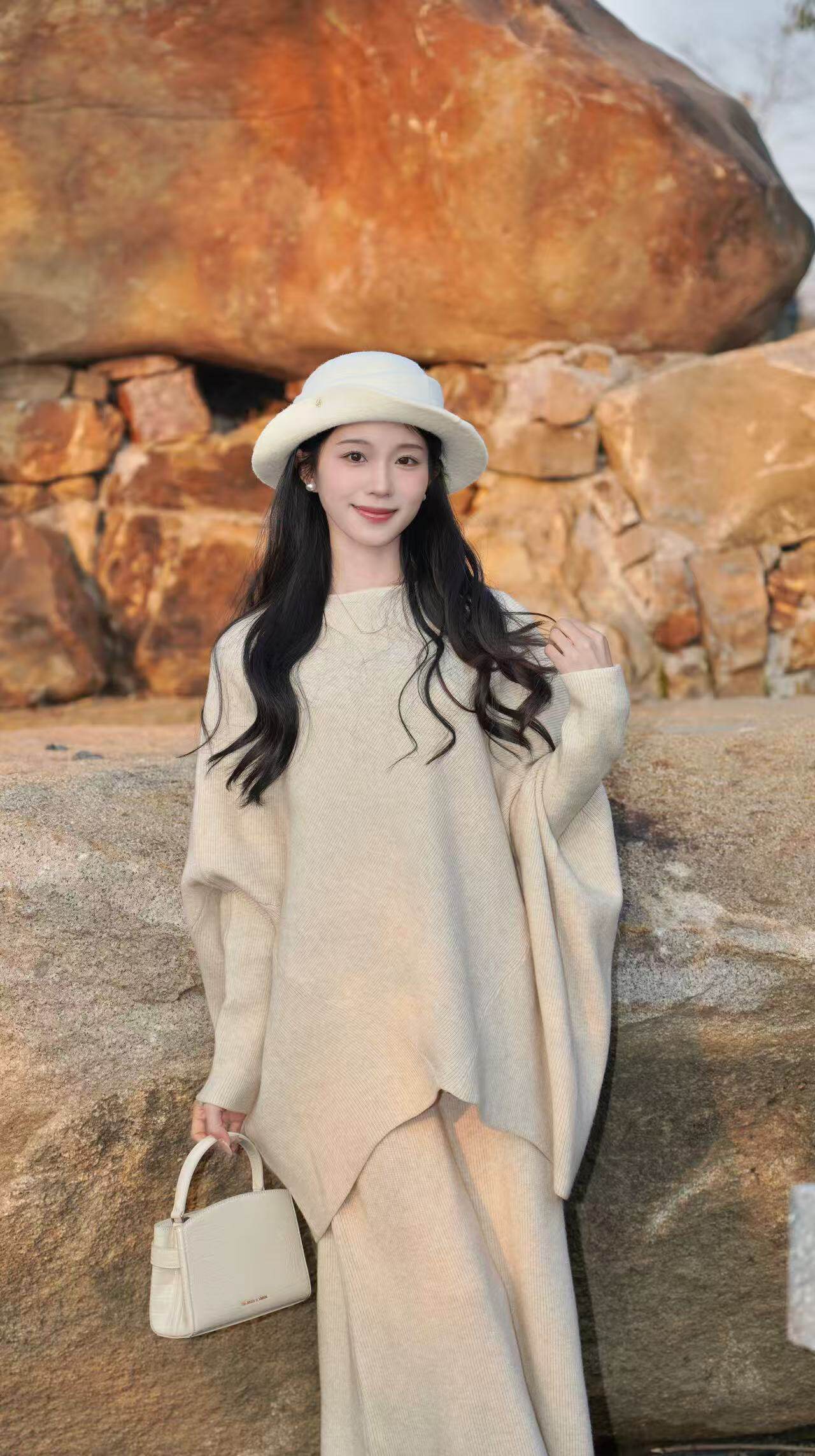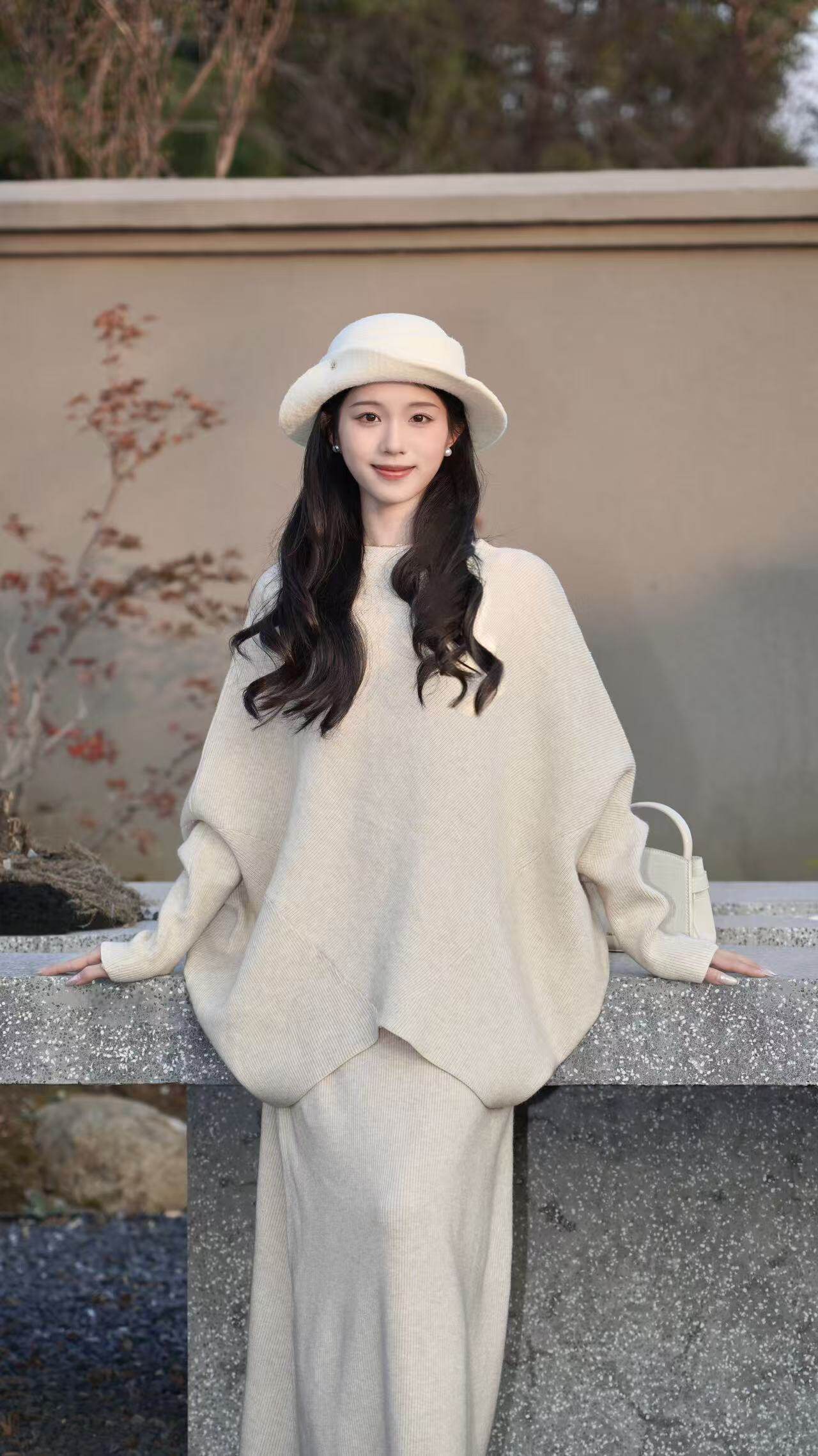 AWMUMU 慵懒风蝙蝠袖针织衫毛衣女 老钱感显瘦半身裙两件套知性套装 蝙蝠袖针织衫宽松遮肉不臃肿,老钱风配色高级耐看,半身裙剪裁利落显瘦显高挑。整套搭配无需费心,适配通勤办公、闺蜜下午茶、日常逛街等多种场景,兼具舒适度与知性格调,是打造简约高级感穿搭的宝藏套装。