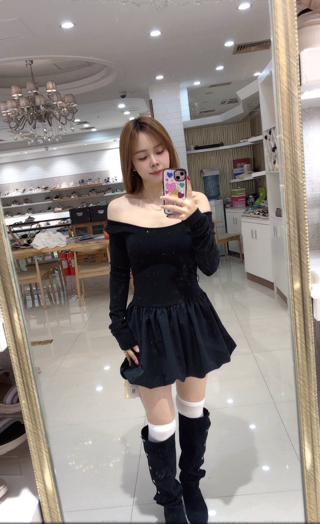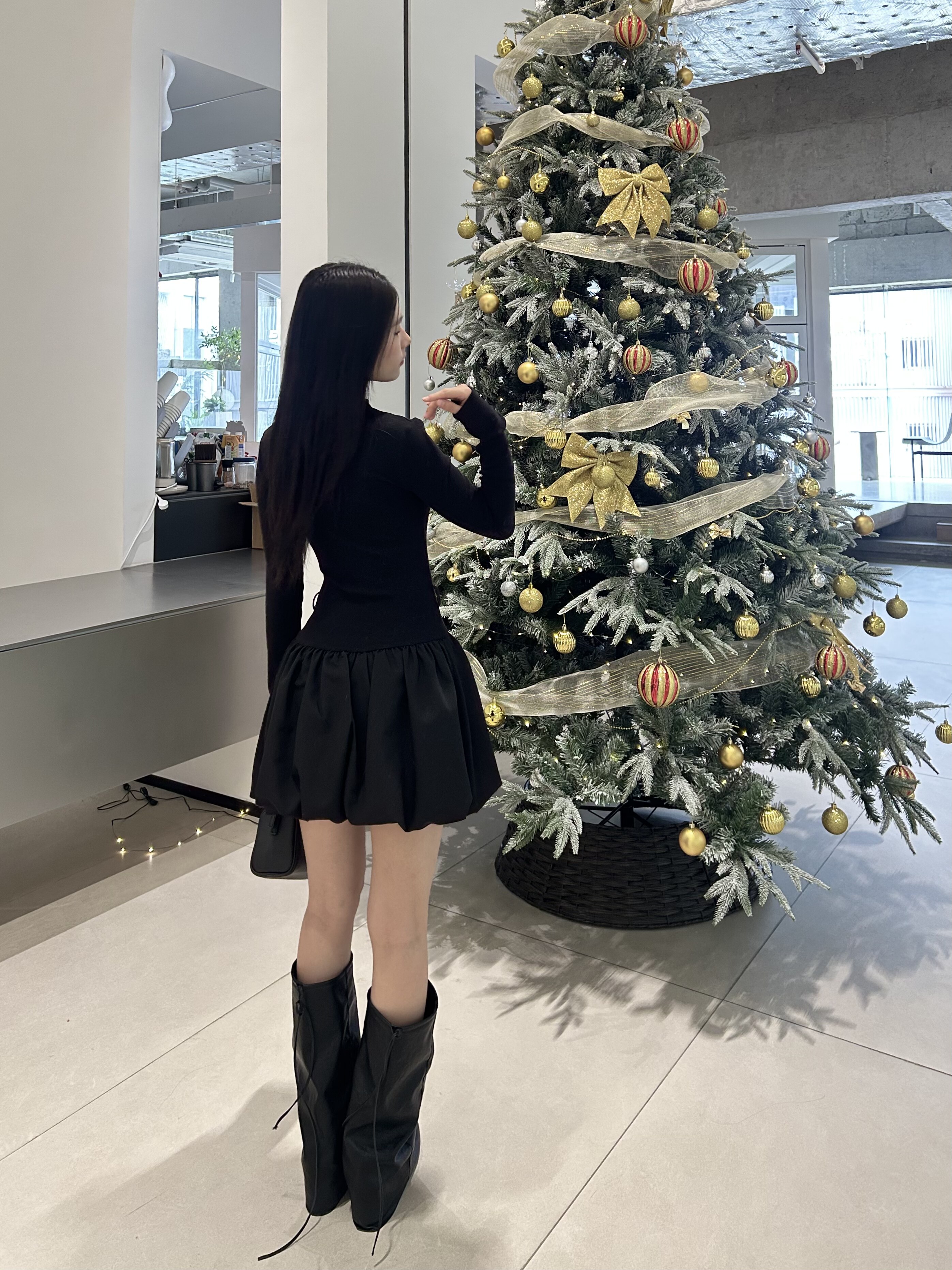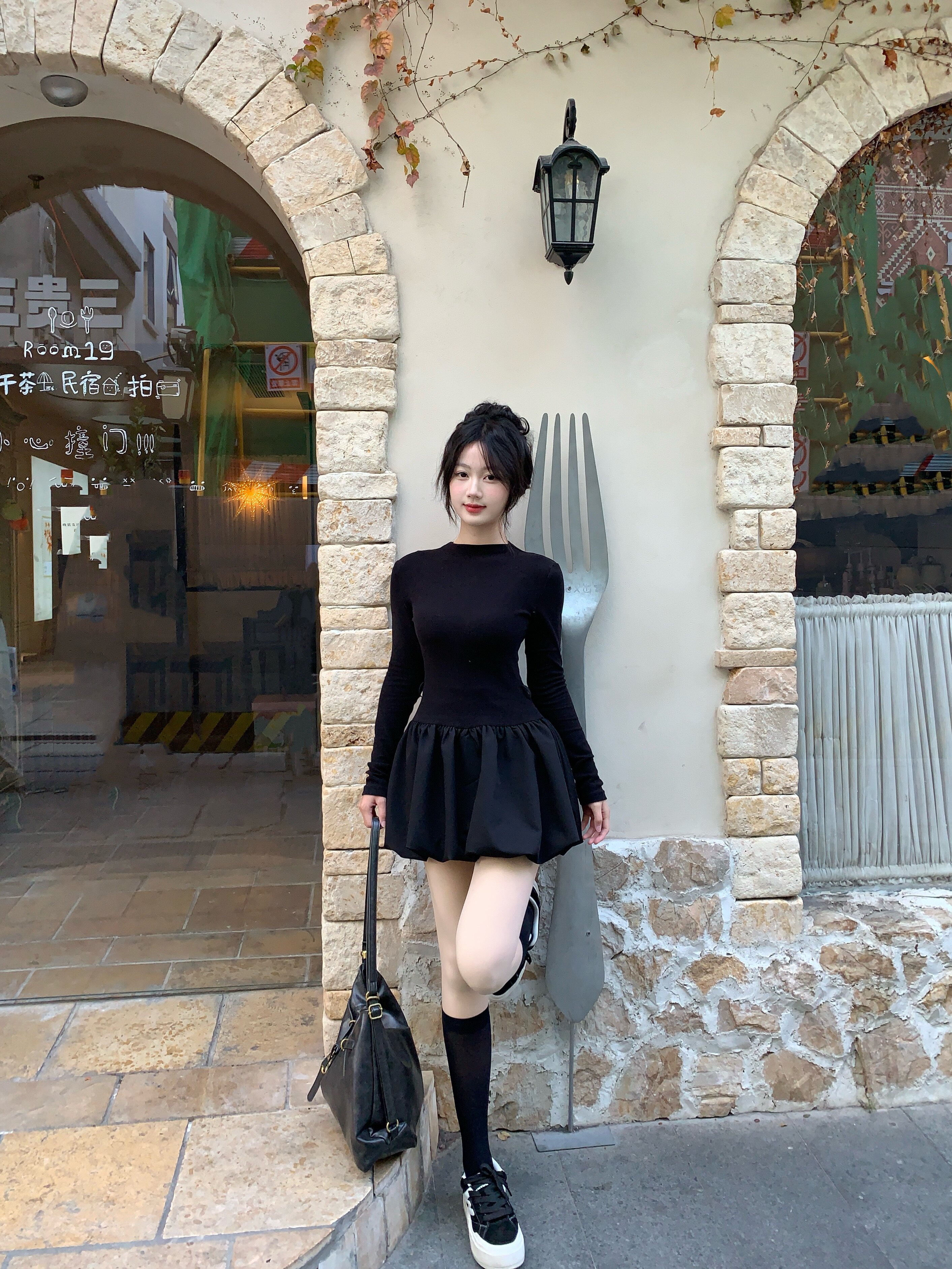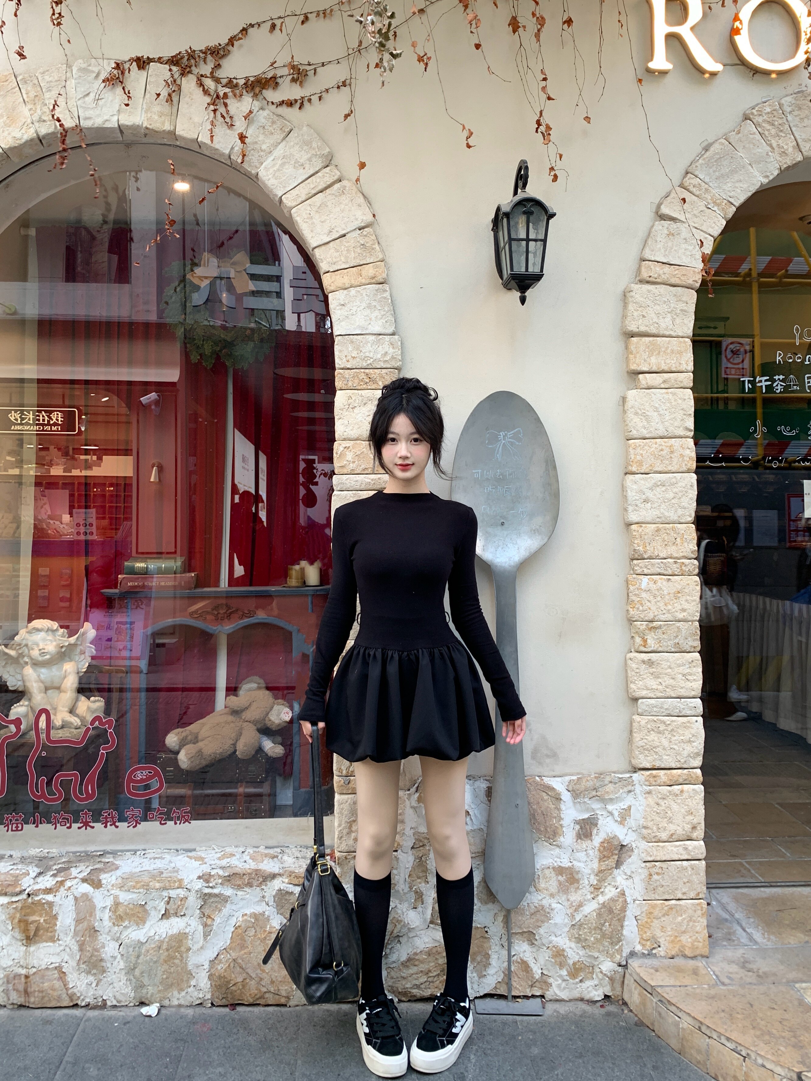 - 搭配长靴:将小黑裙搭配过膝长靴或及膝靴,在靴筒与裙摆之间露出一截小腿,又纯又欲,显高显瘦。这是秋冬最经典的穿法,适合约会或聚会。