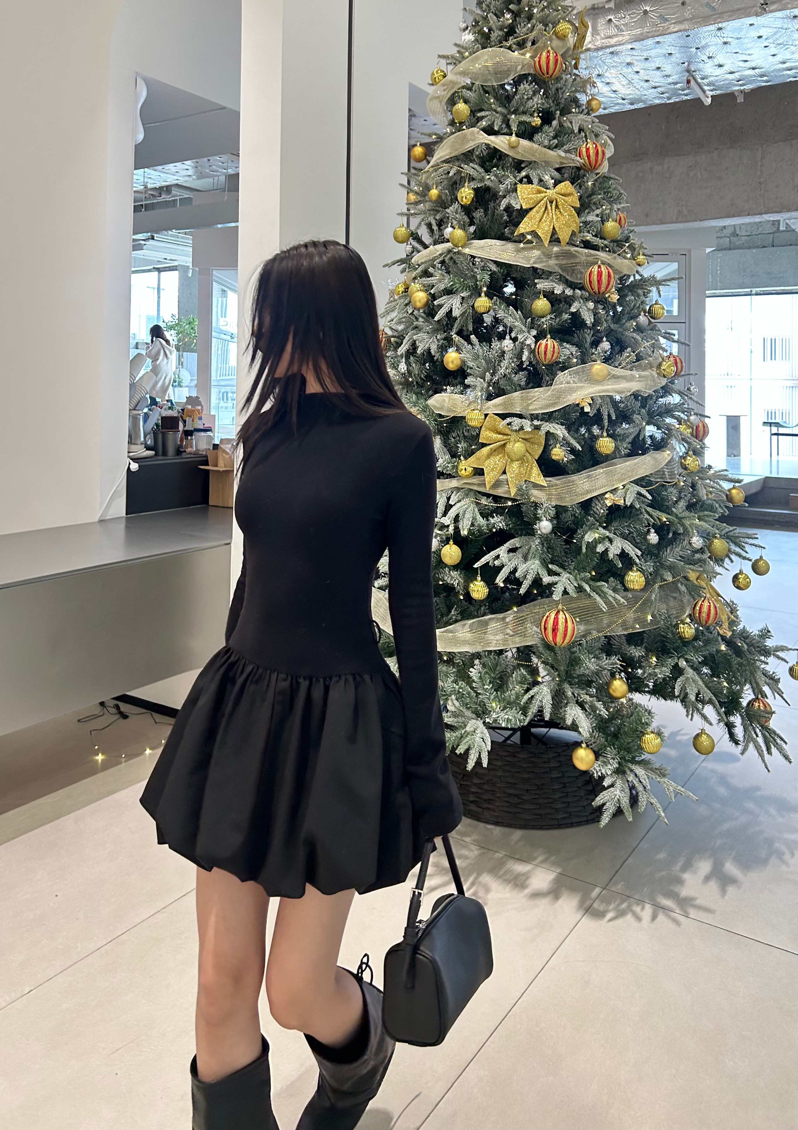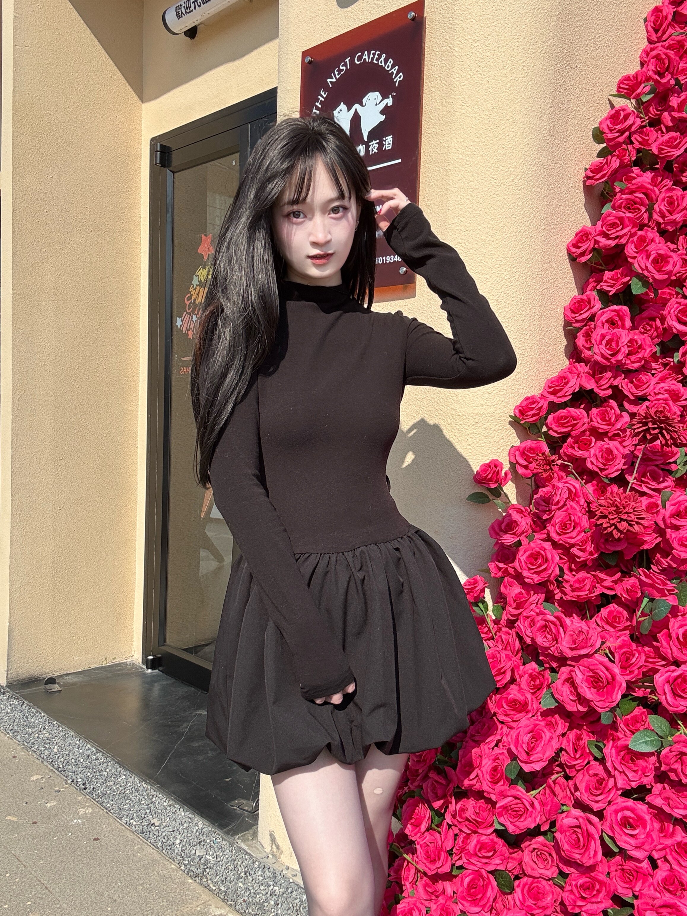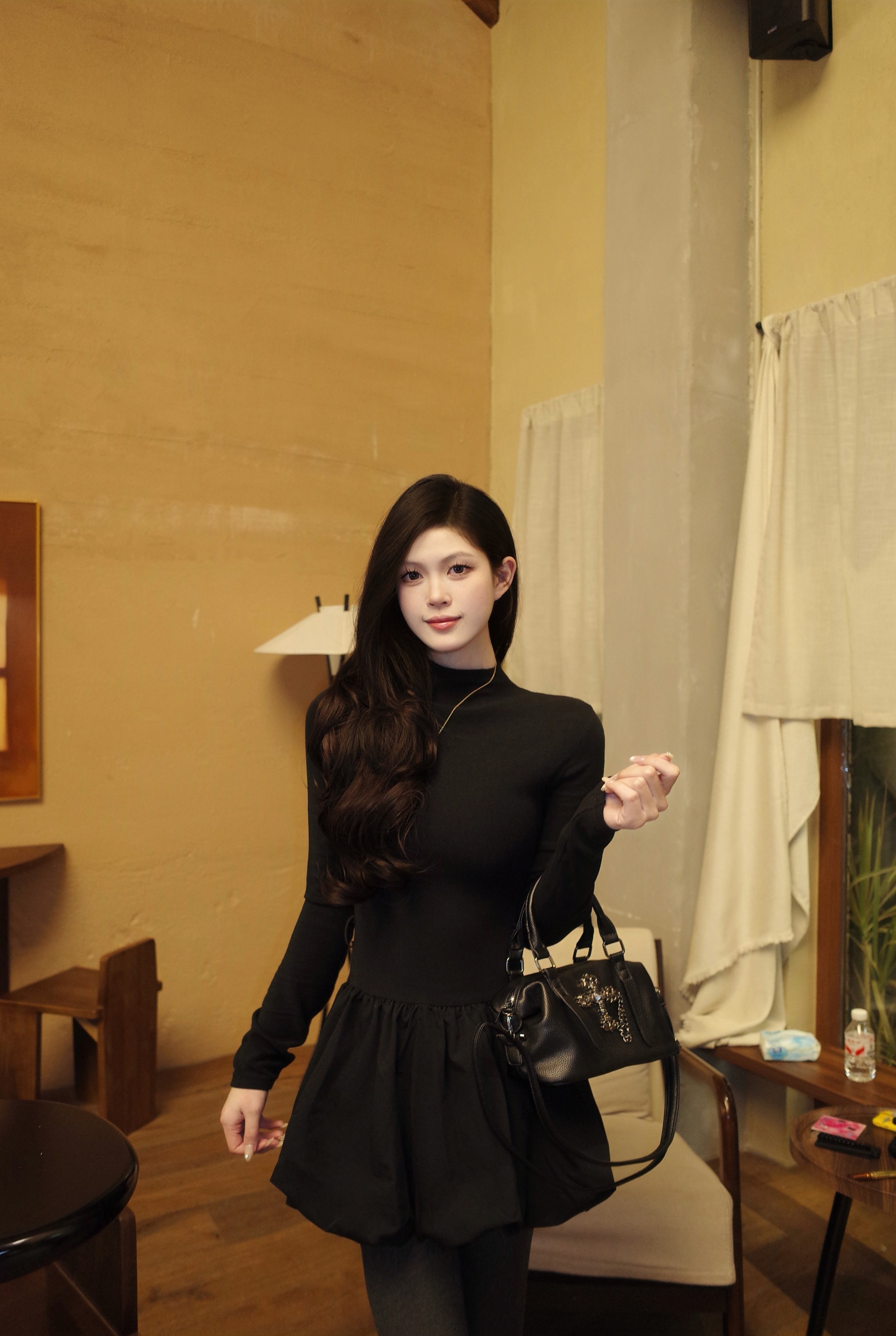 - 灵动俏皮的美感:花苞裙摆不仅遮肉,还非常灵动。当你走动时,裙摆会随着步伐轻轻摇曳、起伏,那种花苞初绽的动感,让整条裙子都充满了生命力。这种设计让小黑裙摆脱了沉闷,多了一份少女的俏皮。