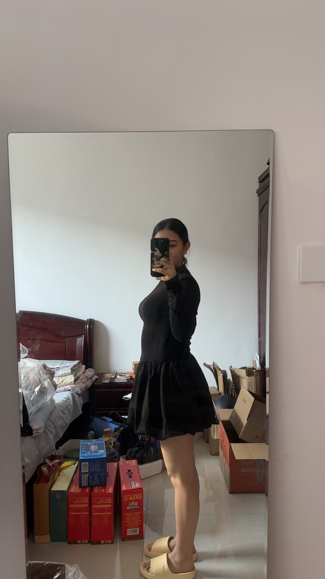 收到货啦 超有设计感的花苞打底裙 上身效果好显瘦 布料摸起来很柔软 值得入手💗