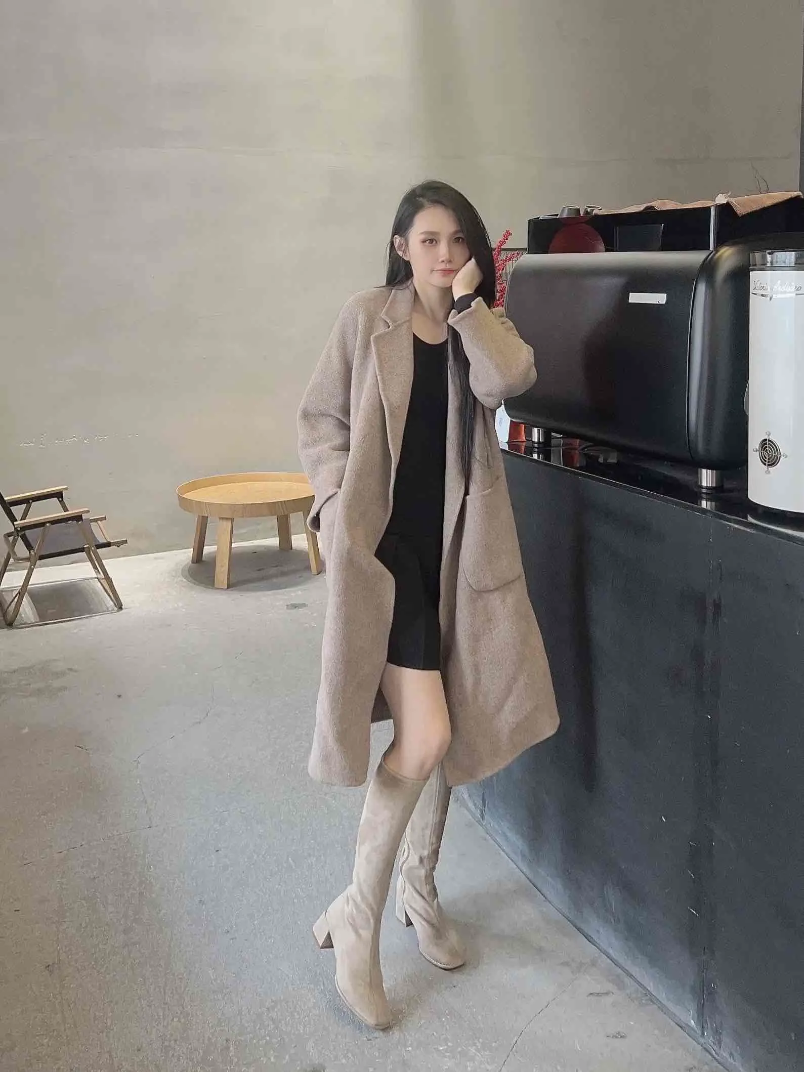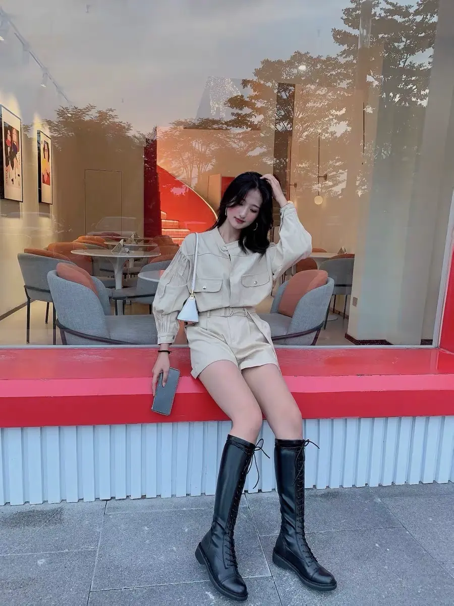 尊嘟尊嘟没想到到货这么快~快递发的顺丰隔天中午就到了 我买的搭配套装都还没到呢就迫不及待的穿出来了~没想到这么穿也很好看 有种气质慵懒风hahaha~~~还有就是这双是我男朋友挑的靴子 我很满意~~ 0天后追评:靴子版型很好 穿上比例真的很绝哦~后面可以扭动的扣子更加分hahah~~~好稀饭~~