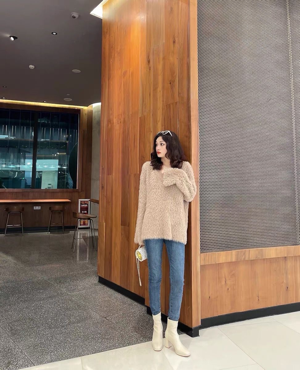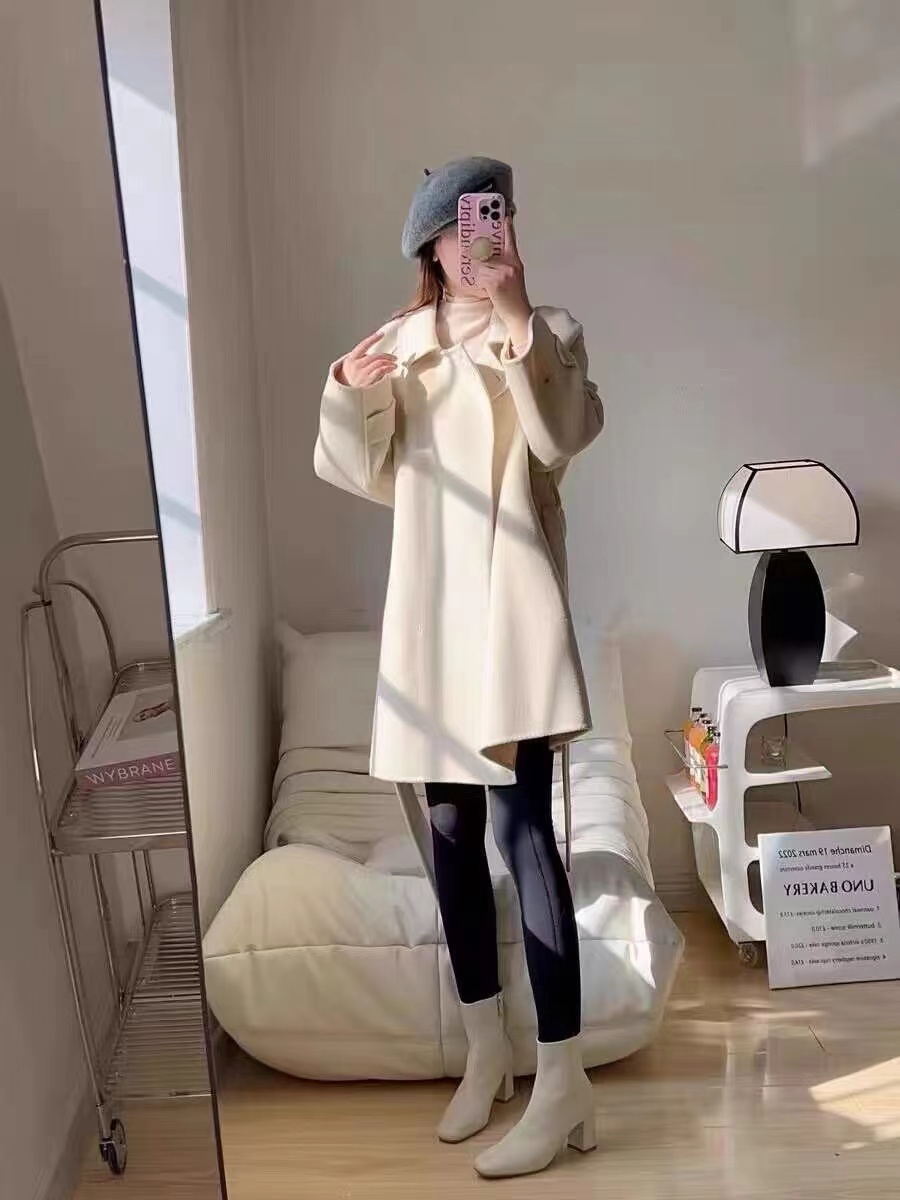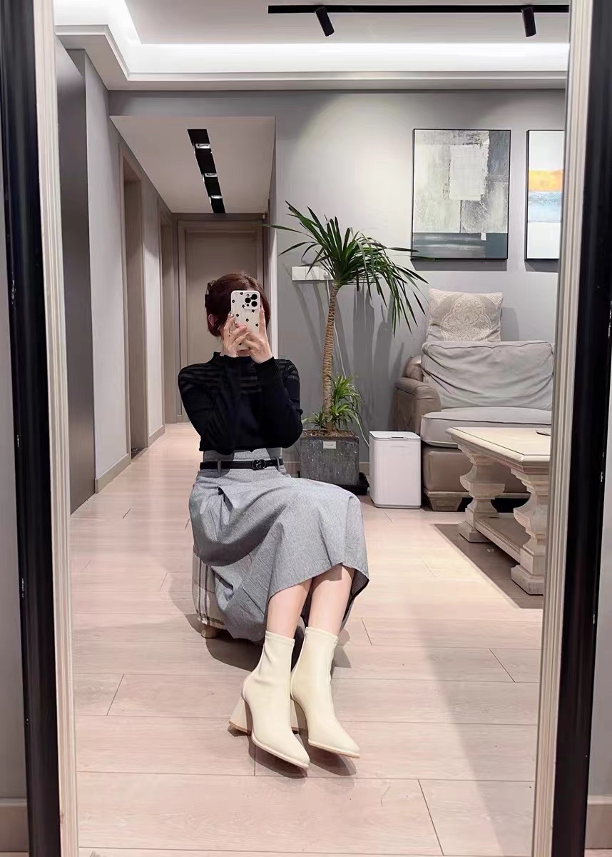 超好看的一双靴子了,换了几套衣服都很好看,爱了爱了,留下了,上脚很显腿直,而且超显瘦的,米白色颜色很高级,本来只想着搭配裙子的,结果发现配裤子也是超美的,全羊皮的,性价比太高啦