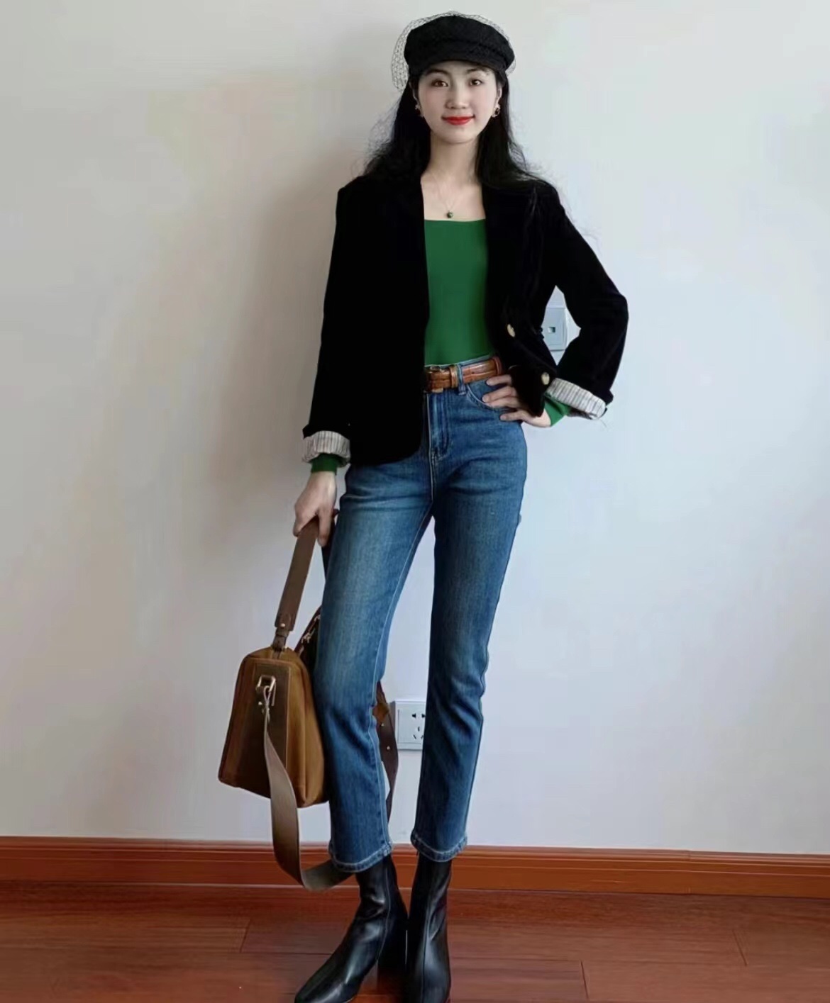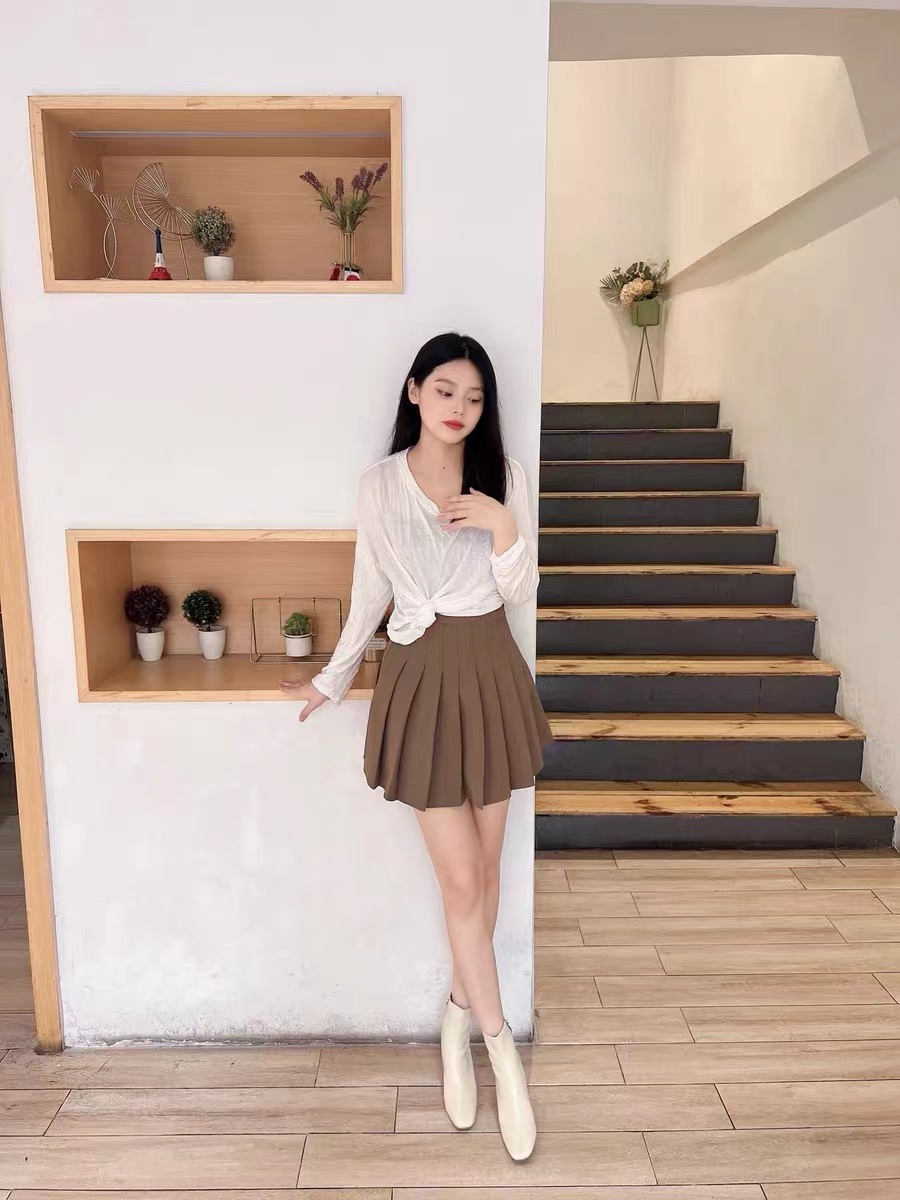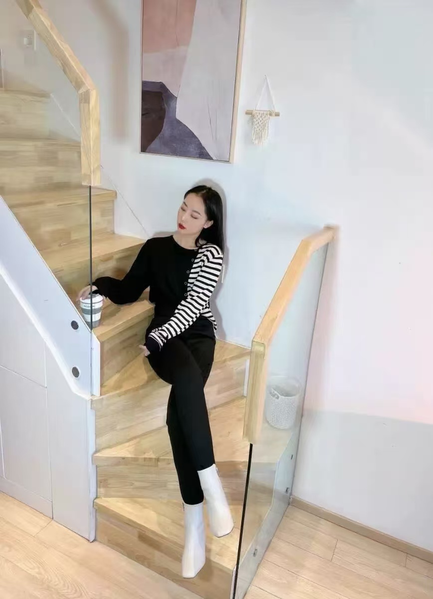 超好看的一双靴子了,换了几套衣服都很好看,爱了爱了,留下了,上脚很显腿直,而且超显瘦的,米白色颜色很高级,本来只想着搭配裙子的,结果发现配裤子也是超美的,全羊皮的,性价比太高啦