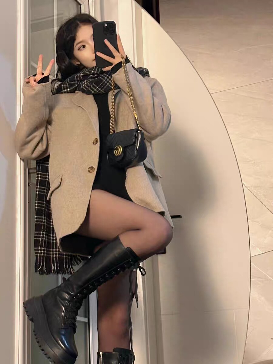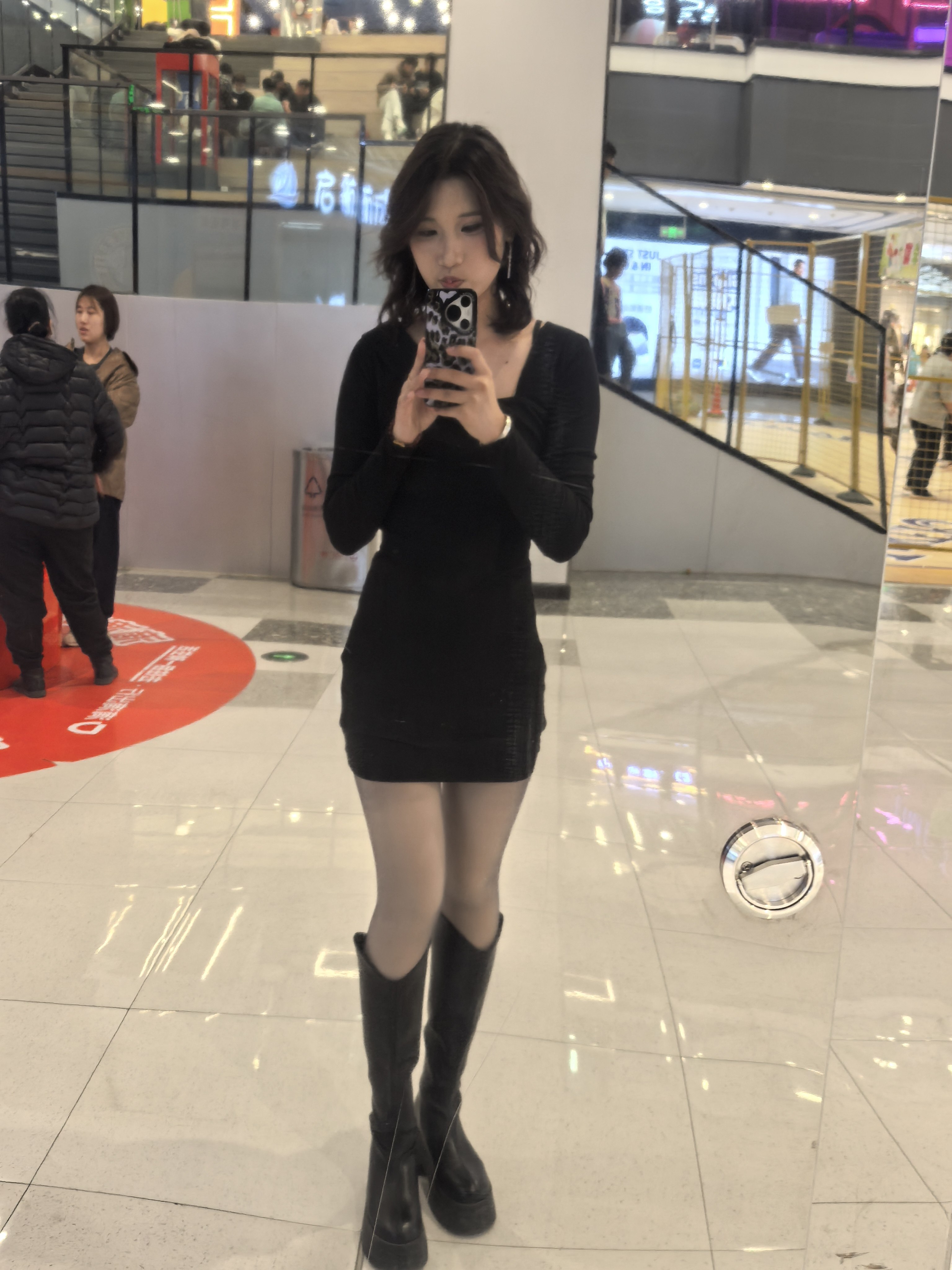 真的第一次穿到这么合适的光腿神器!!所有角度都不会有褶皱 而且黑丝颜色也非常高级 磨皮效果一绝!特别修饰腿型 内里的绒是非常暖的 并且不会显腿粗 有一定的压缩力但不会勒!特别舒服的