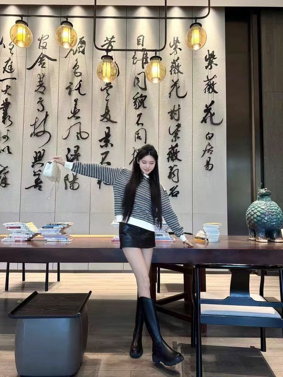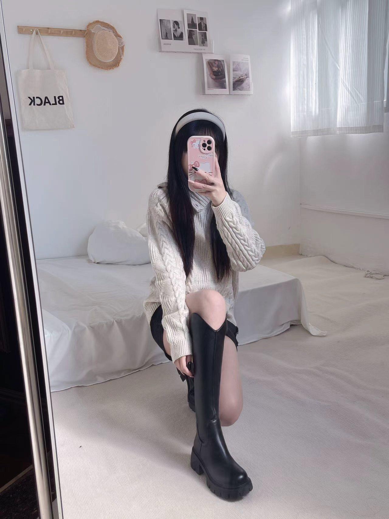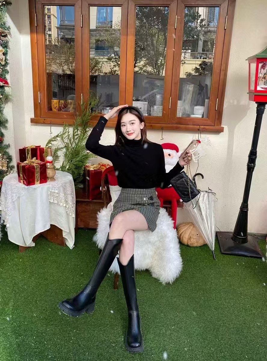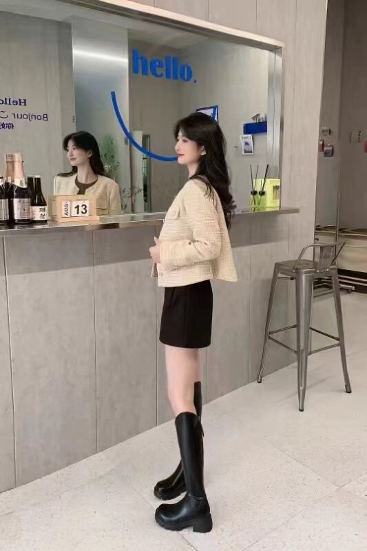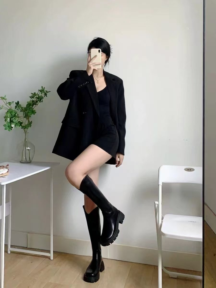 44天后追评:之前买长靴总怕‘堆成褶皱’,但这双靴的版型硬挺又服帖,一点堆积都没有,挺括得像量身裁的。