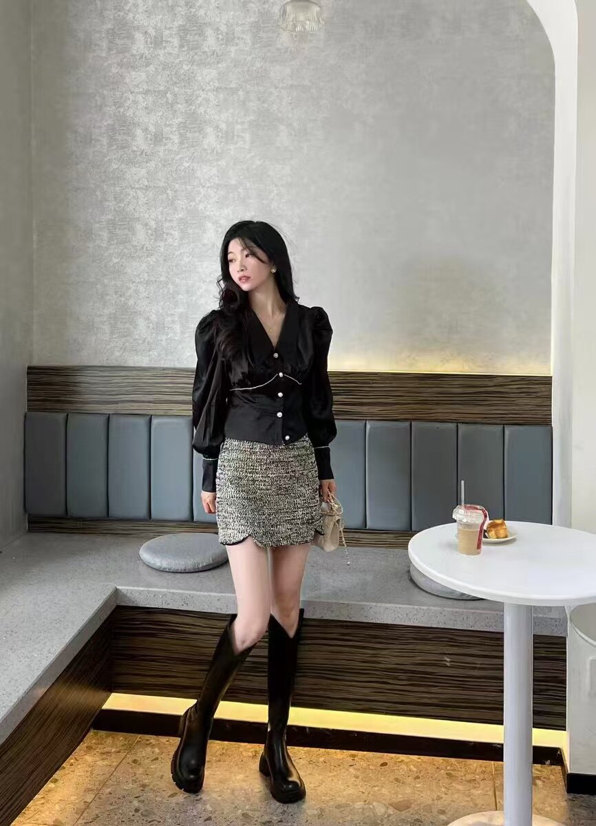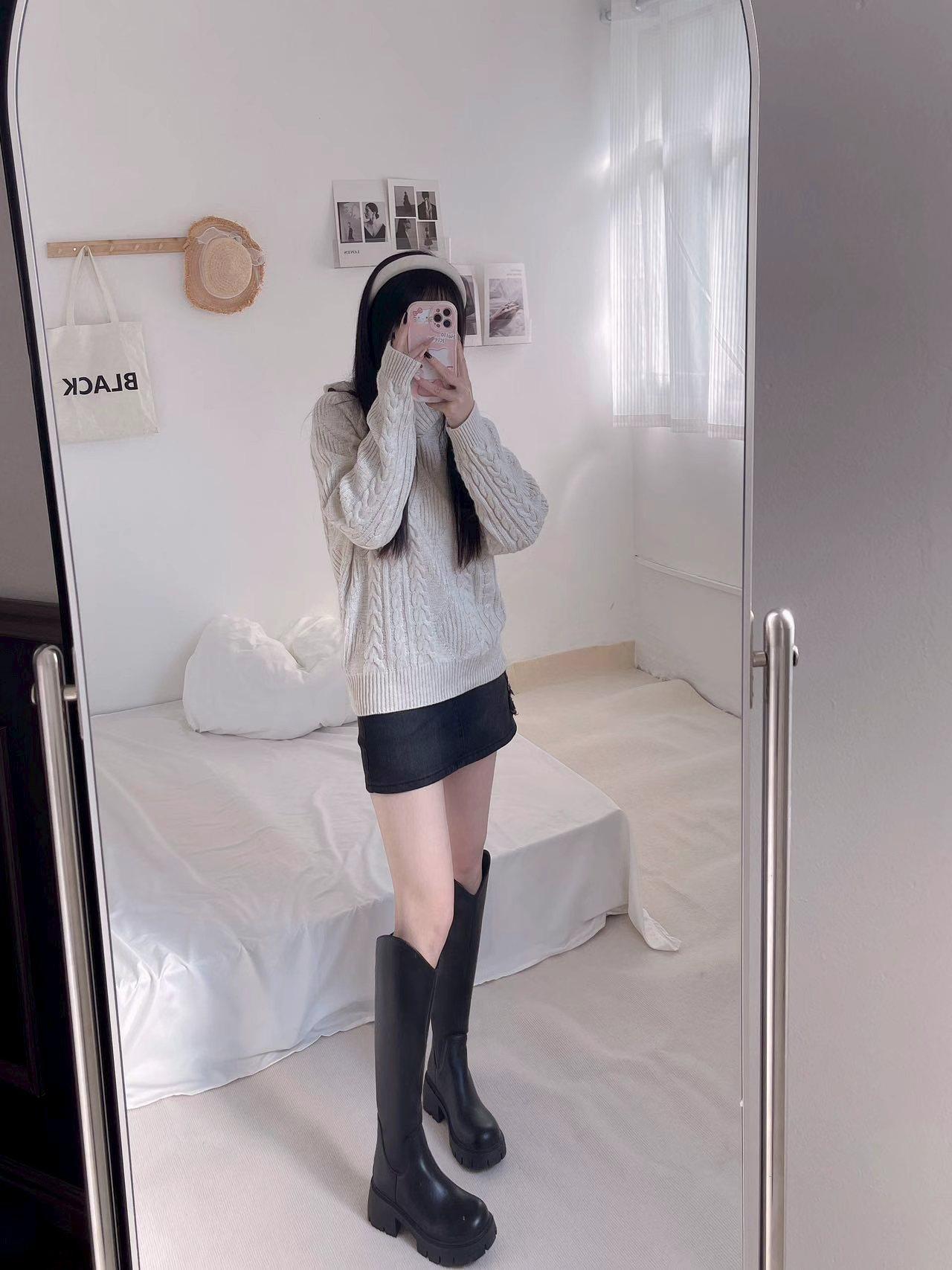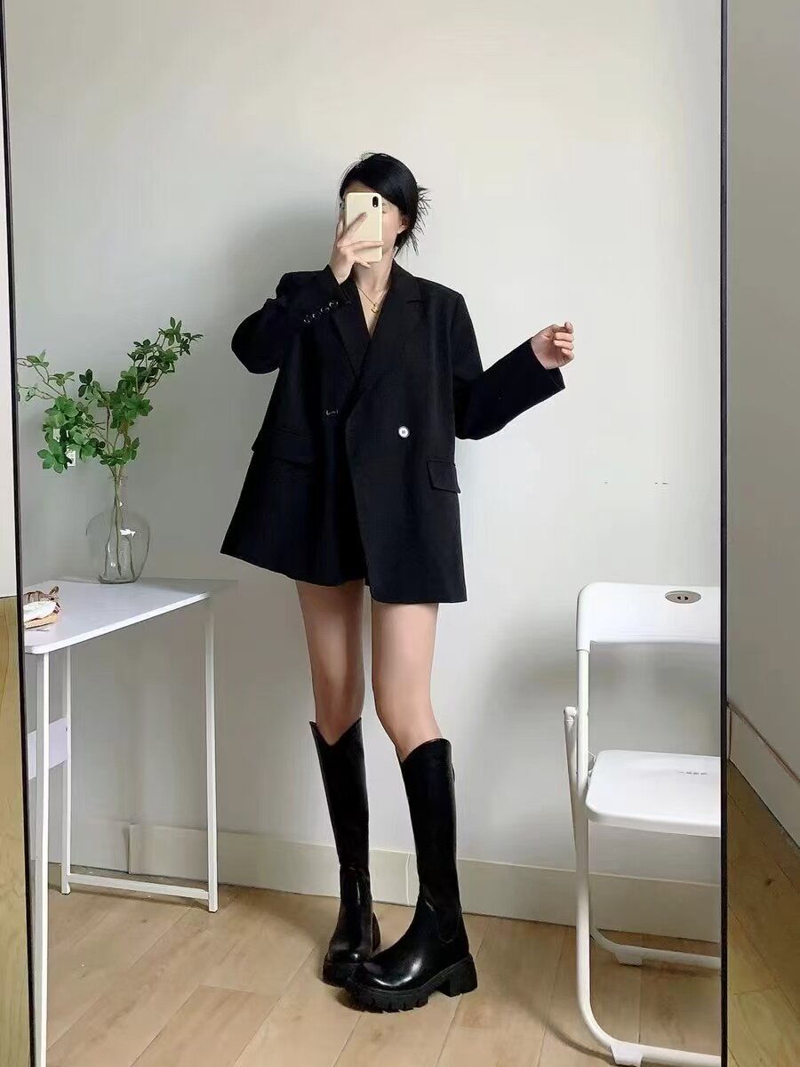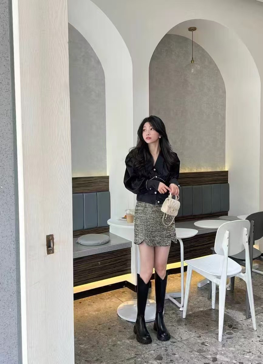 44天后追评:之前买长靴总怕‘堆成褶皱’,但这双靴的版型硬挺又服帖,一点堆积都没有,挺括得像量身裁的。