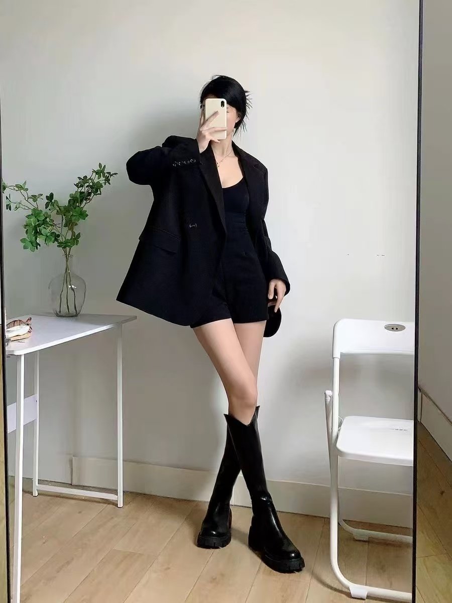 真的很喜欢很好穿🥰🥰🥰现在已经在穿了,穿了好几天不会觉得很笨 重,而且整体质量还是很好🤩🤩🤩,没有磨损,也没什么折痕🥳🥳🥳这款还是V字口,所以可以更好的修饰腿型,超级显腿长。黑色穿上直接就是酷girl,非常适合我!