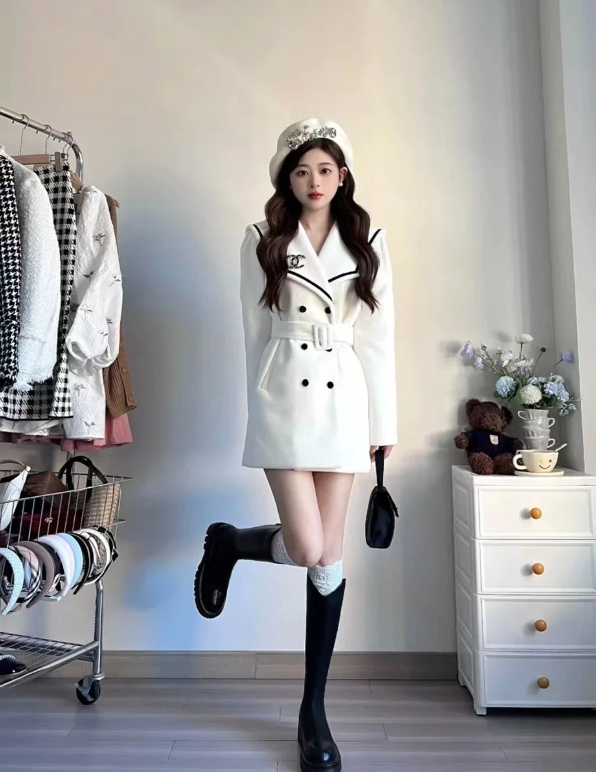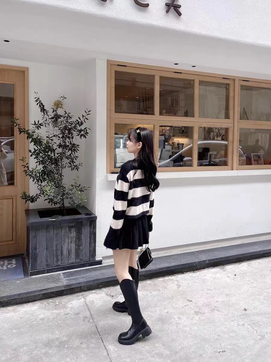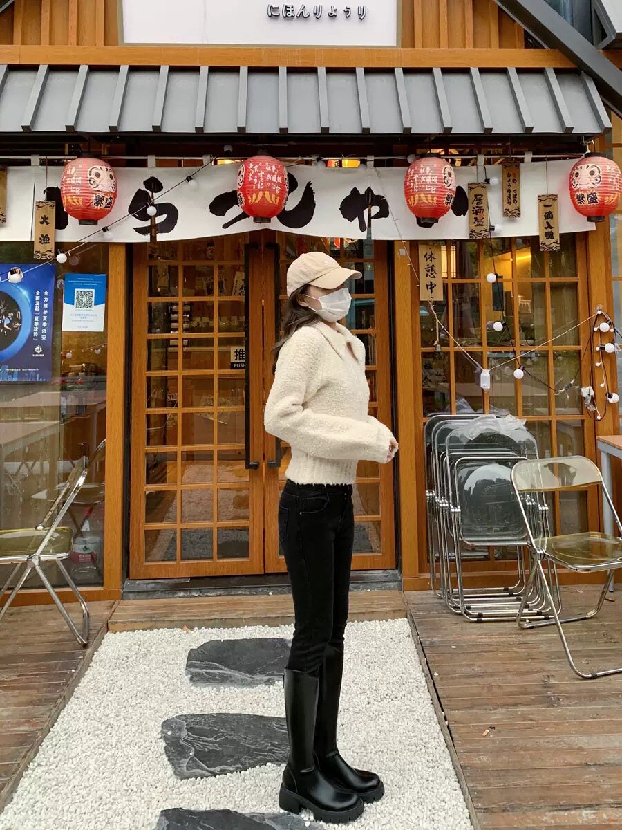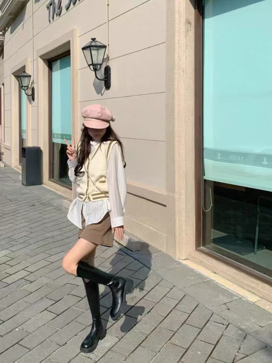 我愿把这双靴子称为百搭神器,很适合小个子女生,穿大衣配短裙,超级好看!