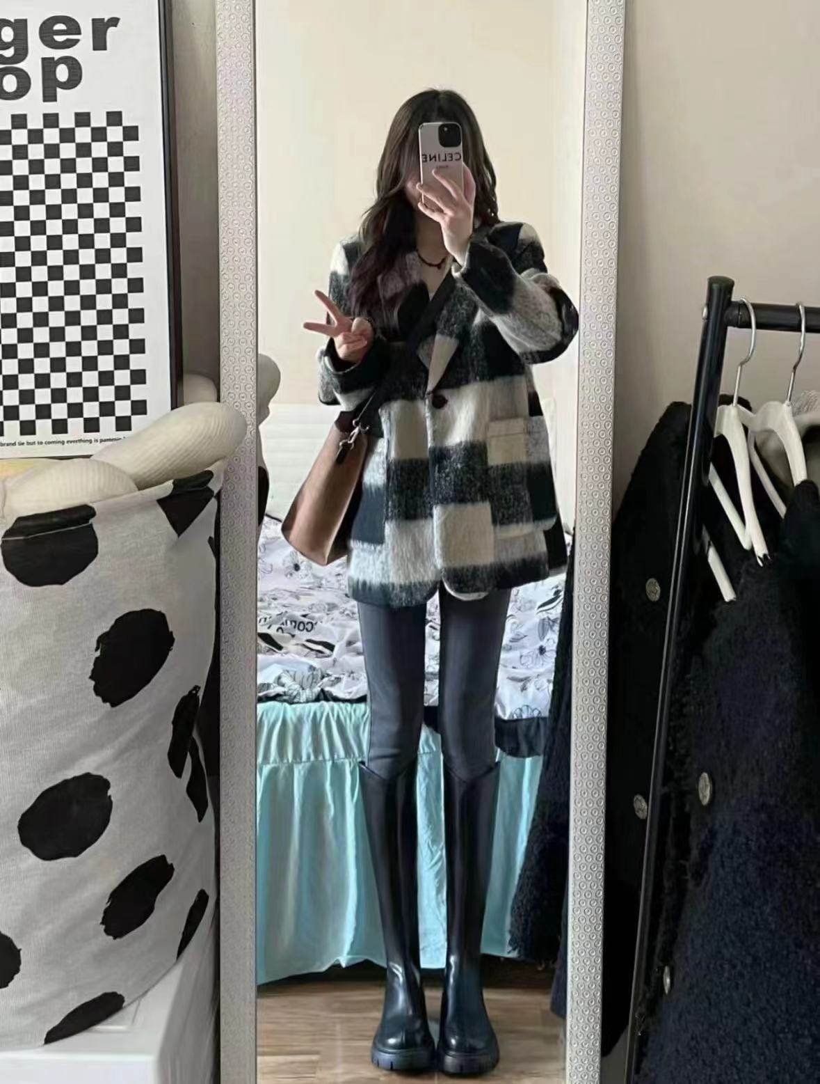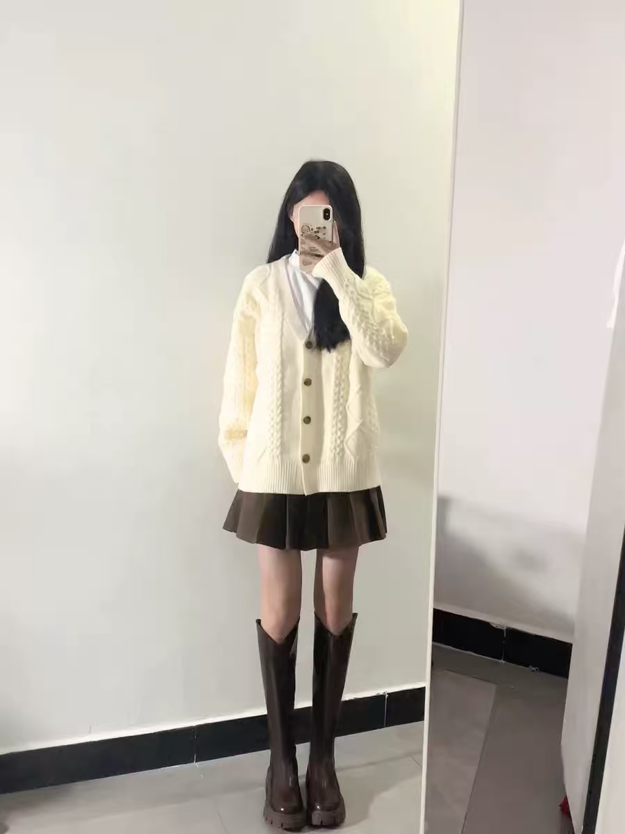 机缘巧合入的一双靴子~没想到我162的个子34左右的腿围很合适,平时穿36码的,码数也刚刚好,V型口又显腿直一些,最重要的是这个版型是立挺的,不是那种塌塌的,没有堆积感穿上自然就更显腿瘦,姐妹帮我拍的,她也说很好看……hhhhh我推荐给她了(* ̄︶ ̄)