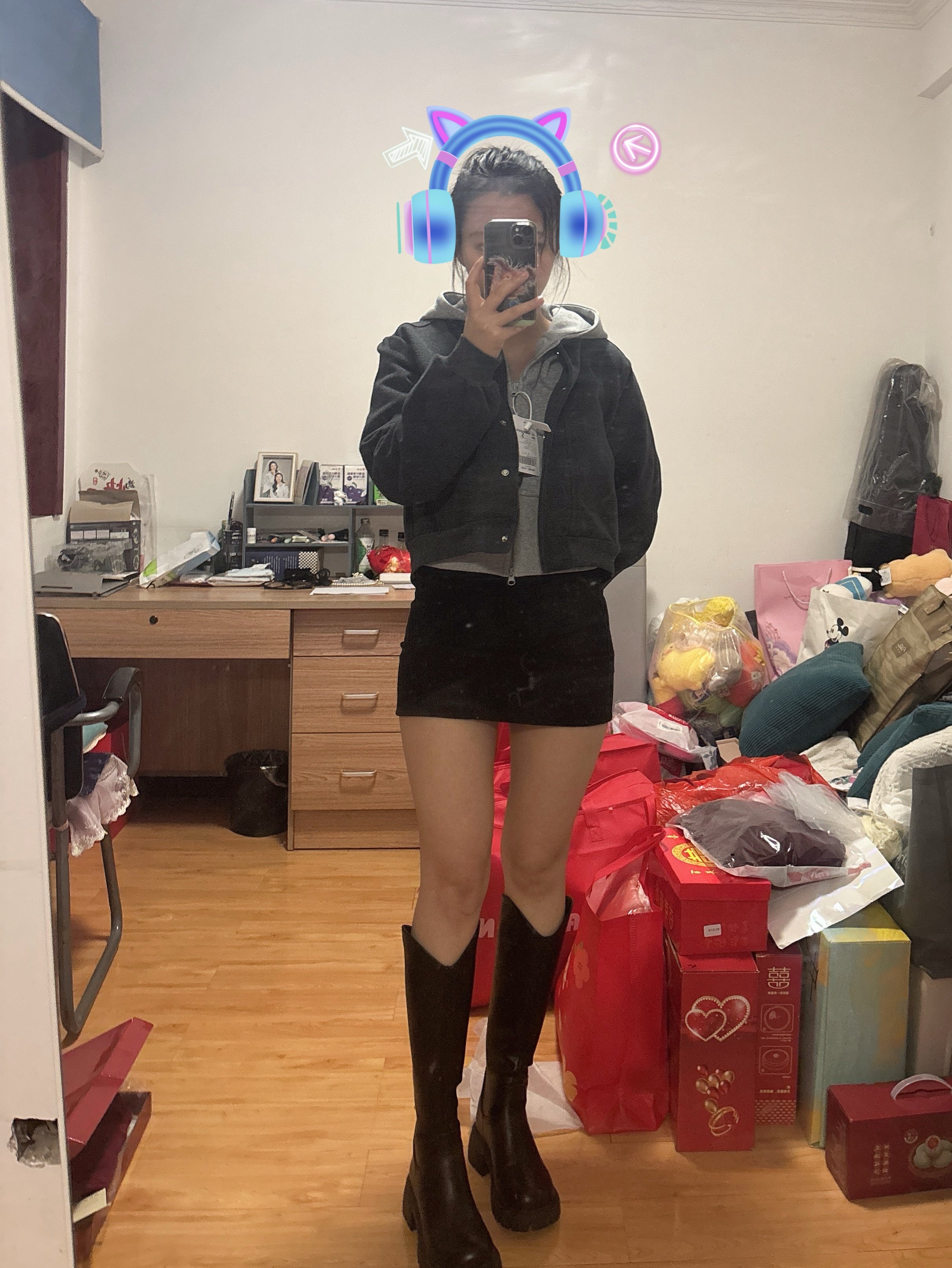 这双长靴真的是穿搭 “万金油”,这两天跟闺蜜去采购秋季衣服 逛服装店的时候,在试衣间里折腾了好久,试了超多衣服,感觉每套衣服 这个靴都能搭搭,出来的感觉也对 嘿还真行hhh