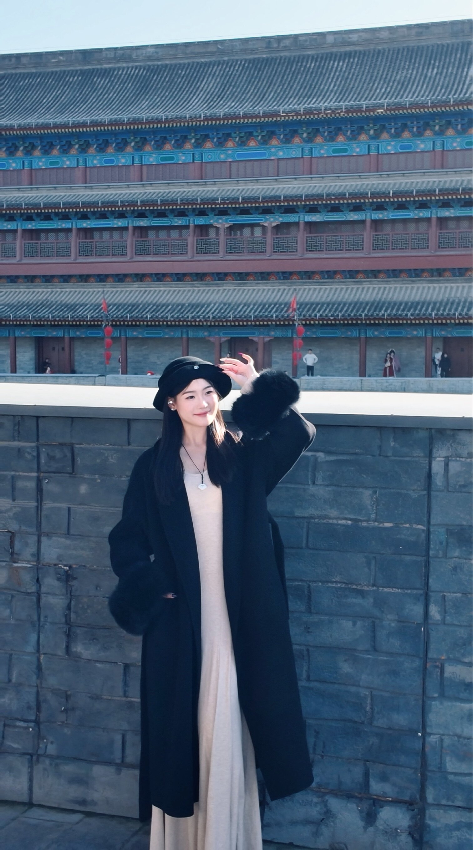 - 纵向延伸显高:长款大衣从肩部一直延伸到小腿附近,在身体两侧形成两条纵向的线条。这种垂直线条能够在视觉上拉长整个人的身高比例,让身材看起来更加修长。搭配高跟鞋,效果更佳。