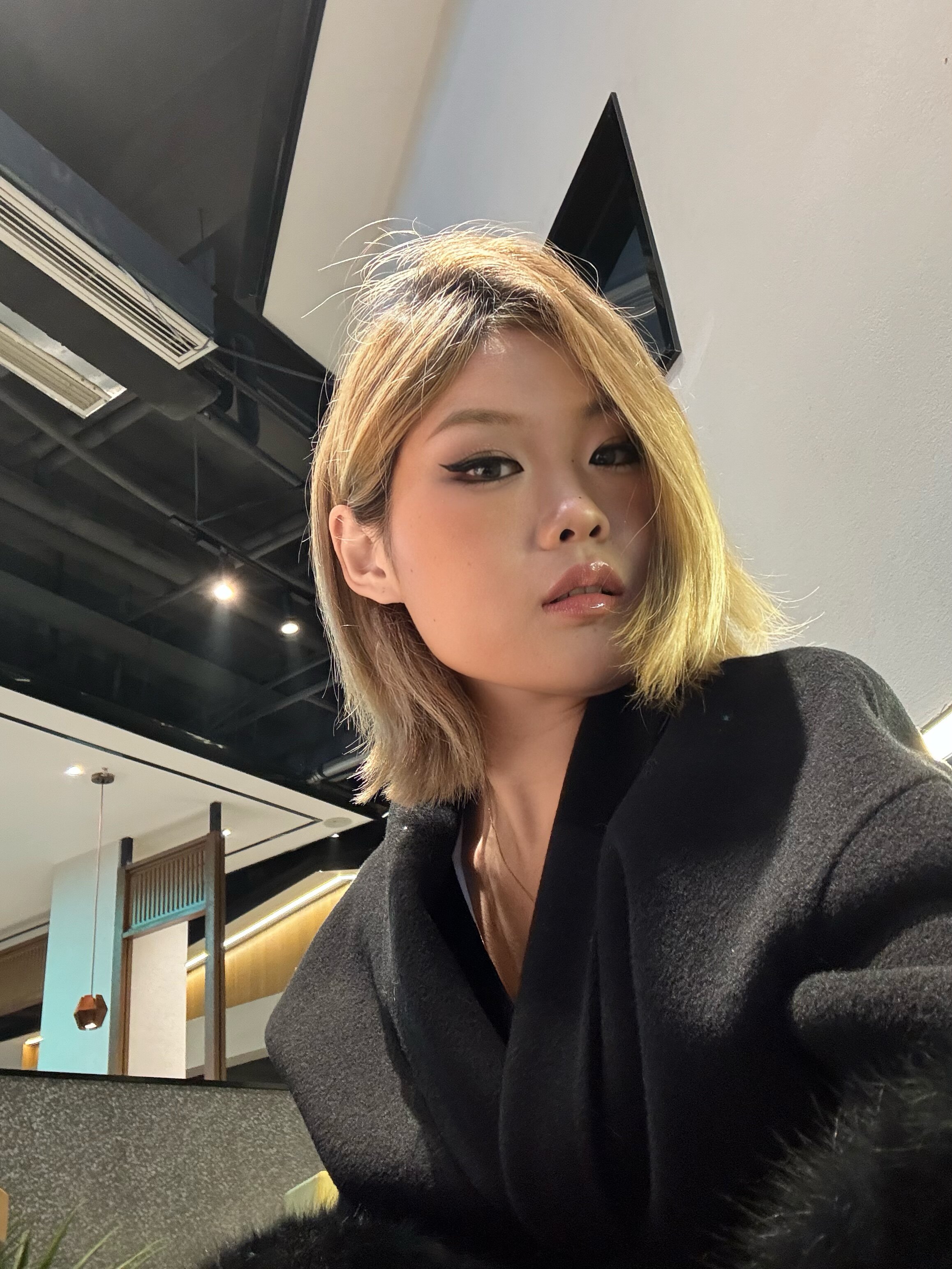 - 同色系高级感:全身选择黑色、灰色等深色系单品,打造顺色穿搭。黑色大衣作为延伸,让整个人笼罩在高级的氛围里,气场全开。