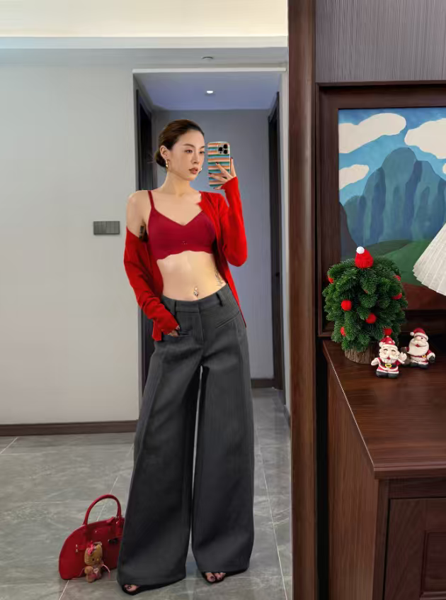 这种喜庆显白的红色,经过精心调配,既保留了红色的热烈,又不会过于刺眼。它是高贵的丝绒红,不是那种传统的鲜红,很复古,喜欢🥰。这种色调对肤色的包容度极高——能够提亮黄皮的亮度,让白皮更显通透,真正做到显白不挑人。在新年的灯光下,这一抹红色足以让你成为全家福中最亮眼的存在。