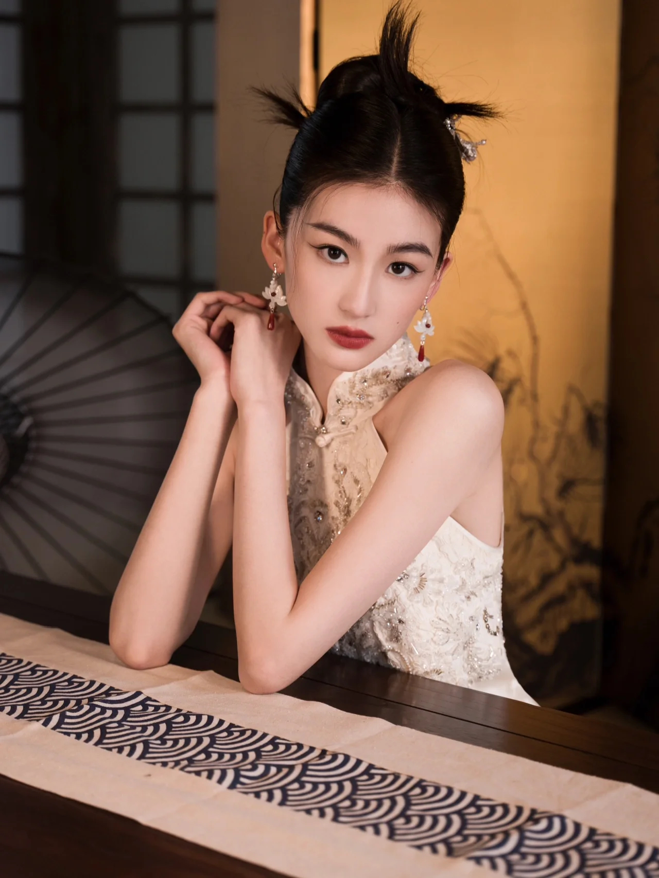 在上个世纪30年代前后,几乎是全民旗袍的既视感,而这款旗袍与复古的时代感不同,大量融入了现代的新颖元素,大胆的修身剪裁,虽然减弱了原本的古色韵味,但却越来越具有时尚感,更加符合我们现代人对服饰的需求,同时也比现代裙多了些氛围感。