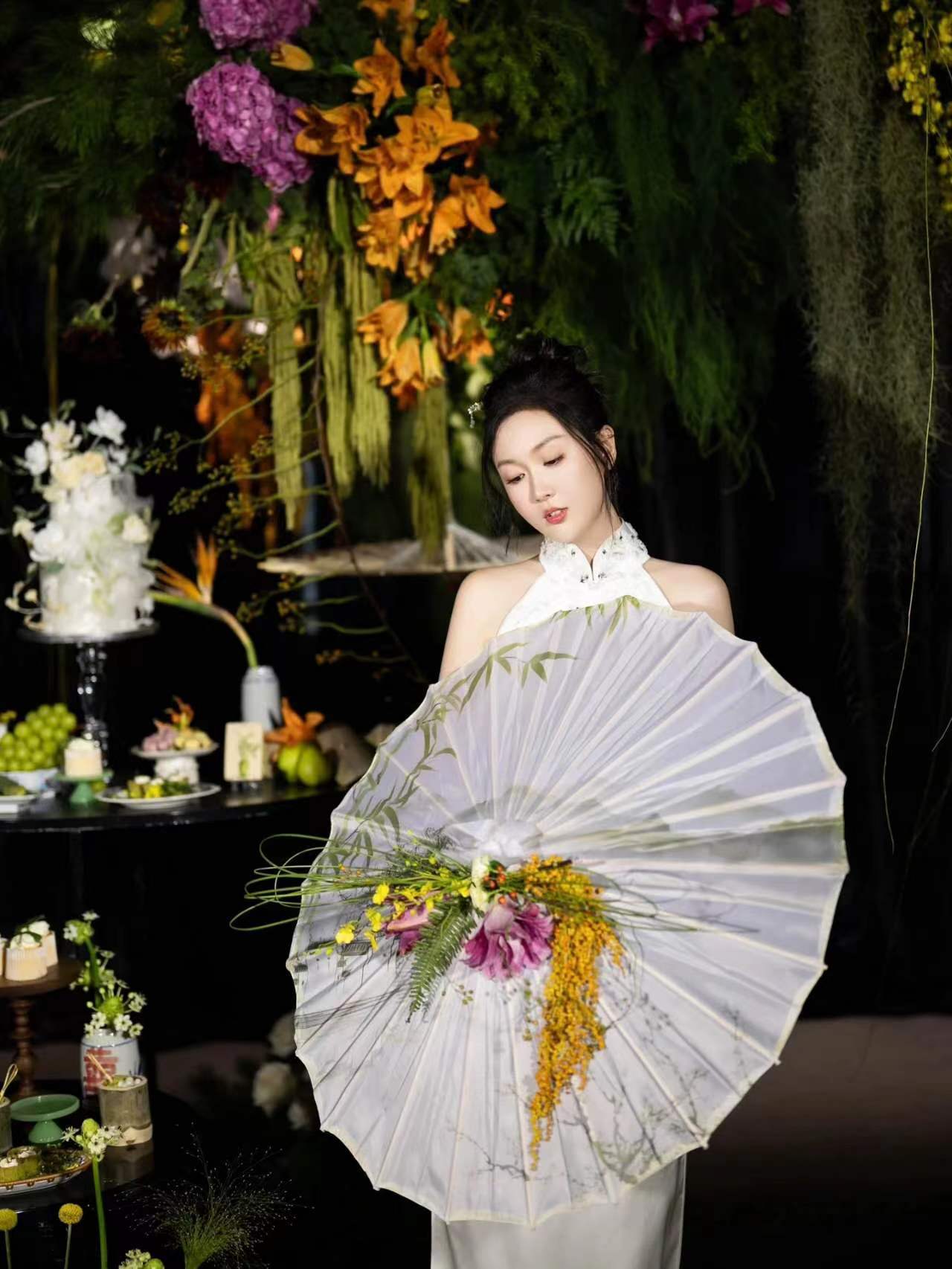 新中式永远给人一种静谧婉约的感觉,这可能是专属于我们的力量吧,而且无论是在木屋前还是树林里,新中式的风格真的都好出片,谁能不爱啊啊啊啊啊。