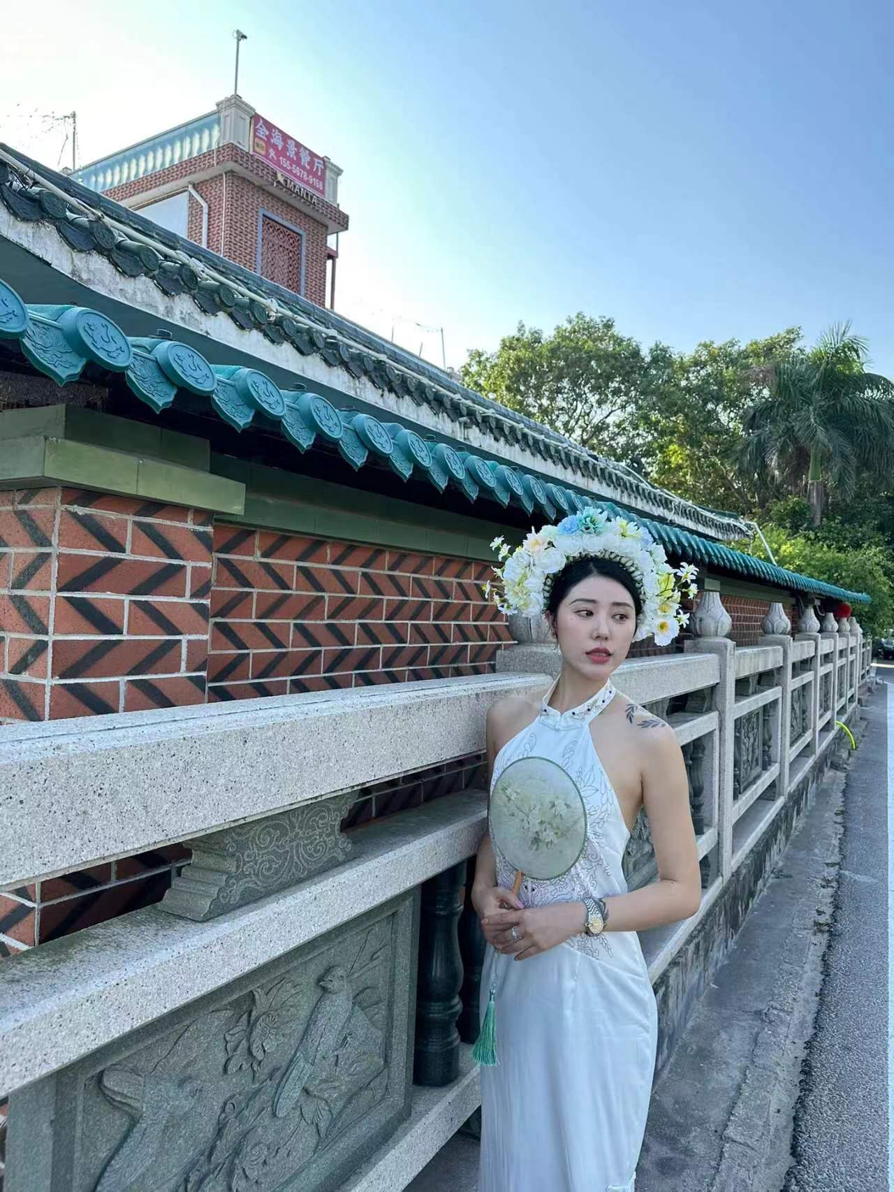 夸爆这件旗袍裙。白茶清欢无别事,我在等风也等你,第一次尝试新中式国风拍照,真的太爱了,整体感觉酷酷的,赞赞赞。