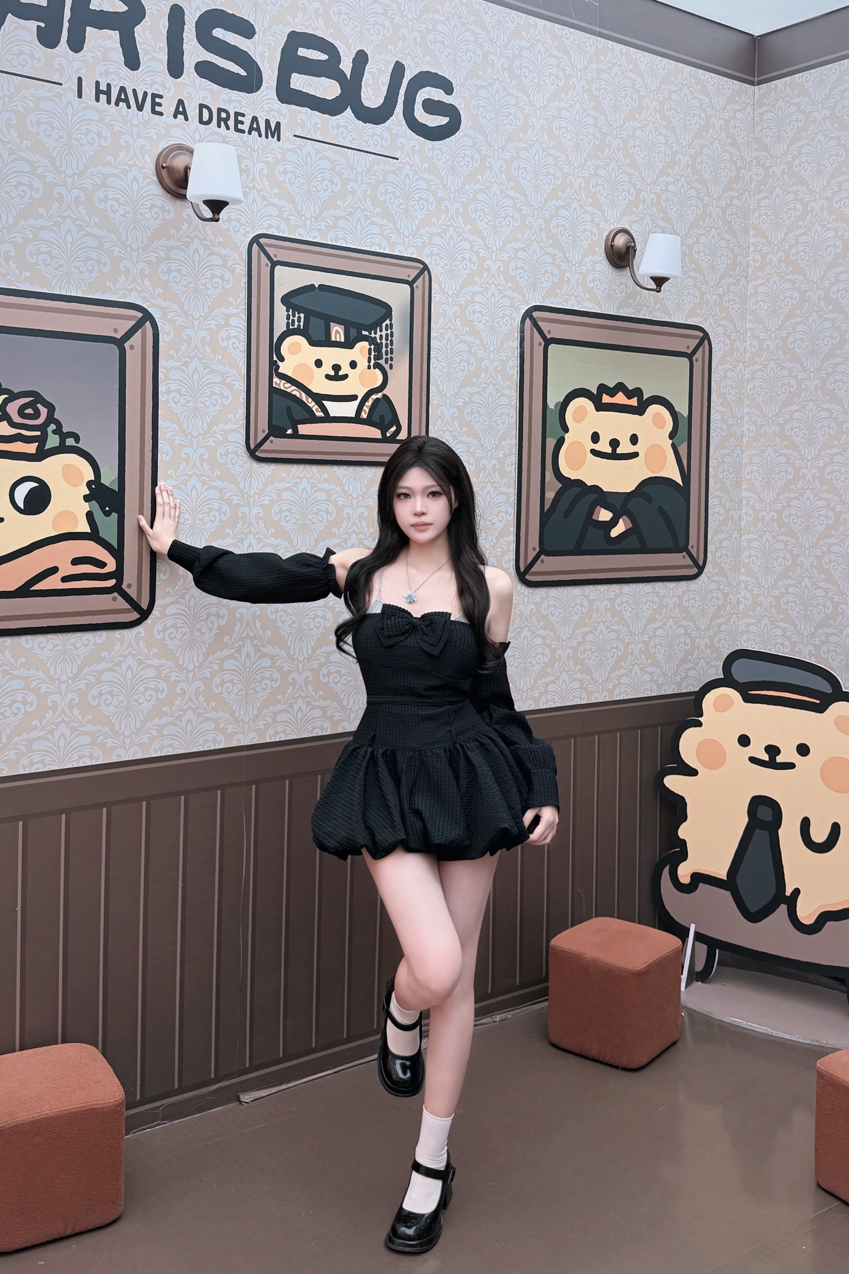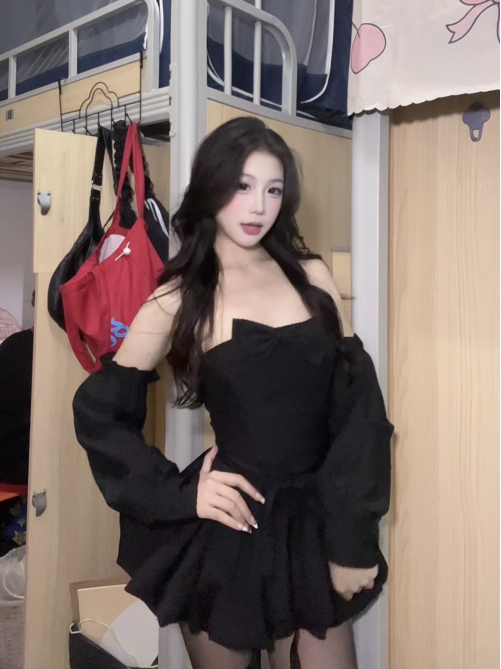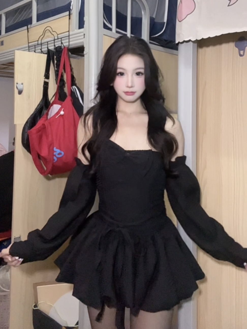 https://item.taobao.com/item.htm?id=791009462019超显瘦!黑色蓬蓬裙设计感拉满,露肤度刚好,虽然是抹胸但是不会一直往下掉~穿上就是辣妹本人,质量也在线,爱了~