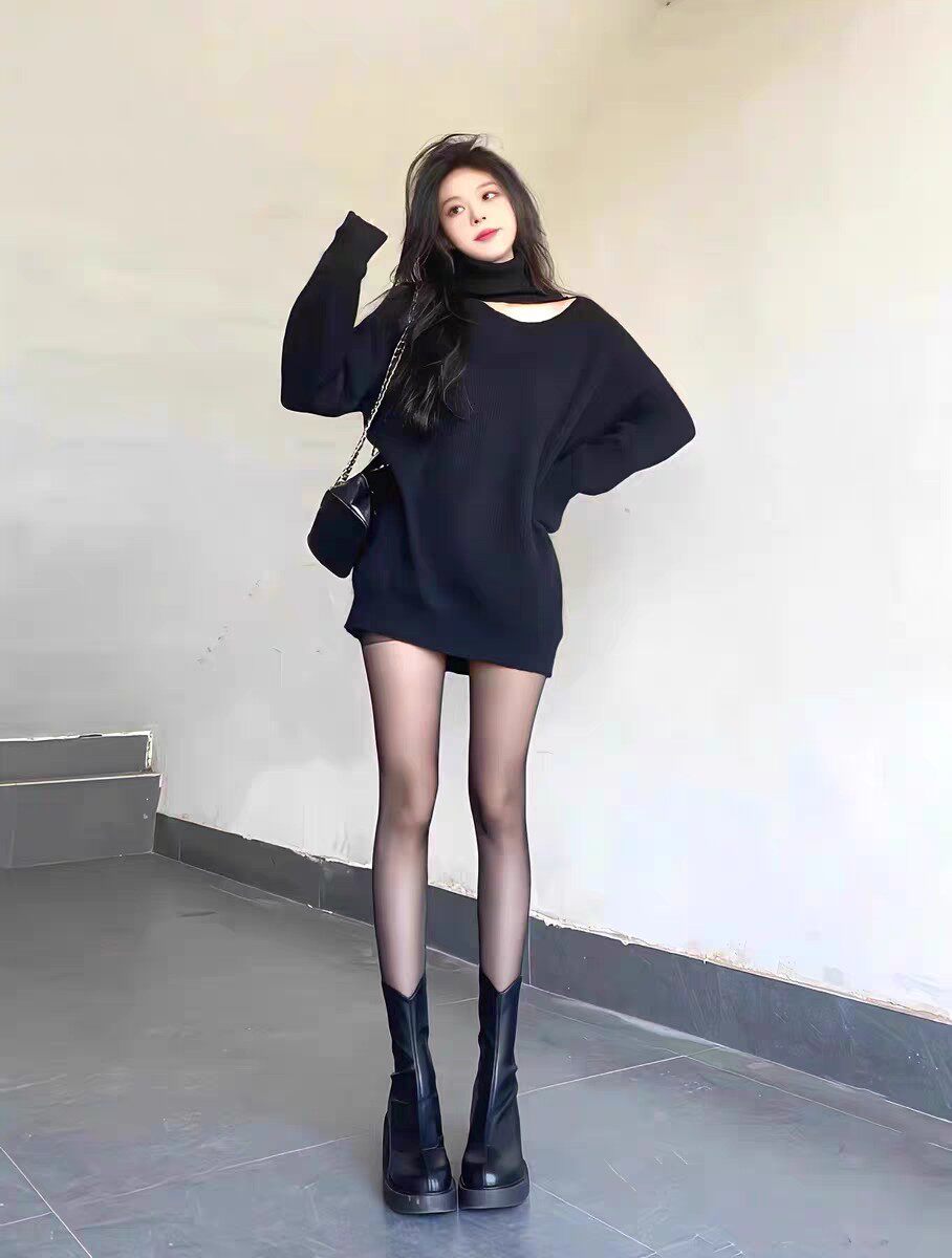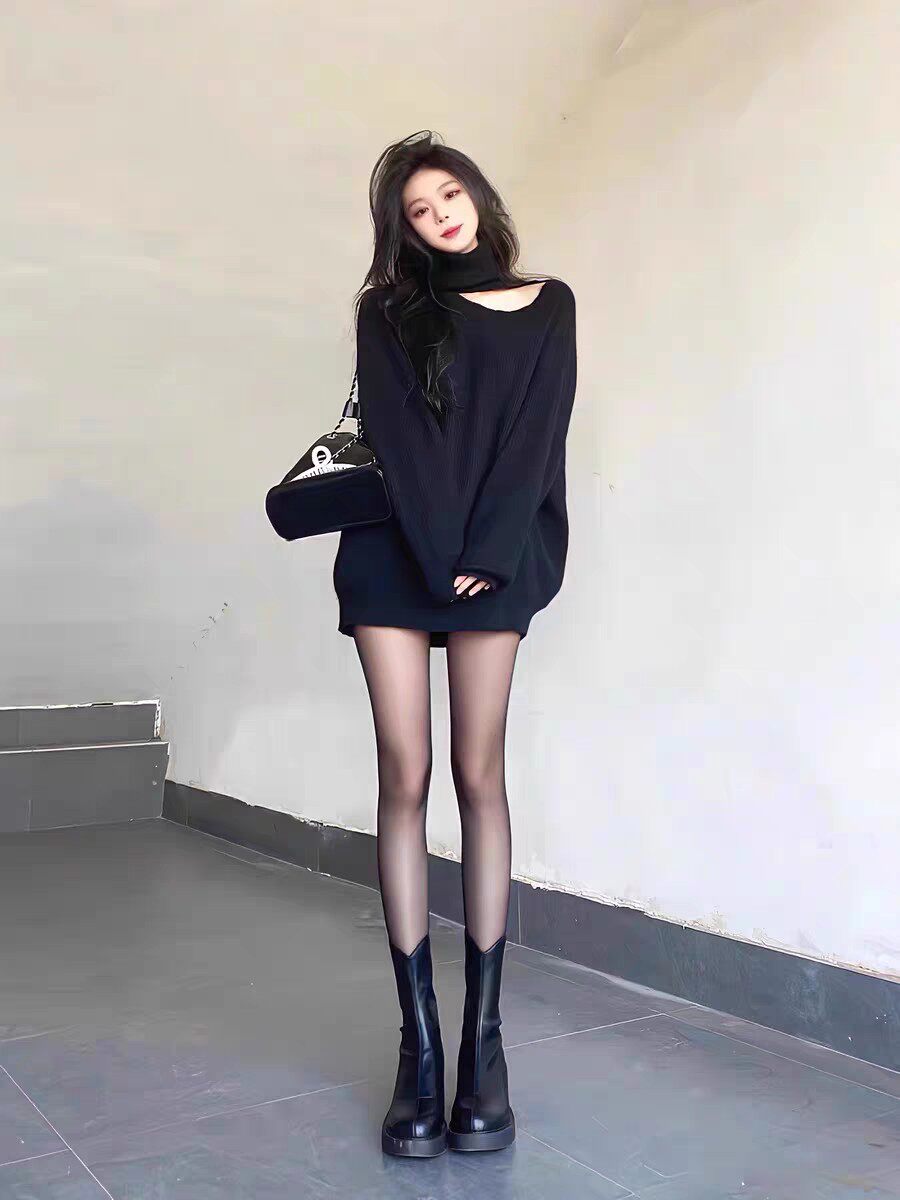 跟风试了试这种黑丝穿搭,真的没想到这么绝!纯欲高级感直接拉满!上腿也是真的显瘦!黑透肤穿上有种高级透肉感,但颜色很均匀,特别是膝盖骨骼感太强了!!集美答应我一定要买回去试试!!