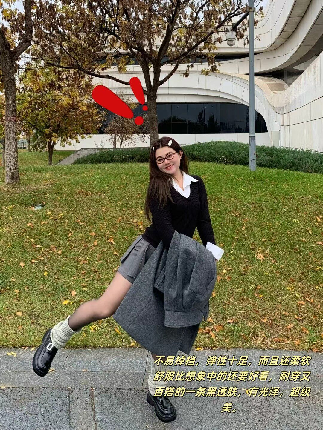 秋天不能没有一条黑丝,下半身消失的穿搭太适合了,黑透肤颜色很自然,今年的新款颜色真的很透,全腿均匀无色差,高级又性感,面料品质也不错,不起球不拉丝,弹力很大,拉伸不紧绷,真的值得姐妹去试试 ❥(^_-)