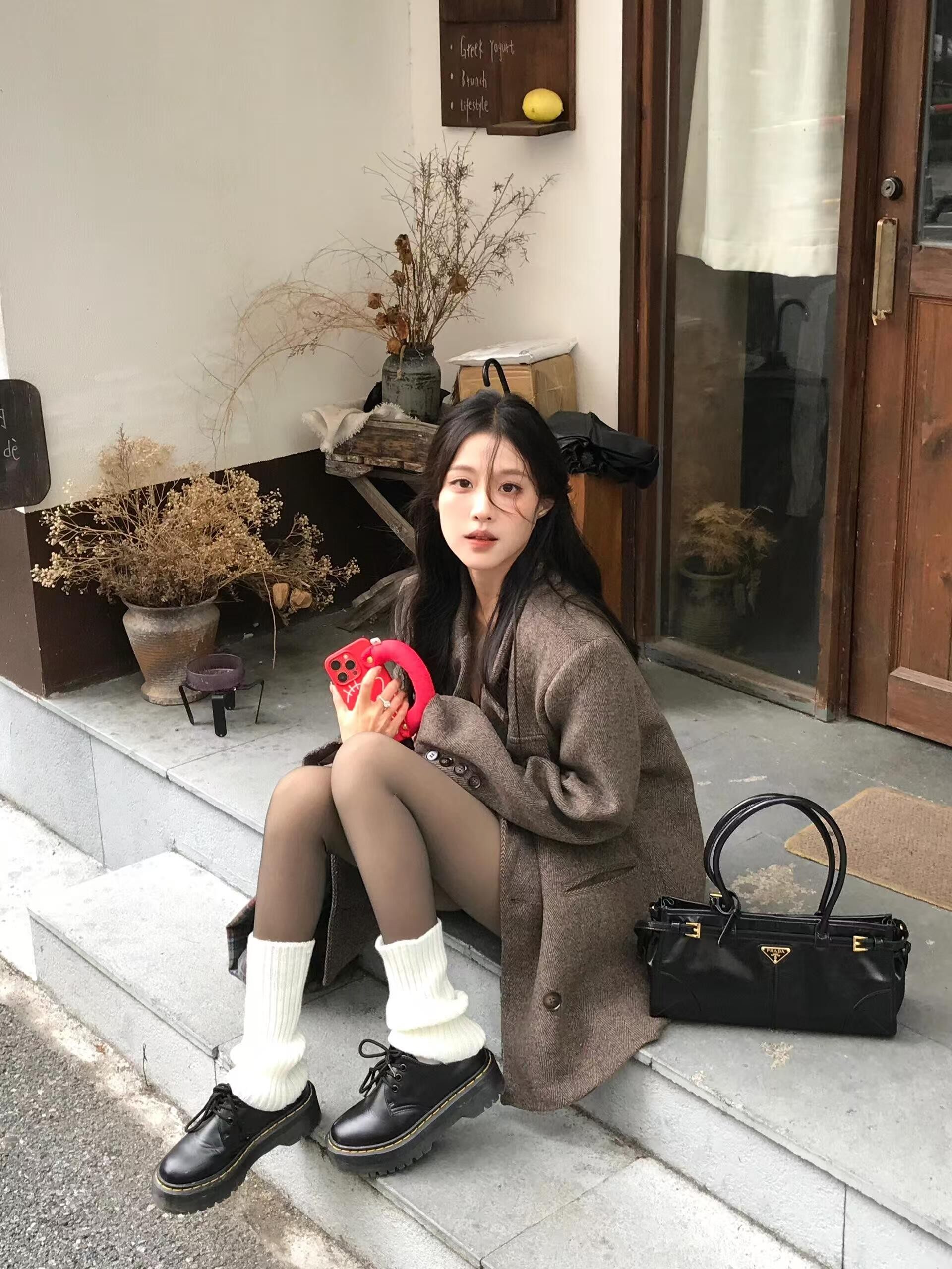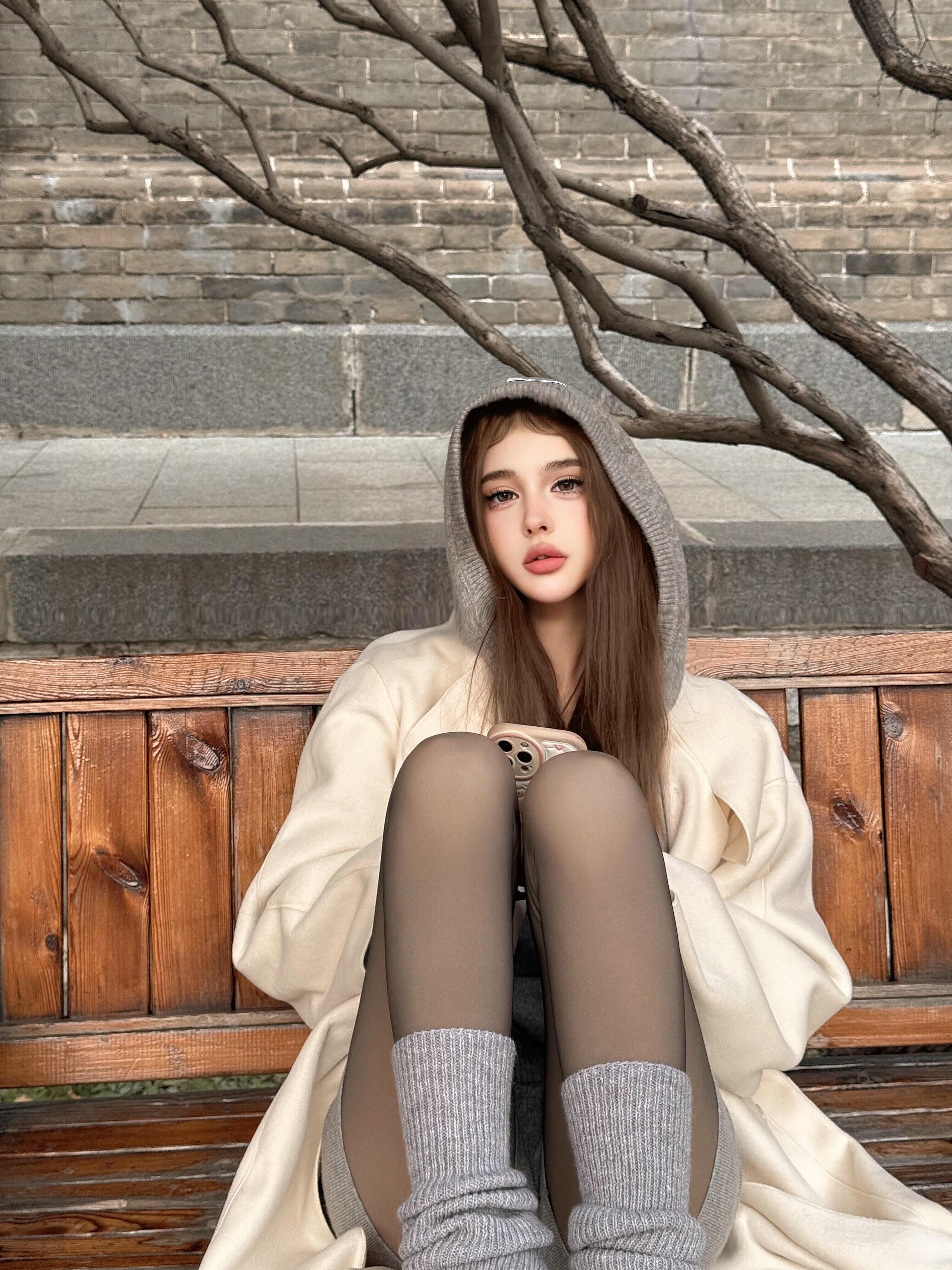 超韩系的加绒黑丝穿搭~挖到一条非常自然的透肤黑丝 均匀透肤,骨骼感很清晰 我在室内室外都很自然 弯腿也没有褶皱, 做了美甲也没有勾丝不容易破 而且非常显瘦啊