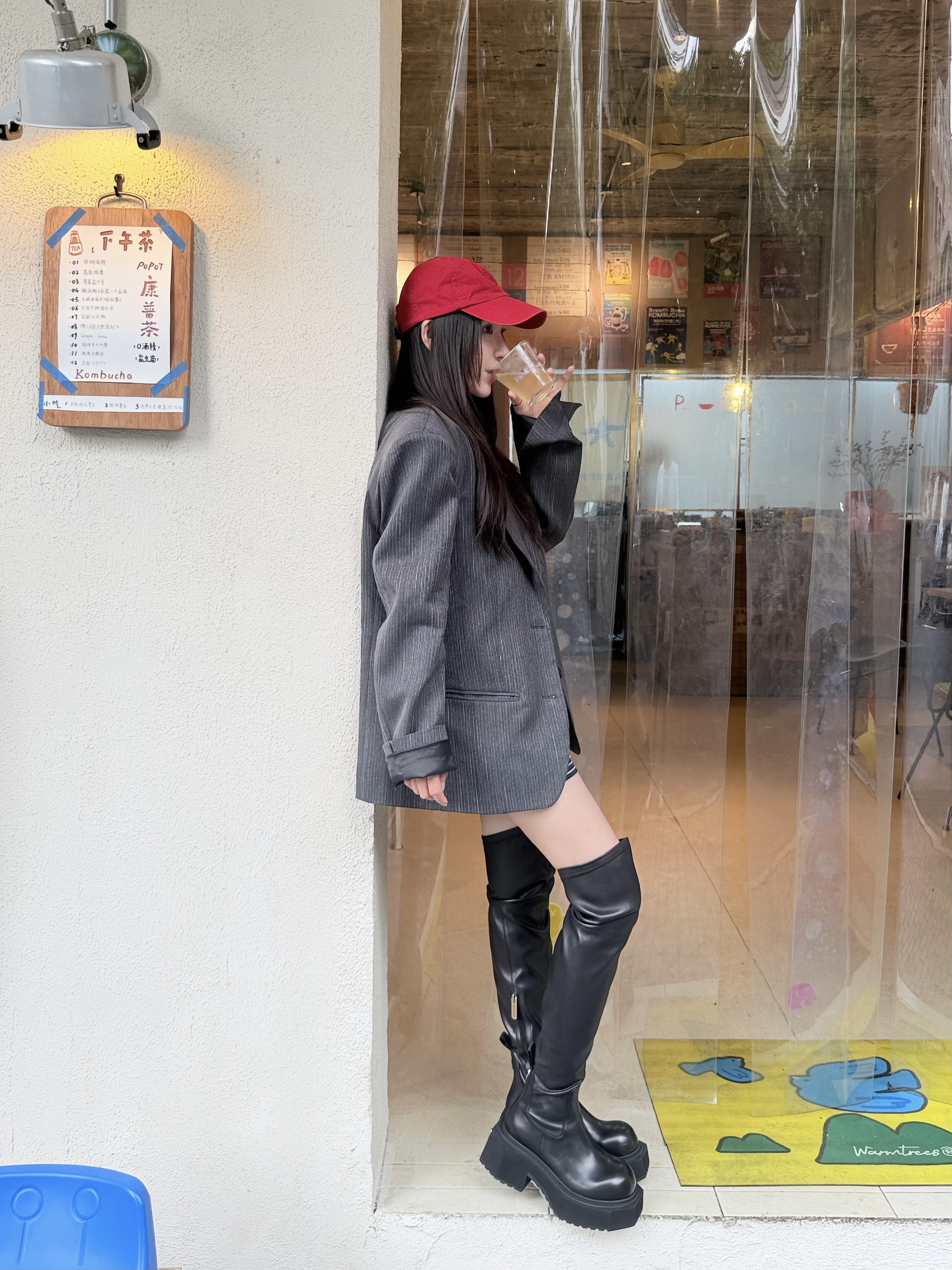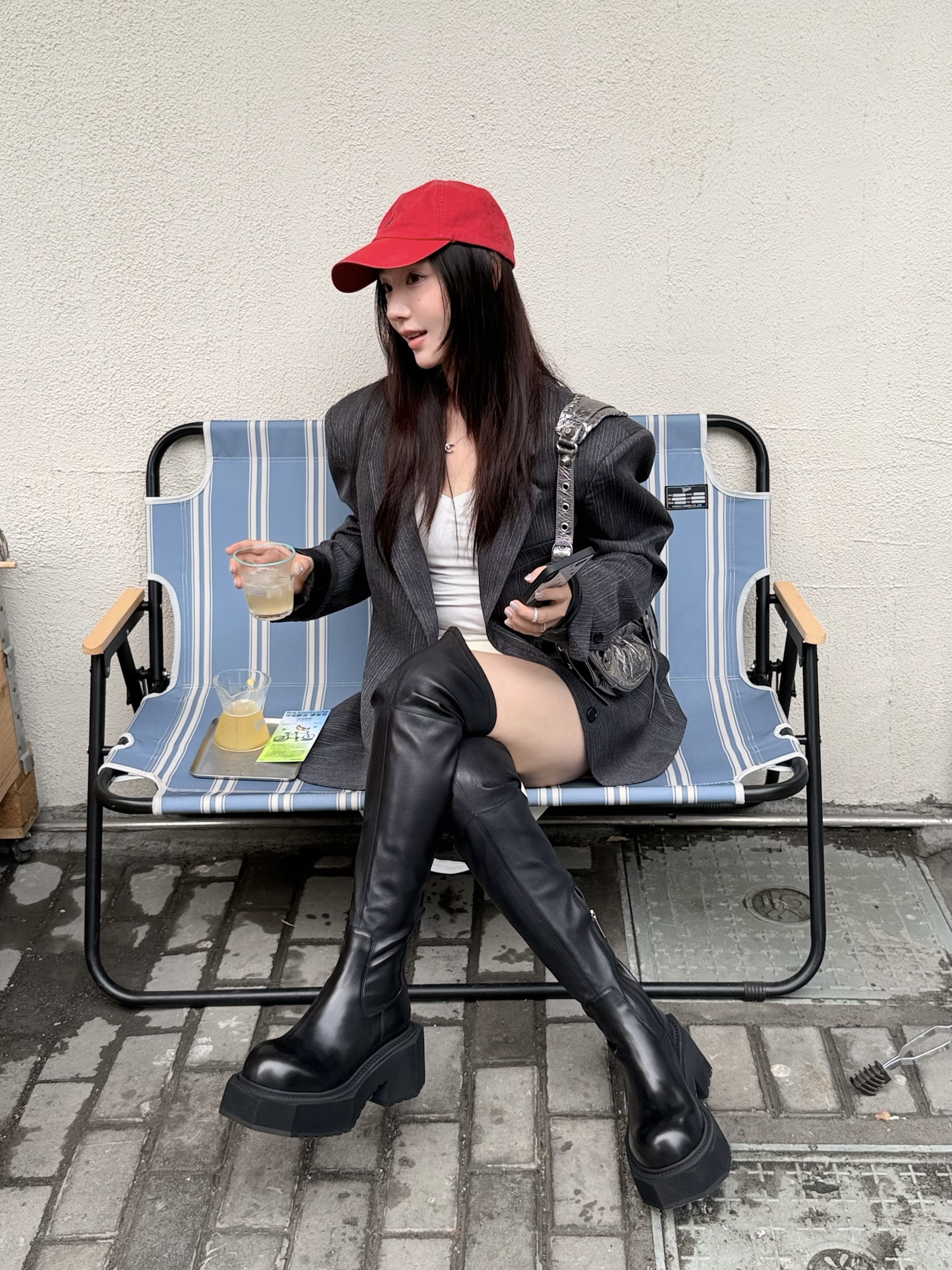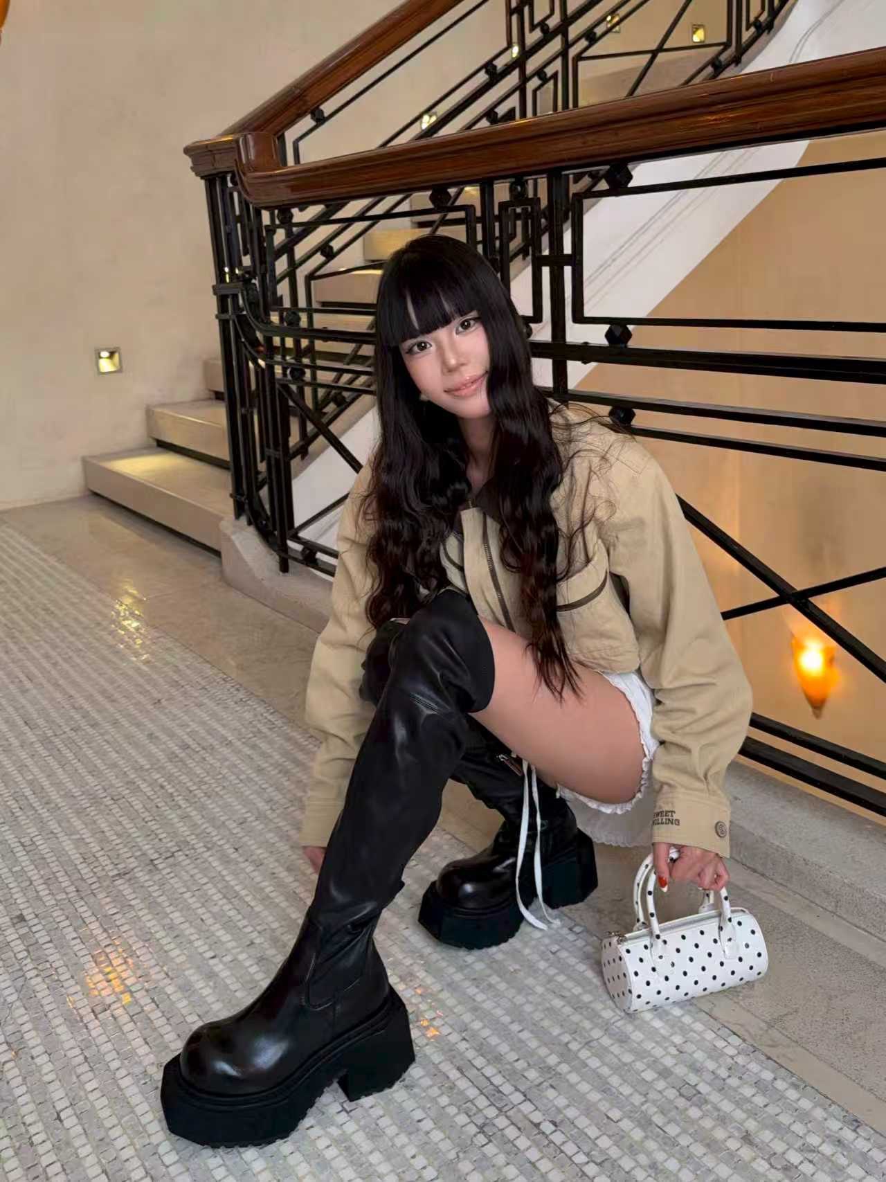 过膝长靴拍照超级出片,爱拍照的姐妹不要错过啦,特别显腿细又直!!鞋底舒适不厚重,站一上午也不累,力荐!