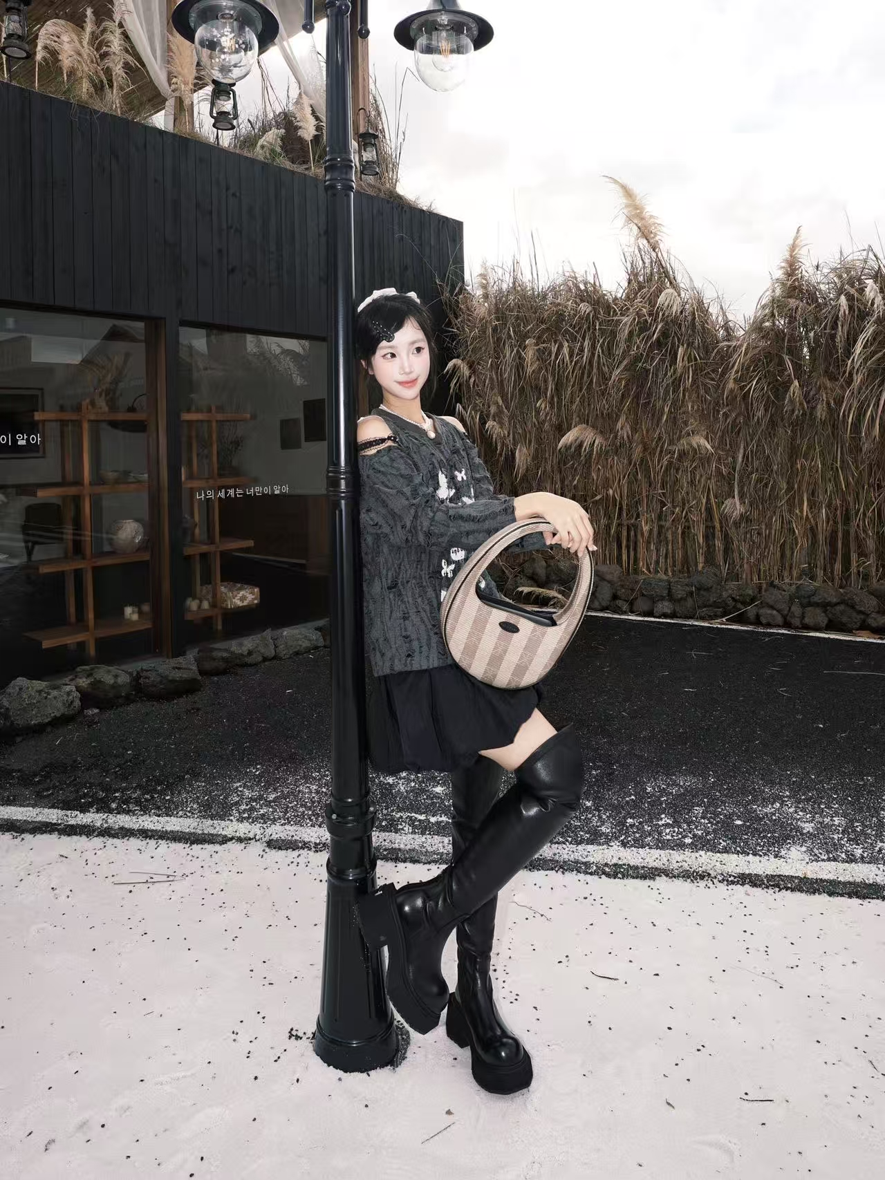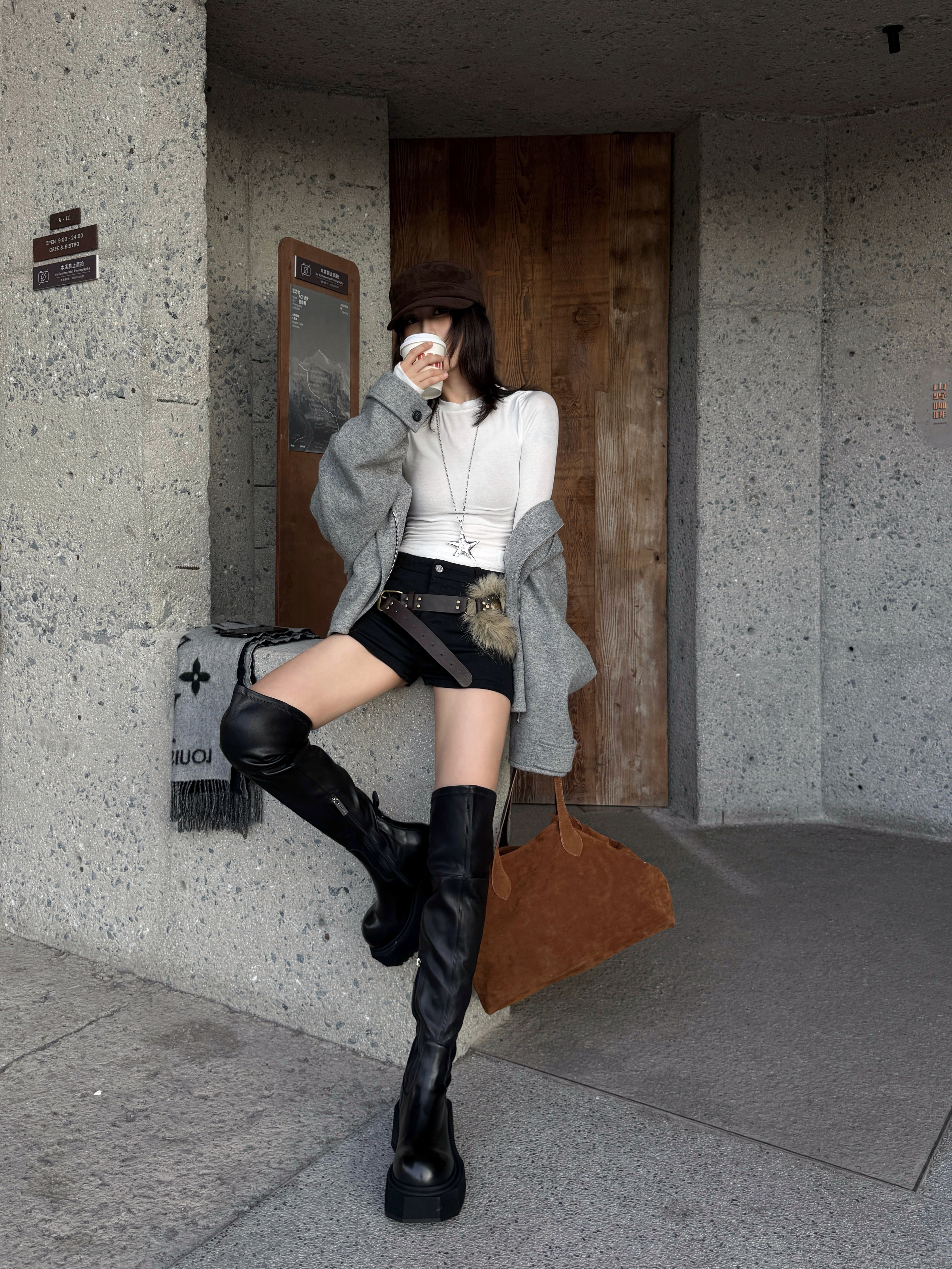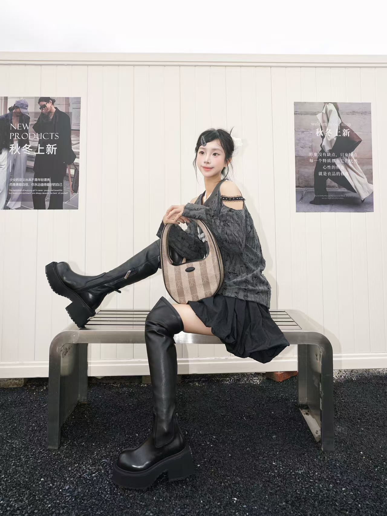 过膝长靴拍照超级出片,爱拍照的姐妹不要错过啦,特别显腿细又直!!鞋底舒适不厚重,站一上午也不累,力荐!