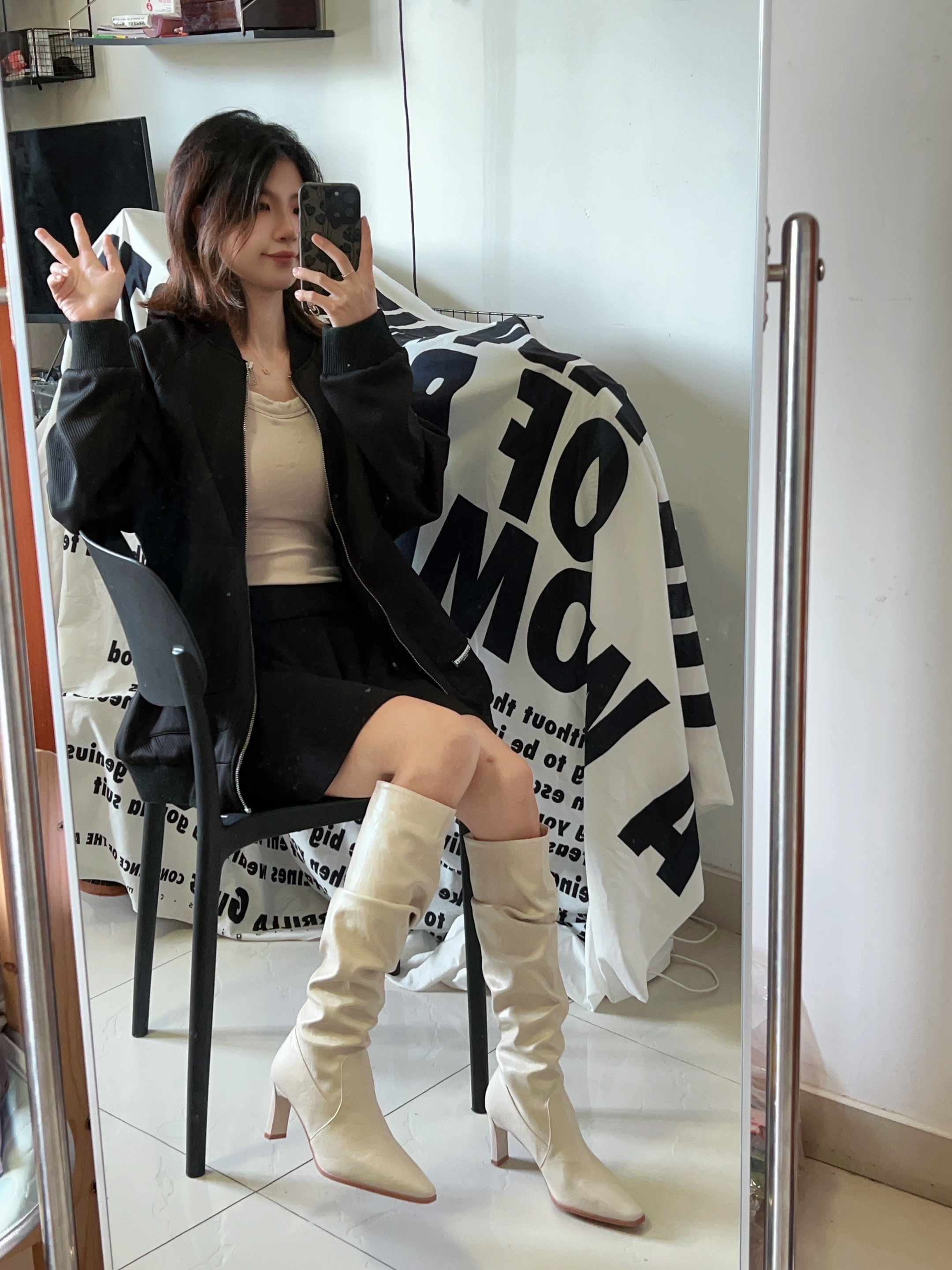 长靴真的好好看,自带氛围感,随意搭配外套再加上包包妥妥的秋冬氛围感!!!