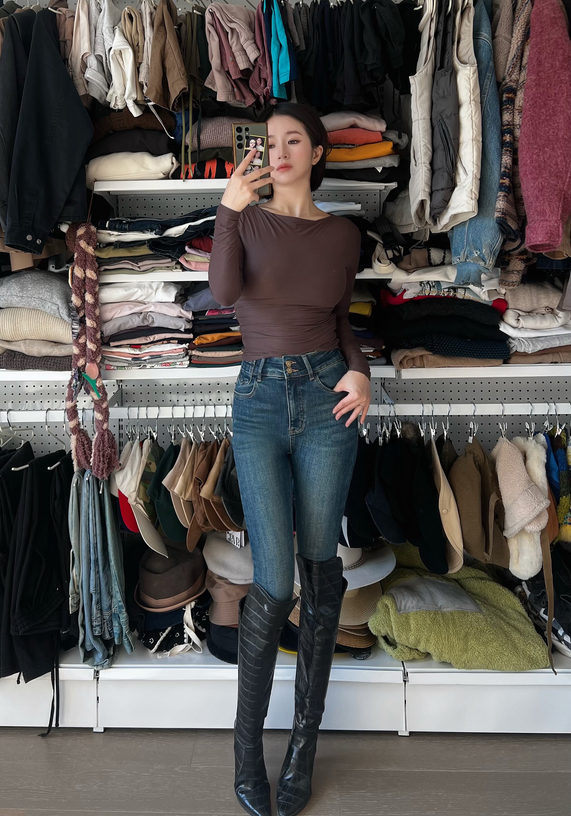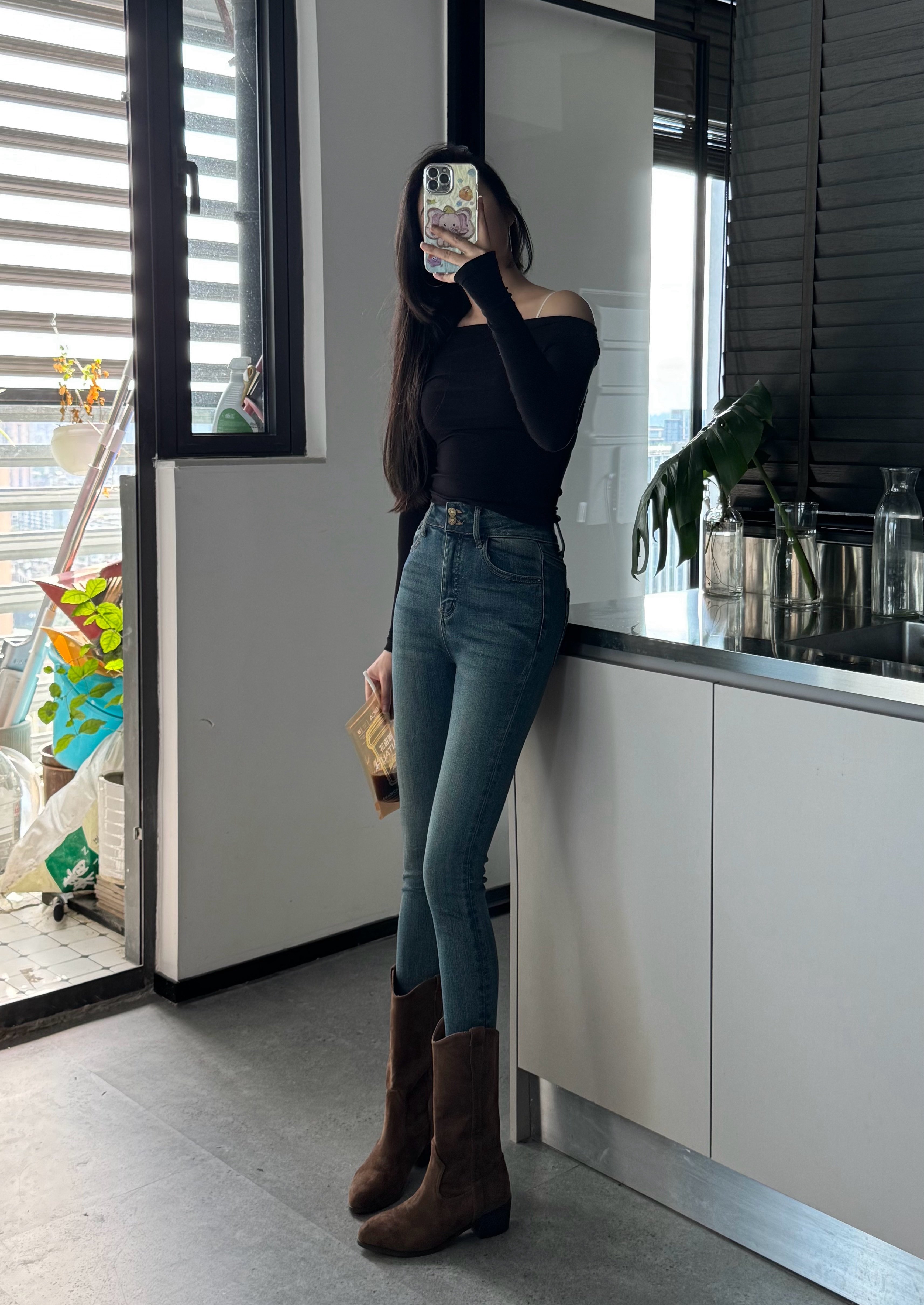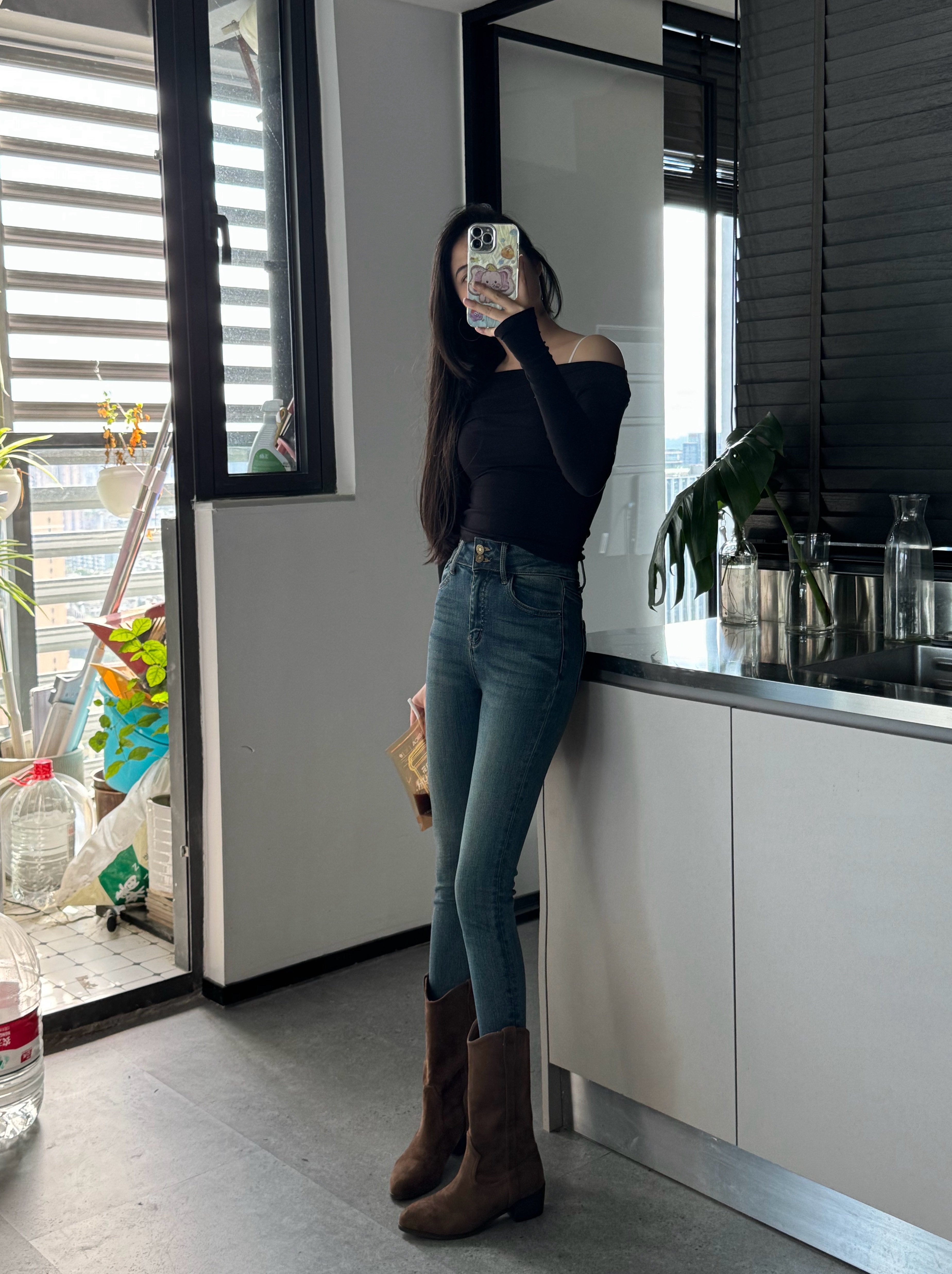 这家我买了5条裤子了,质量版型很好,这条搭配靴子好好看哦,全网搭配靴子最好看的牛仔裤,显瘦很8错!💕