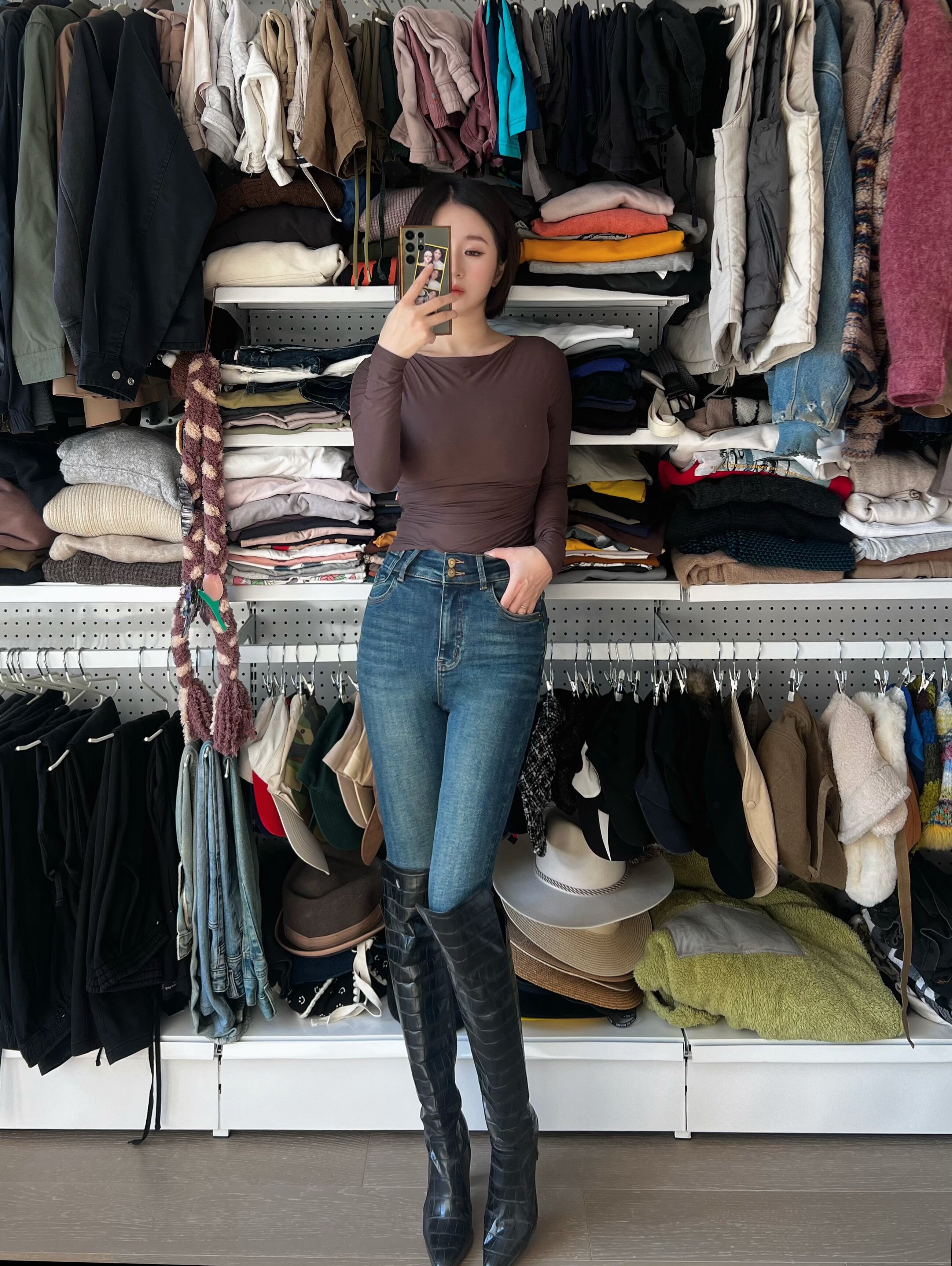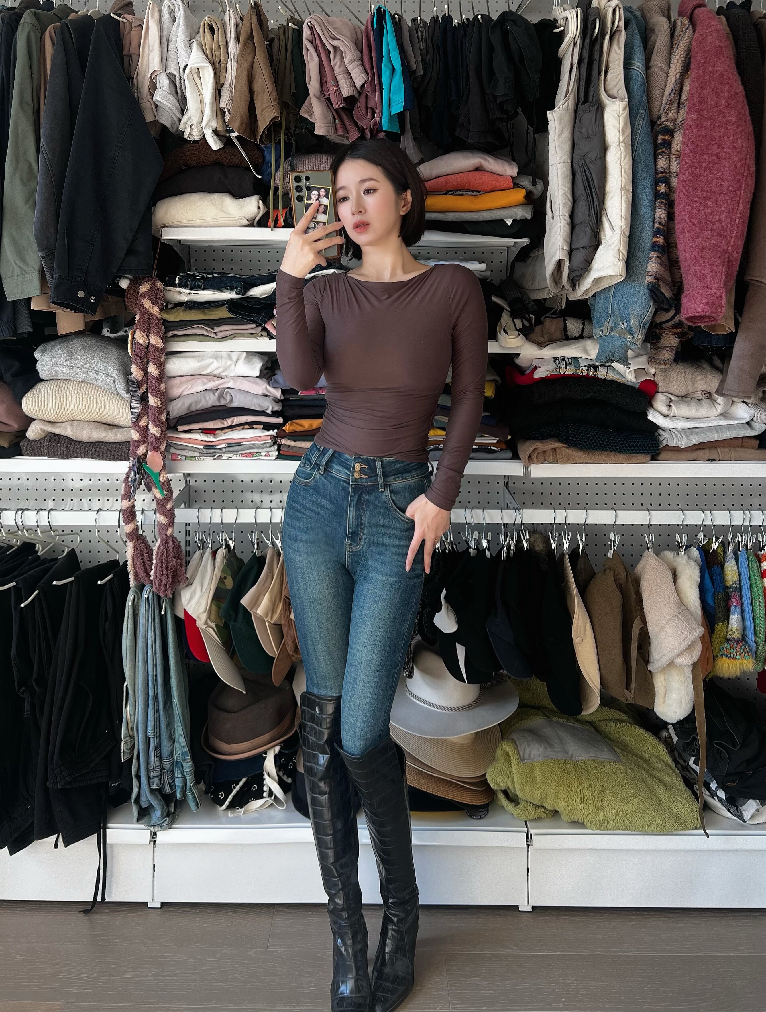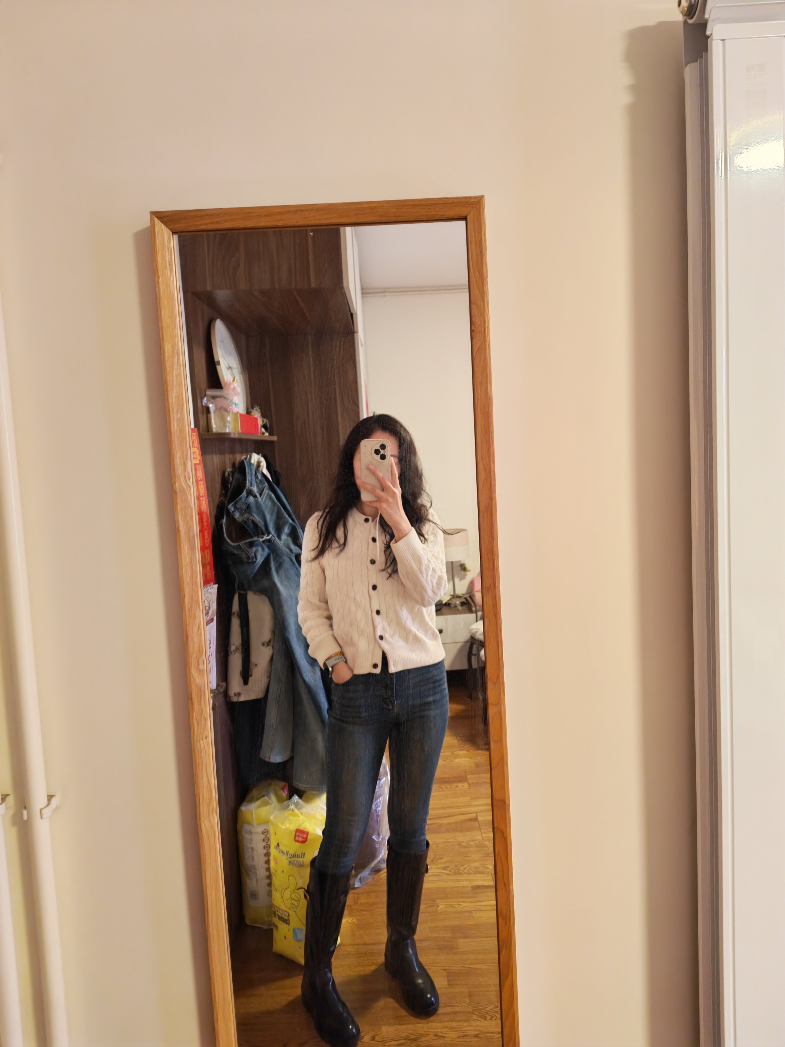 这家我买了5条裤子了,质量版型很好,这条搭配靴子好好看哦,全网搭配靴子最好看的牛仔裤,显瘦很8错!💕