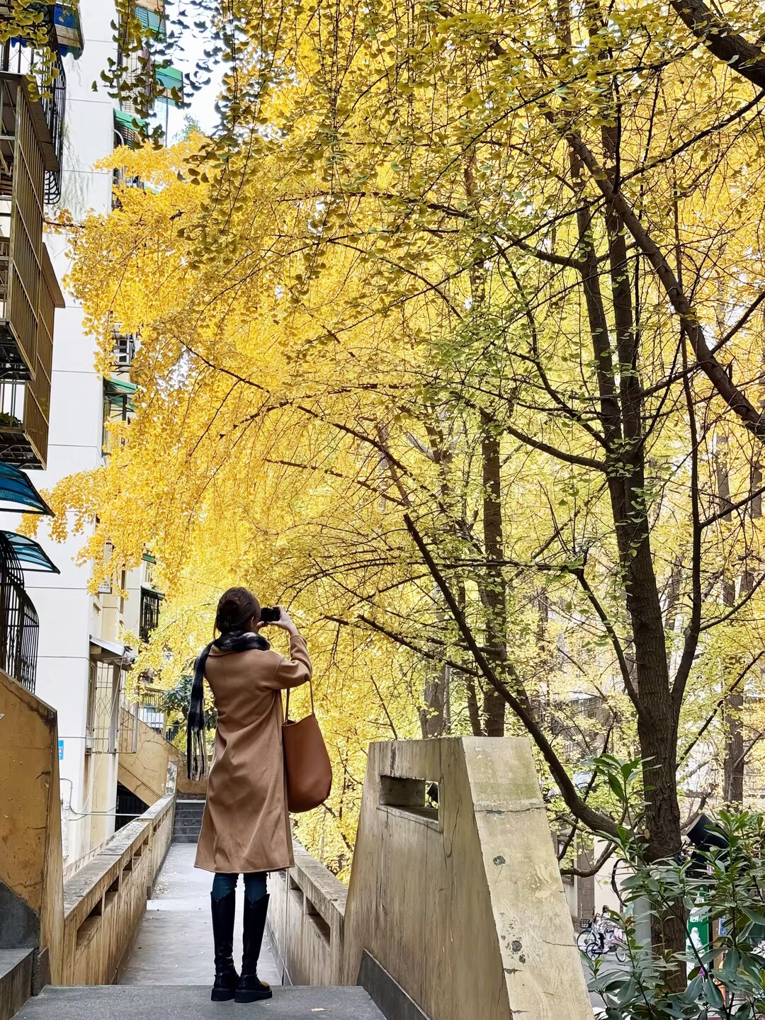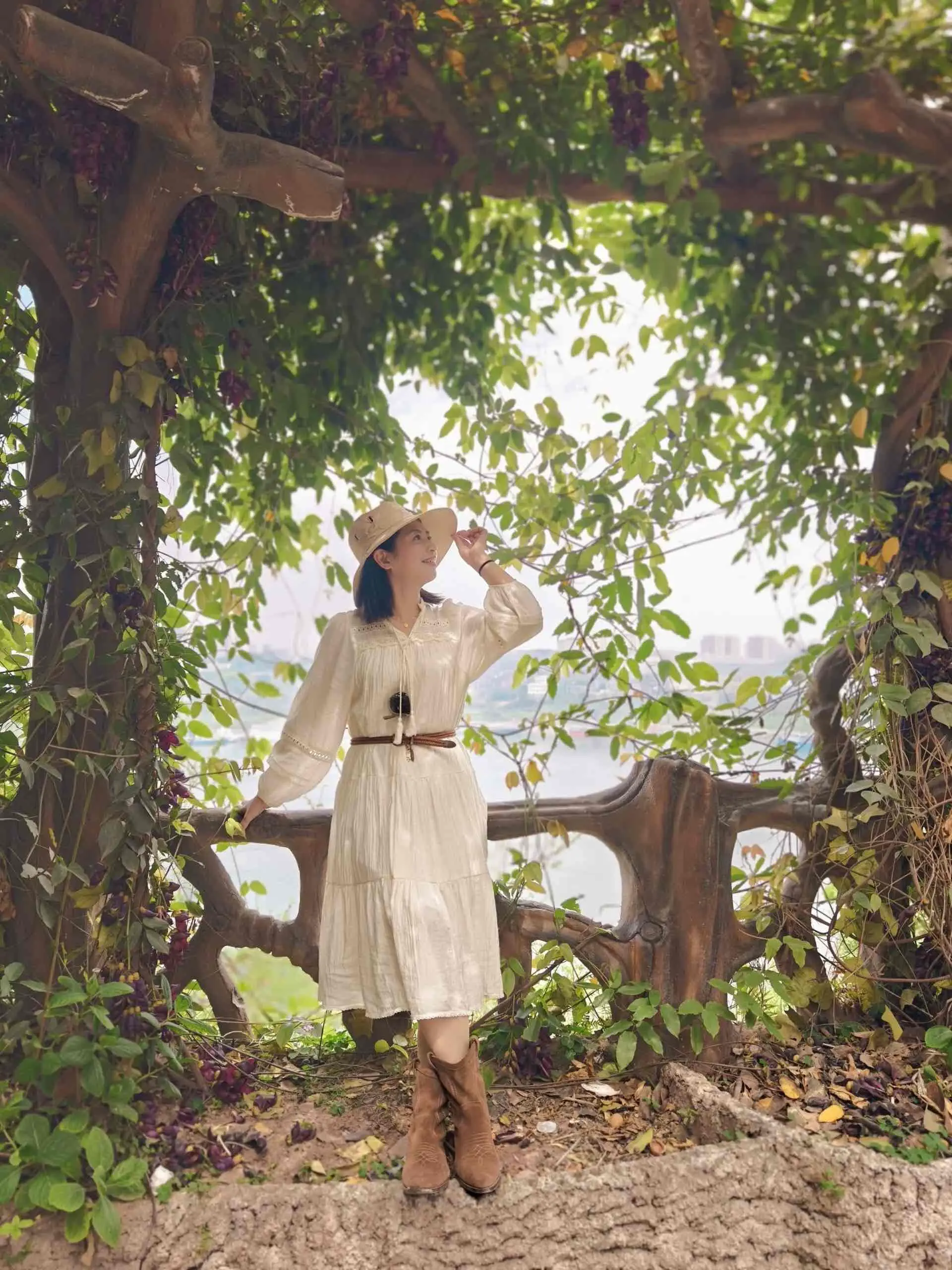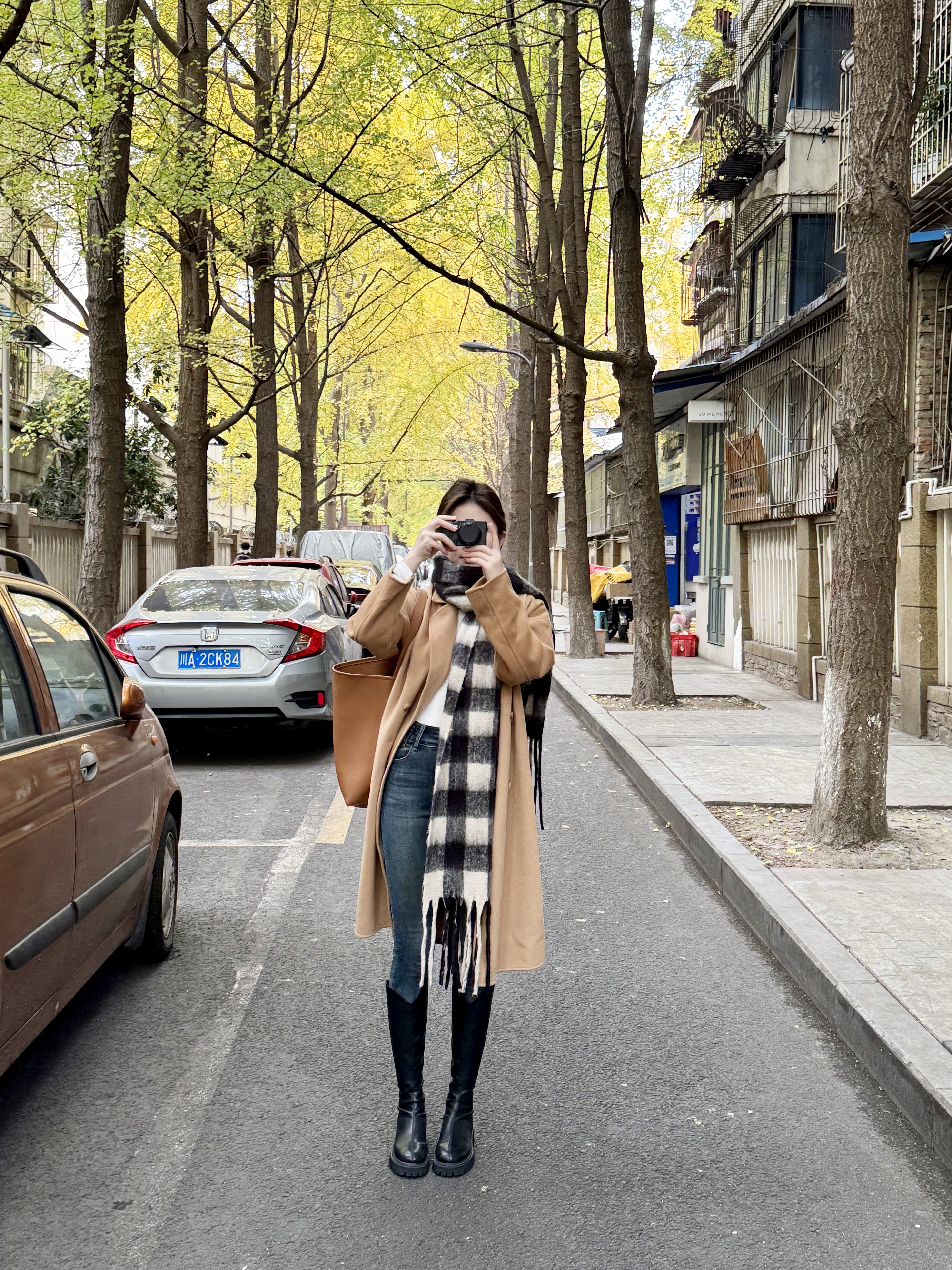 2. 温柔约会风:搭配过膝靴+毛衣+大衣