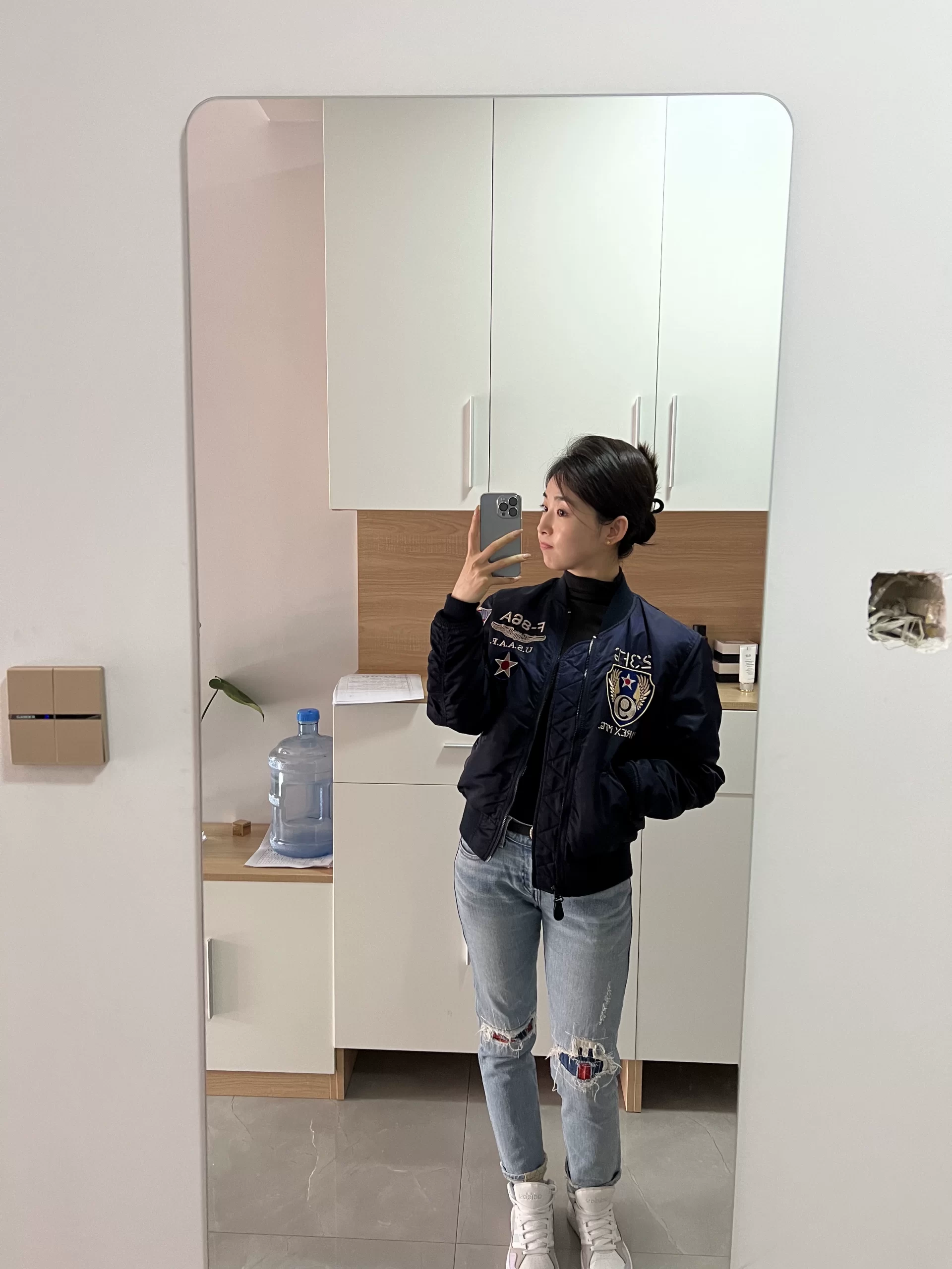 一上身就打算留下 蓝灰色很高级 很清冷 好看的 也很厚实 值得买