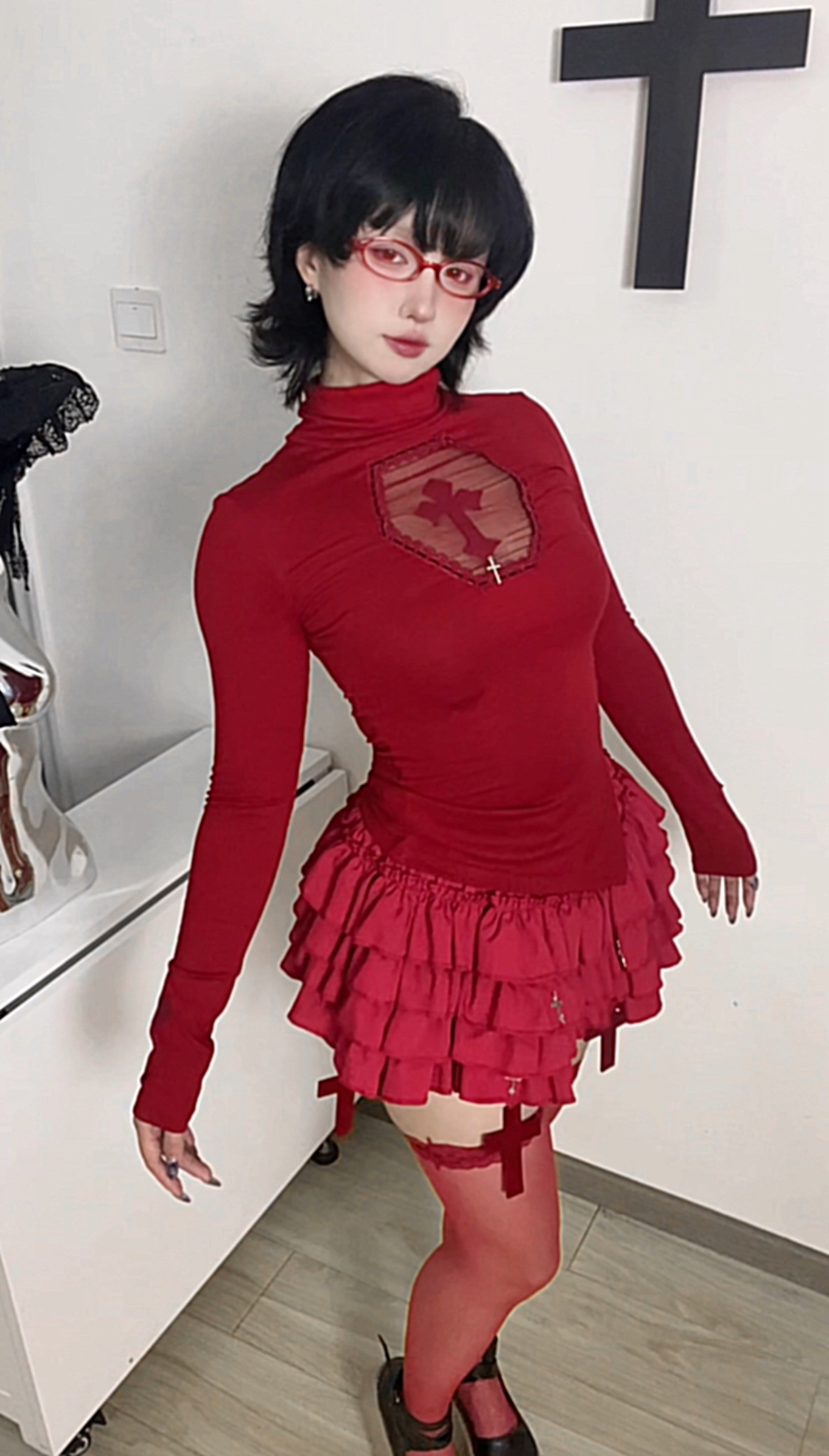 DamnGirl血染十字原创酒红哥特十字架镂空莫代尔高领打底衫内搭 购买地址 复制https://item.taobao.com/item.htm?id=857017663498 太好看了每一件都想入手!!🥰吼看,料子软软嘟 很喜欢十字架✟实在是太好看了!喜欢 质量也好美哭了… 布料什么的就比较普通但是版型可以 拍照蛮上镜的腰臀比神器 长短刚好 不会走光 搭一套超美158,46kg 上衣洗第一遍的时候有点浮色 布料挺舒服的相关 发布于 衣服 标签 DamnGirl, 上衣, 打底衫, 镂空衫, 高领衫 上篇文章: 明星同款73hours女鞋Hazel冬季棕色增高长筒西部靴骑士靴女 下篇文章: 性感纯欲风挂脖旗袍连衣裙女秋冬修身蕾丝包臀裙外搭披肩套装
