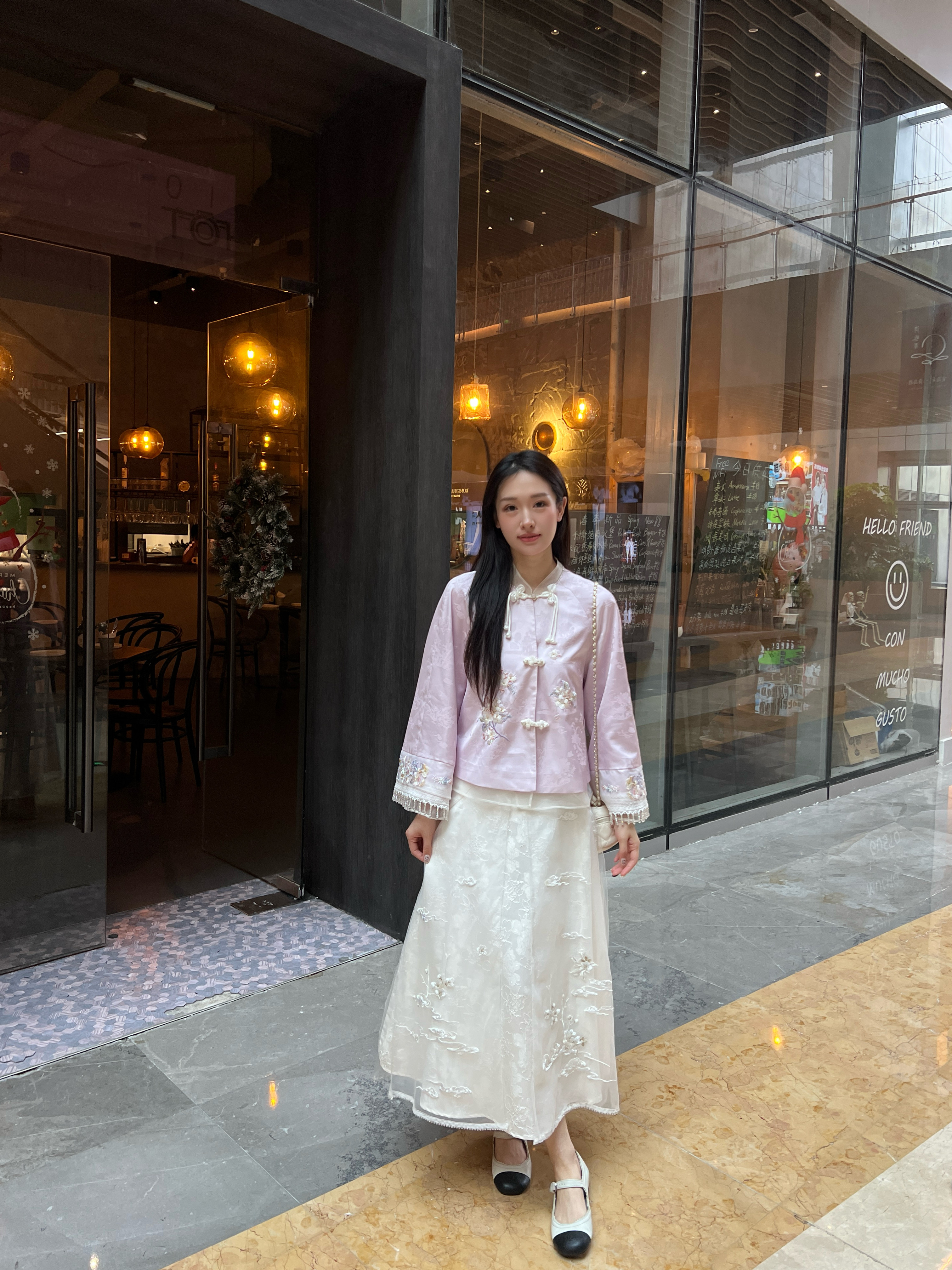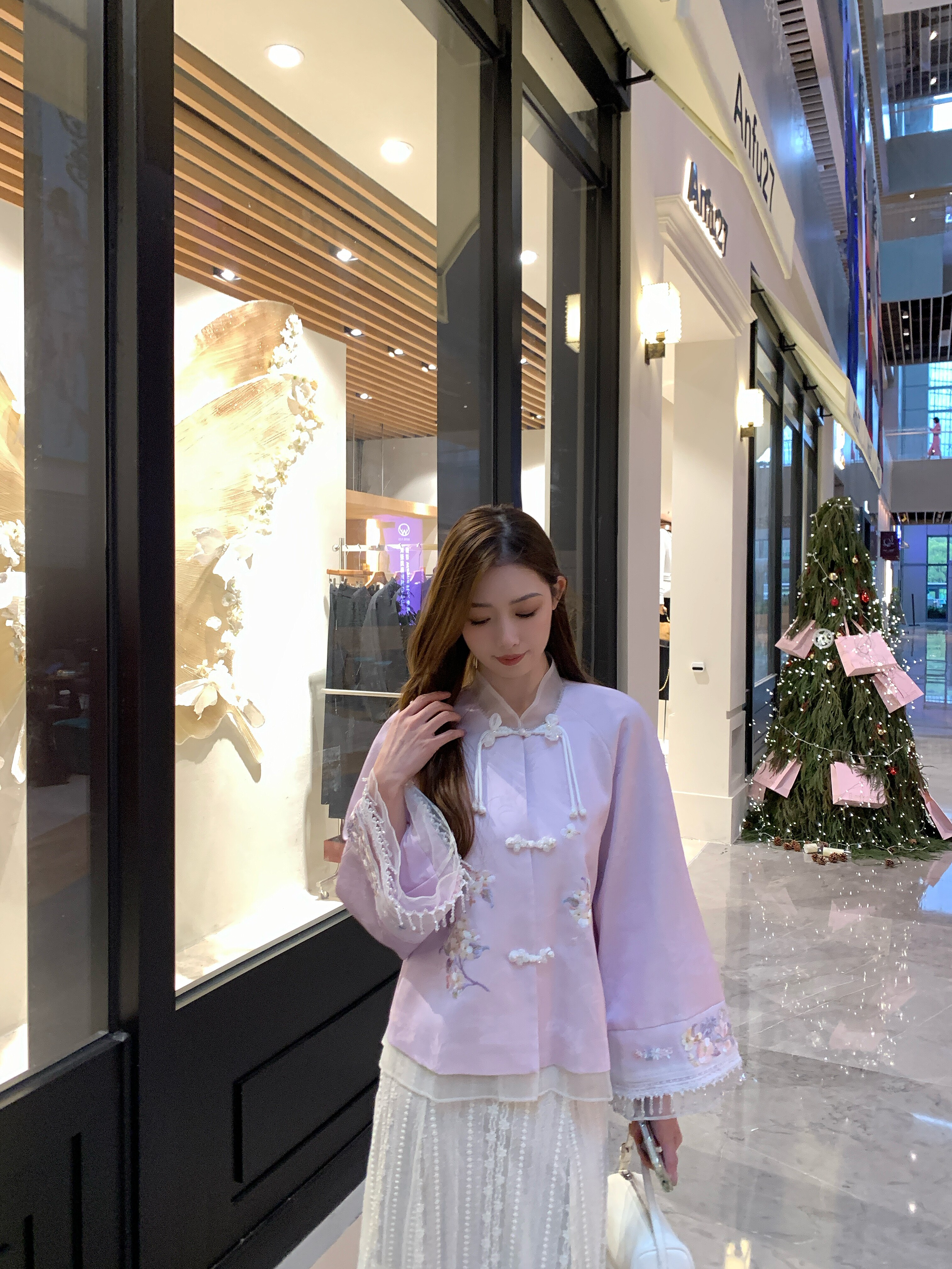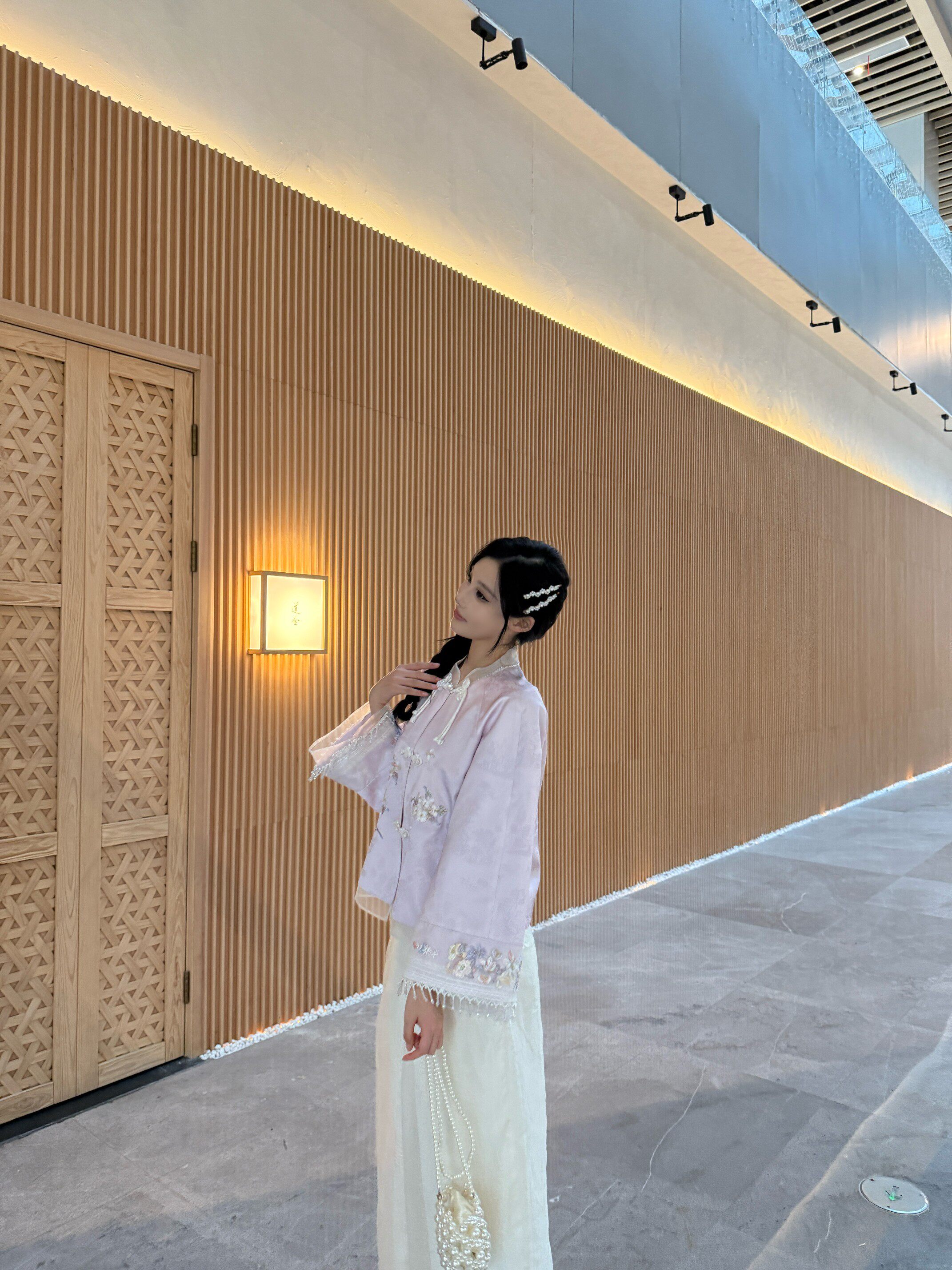 3天后追评:被这件上衣拿捏啦,淡紫色真的好显温柔,走线很工整,绣花精致,整套配色温柔,日常穿完全没问题,喜欢国风的姐妹闭眼入~