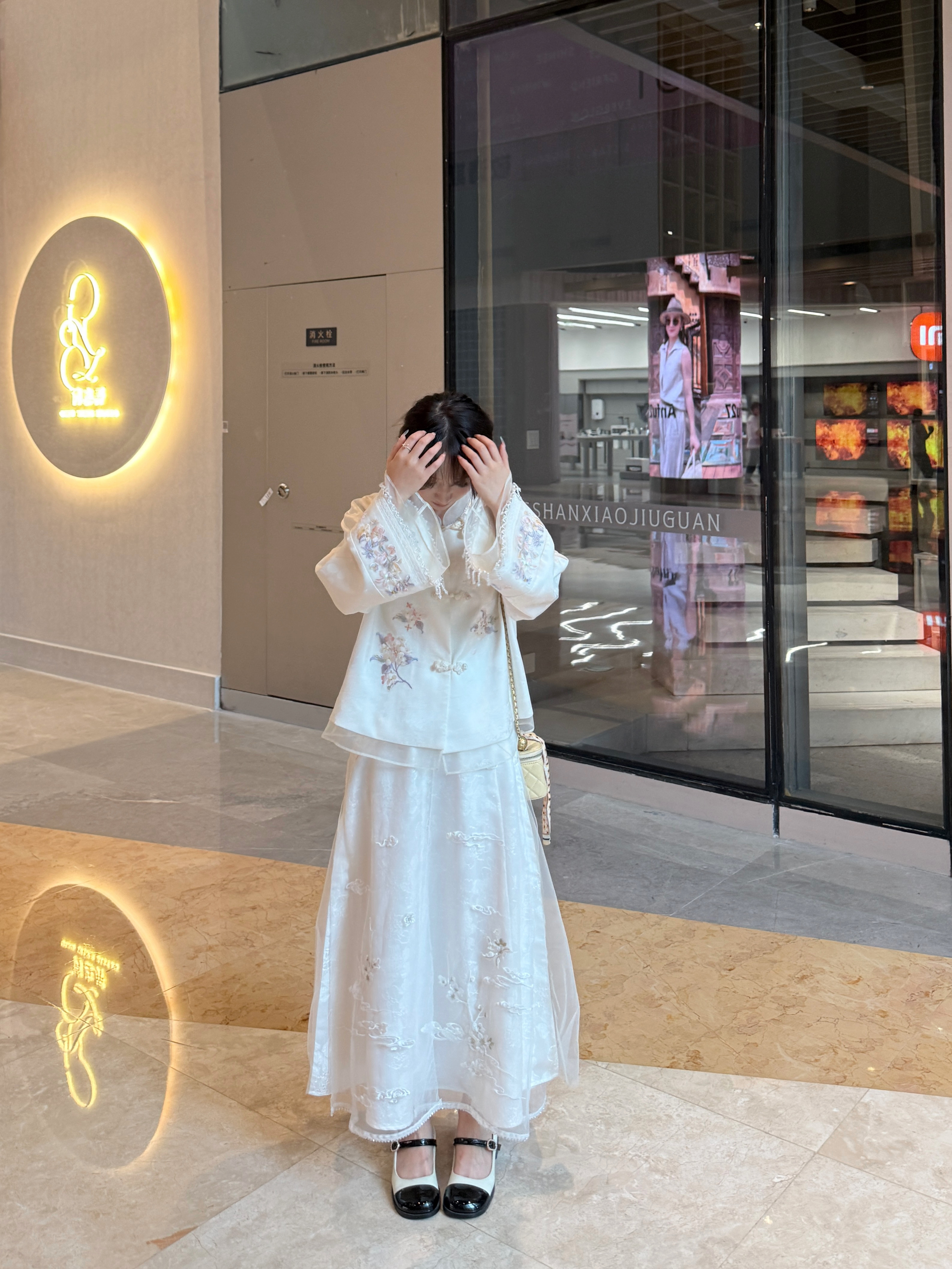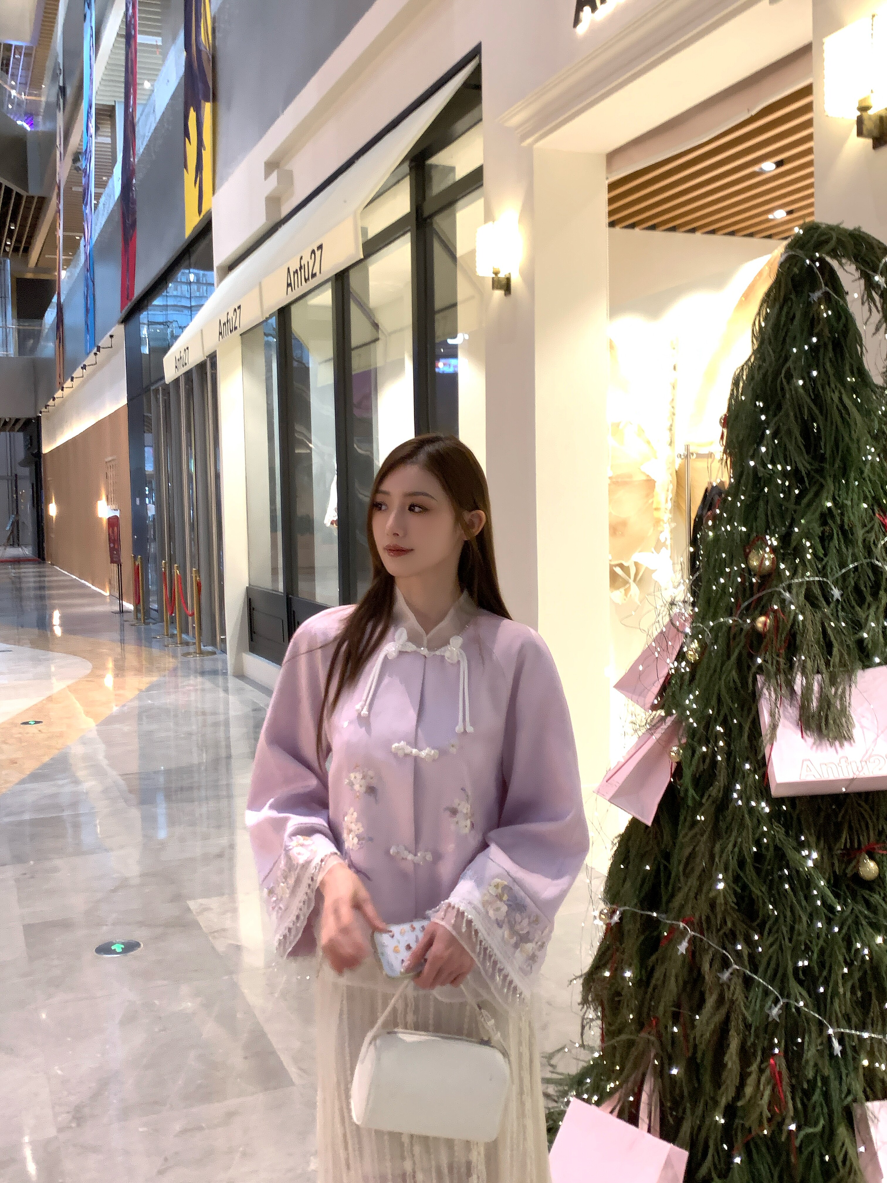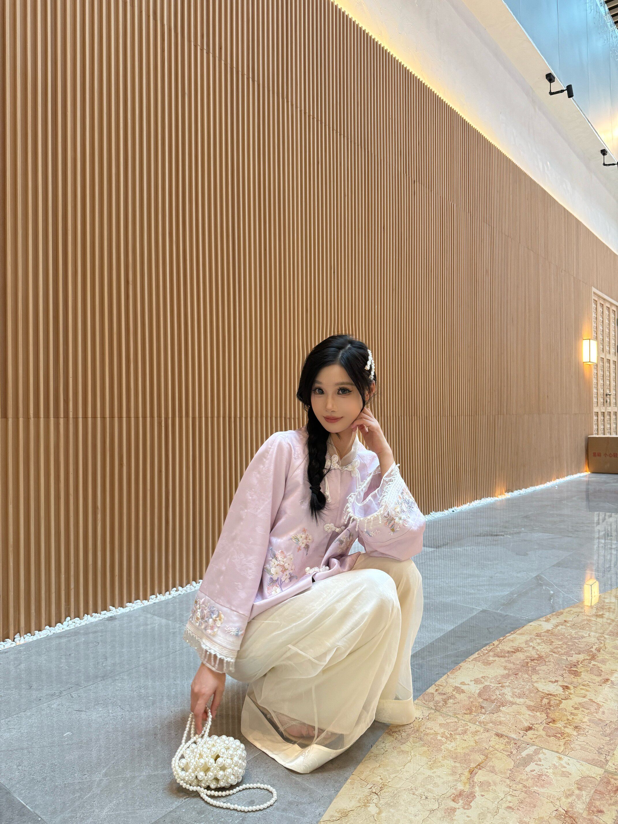 3天后追评:被这件上衣拿捏啦,淡紫色真的好显温柔,走线很工整,绣花精致,整套配色温柔,日常穿完全没问题,喜欢国风的姐妹闭眼入~