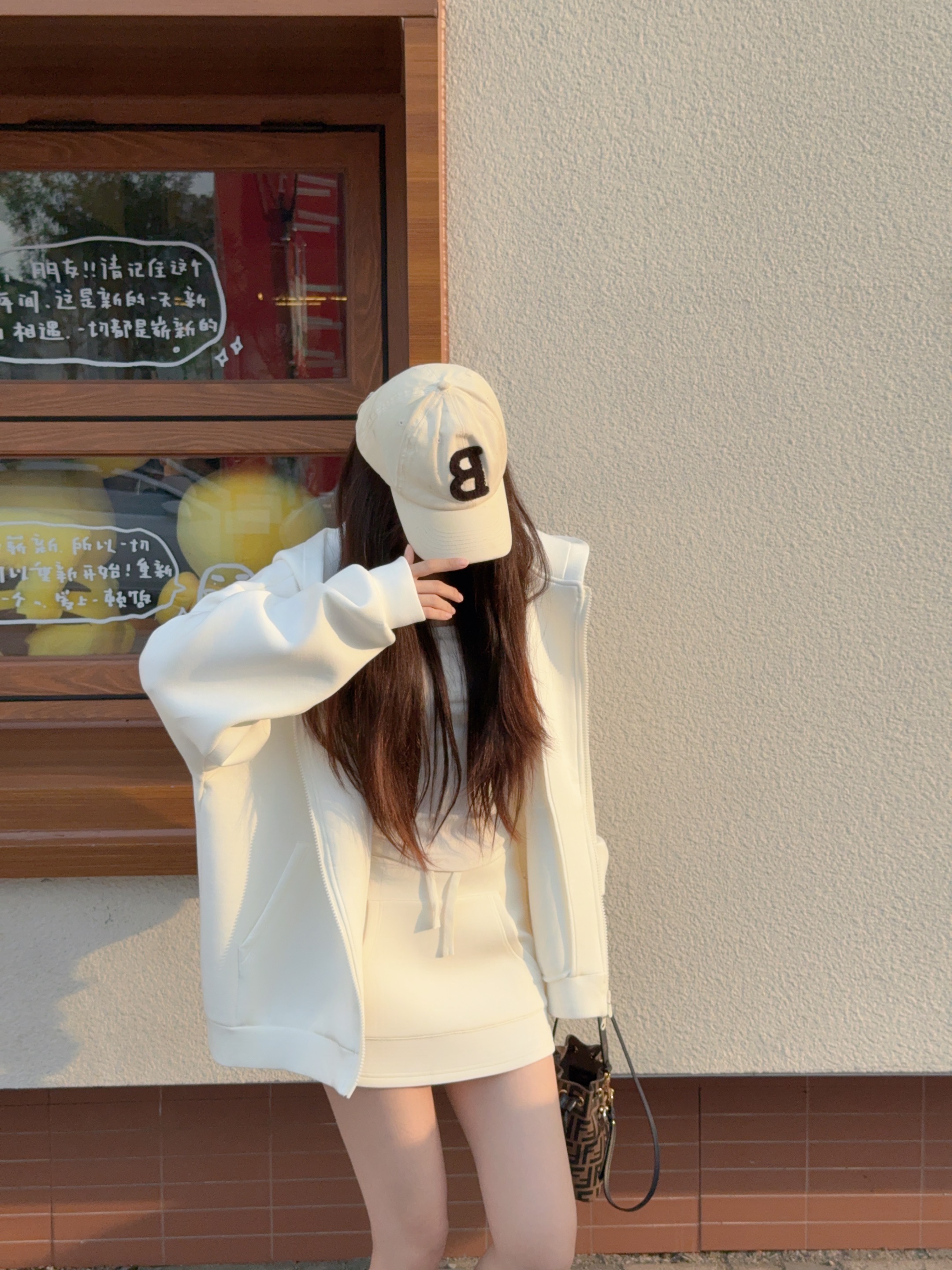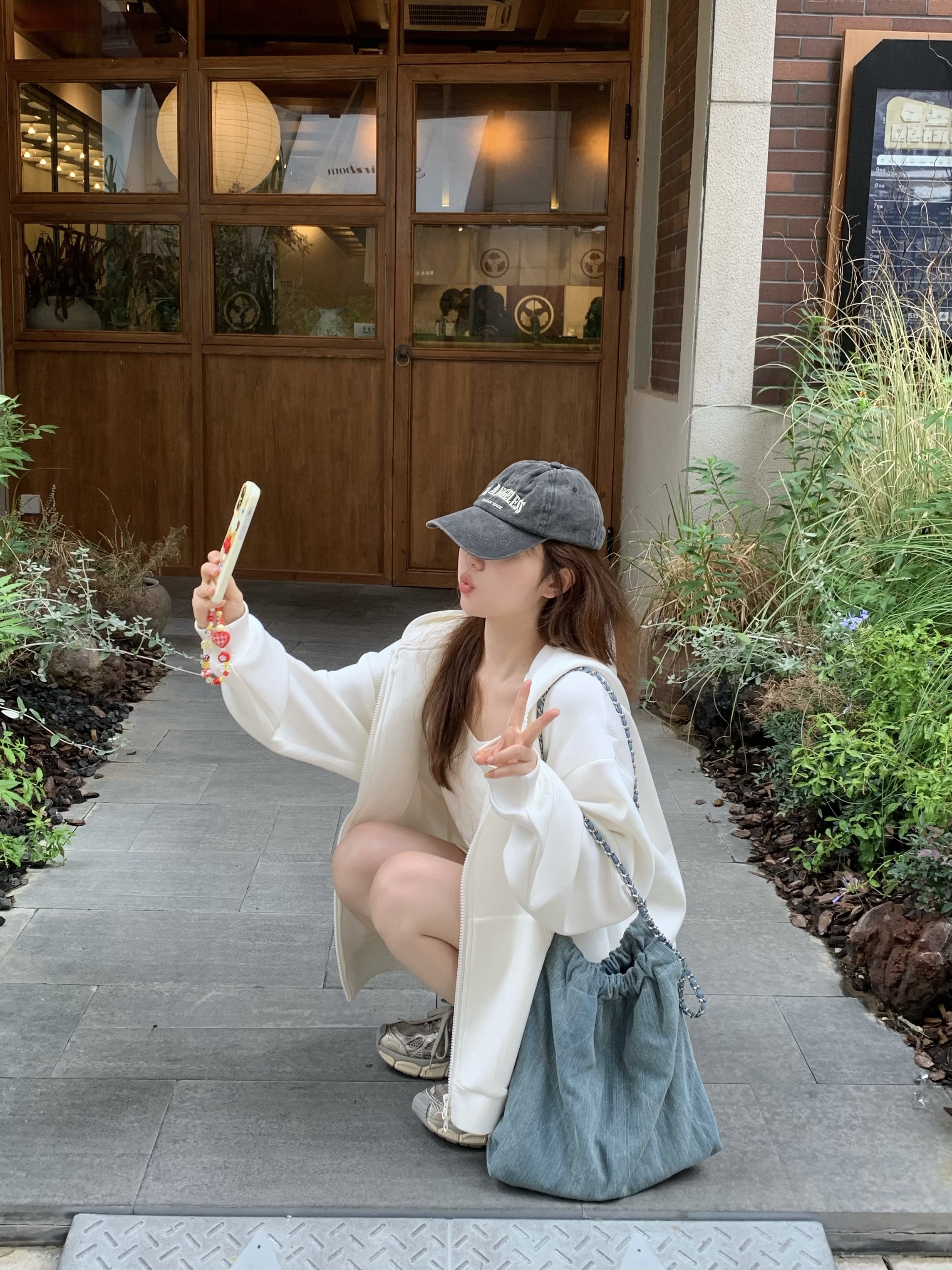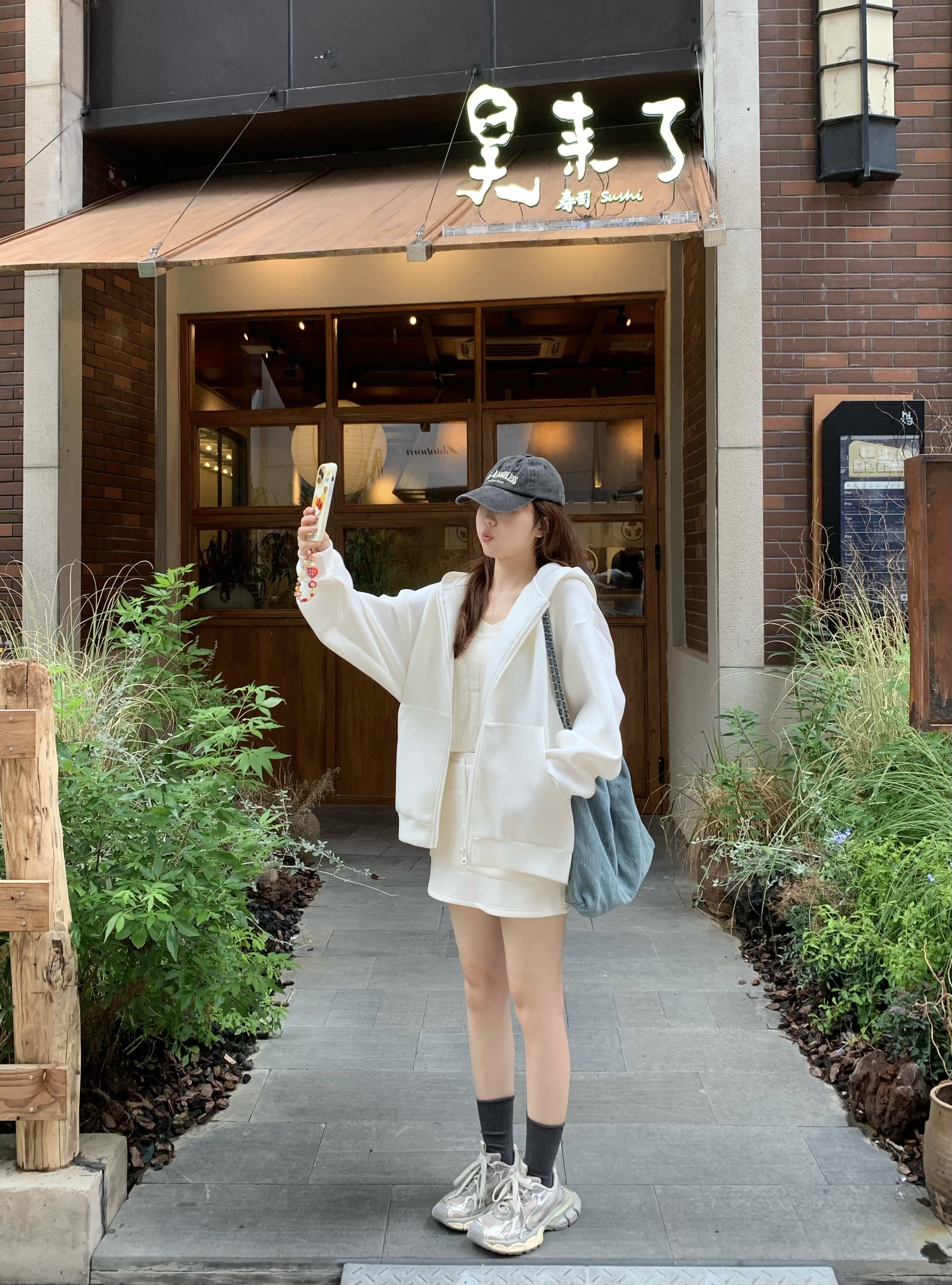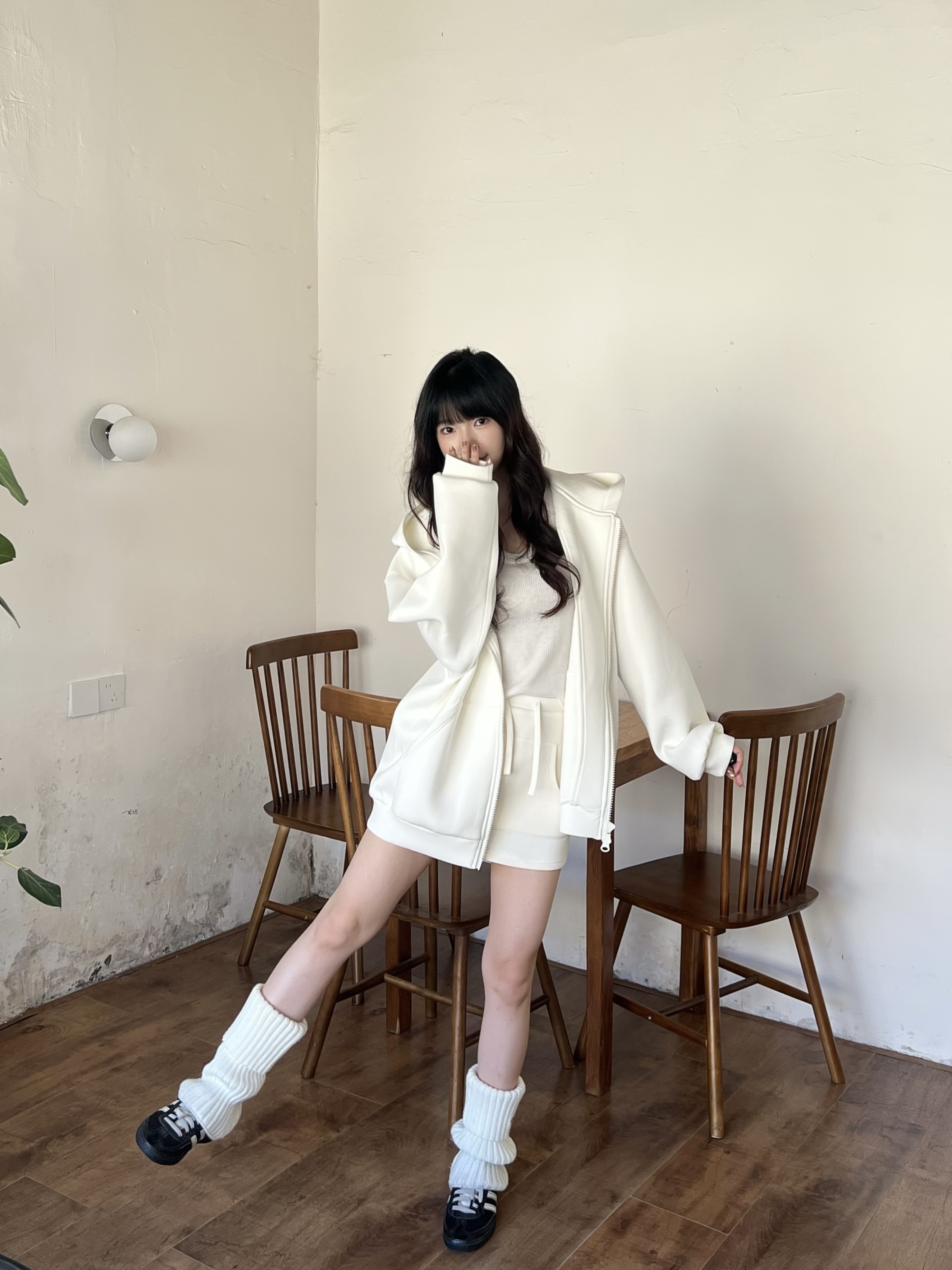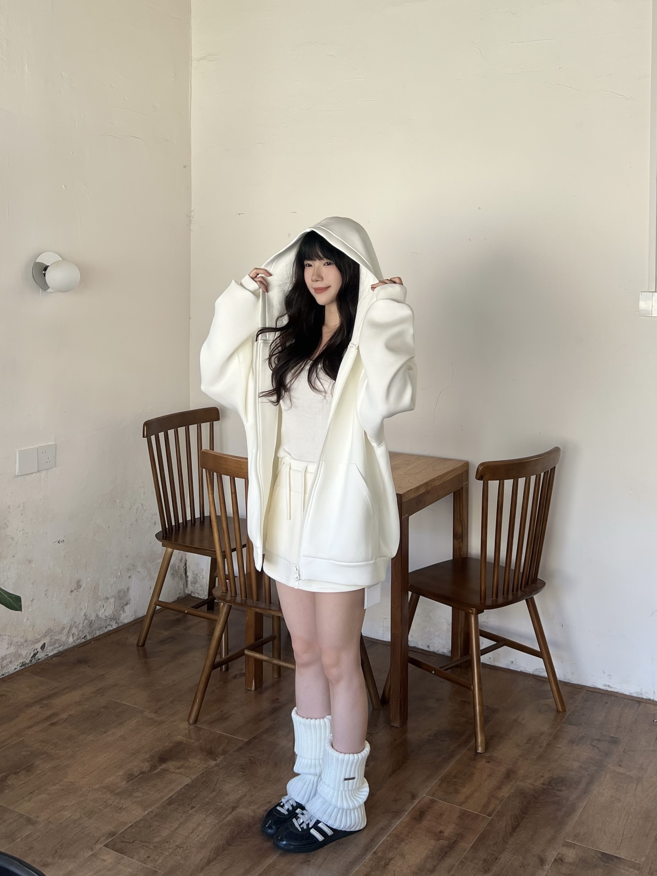 这件灰色卫衣外套真的是衣橱百搭王!面料摸起来软乎乎的,贴身穿不扎人