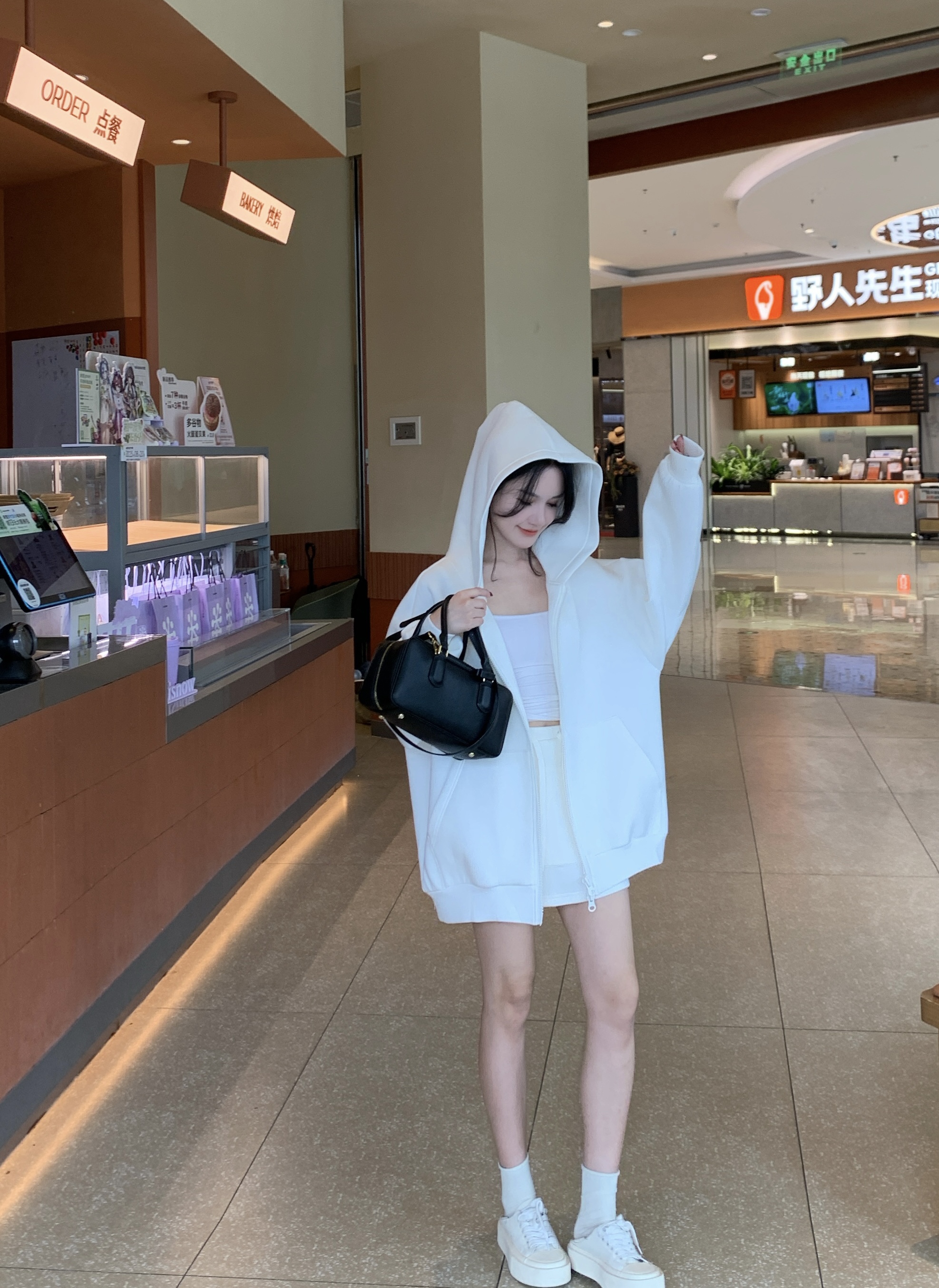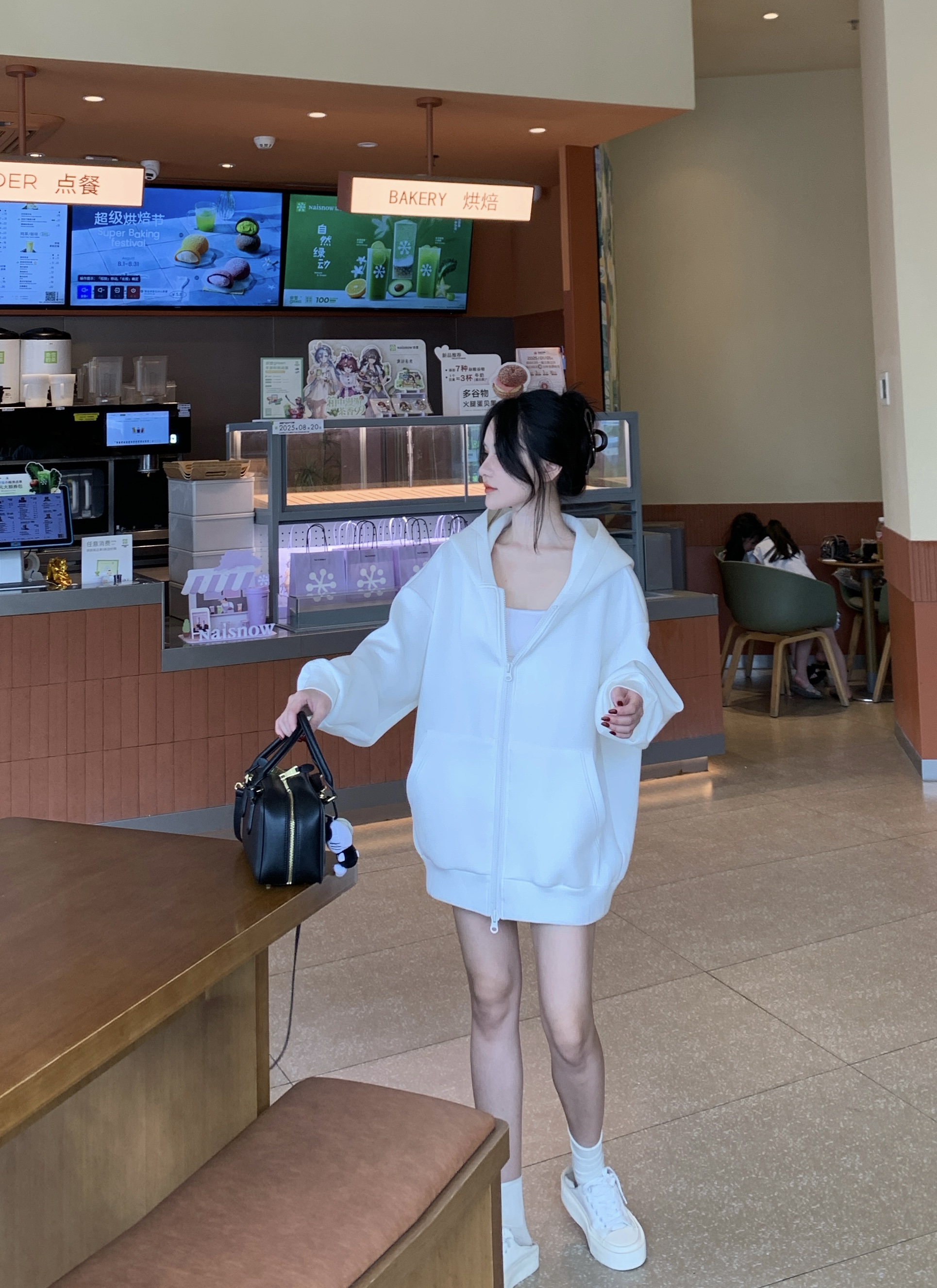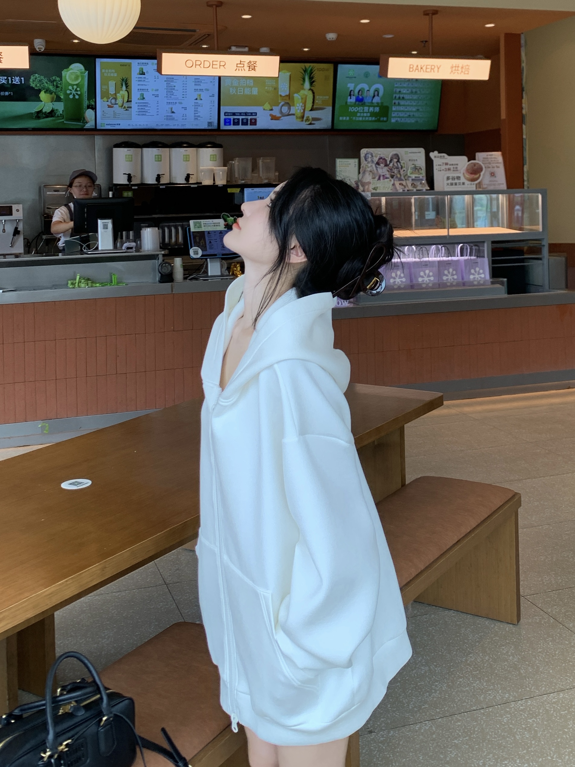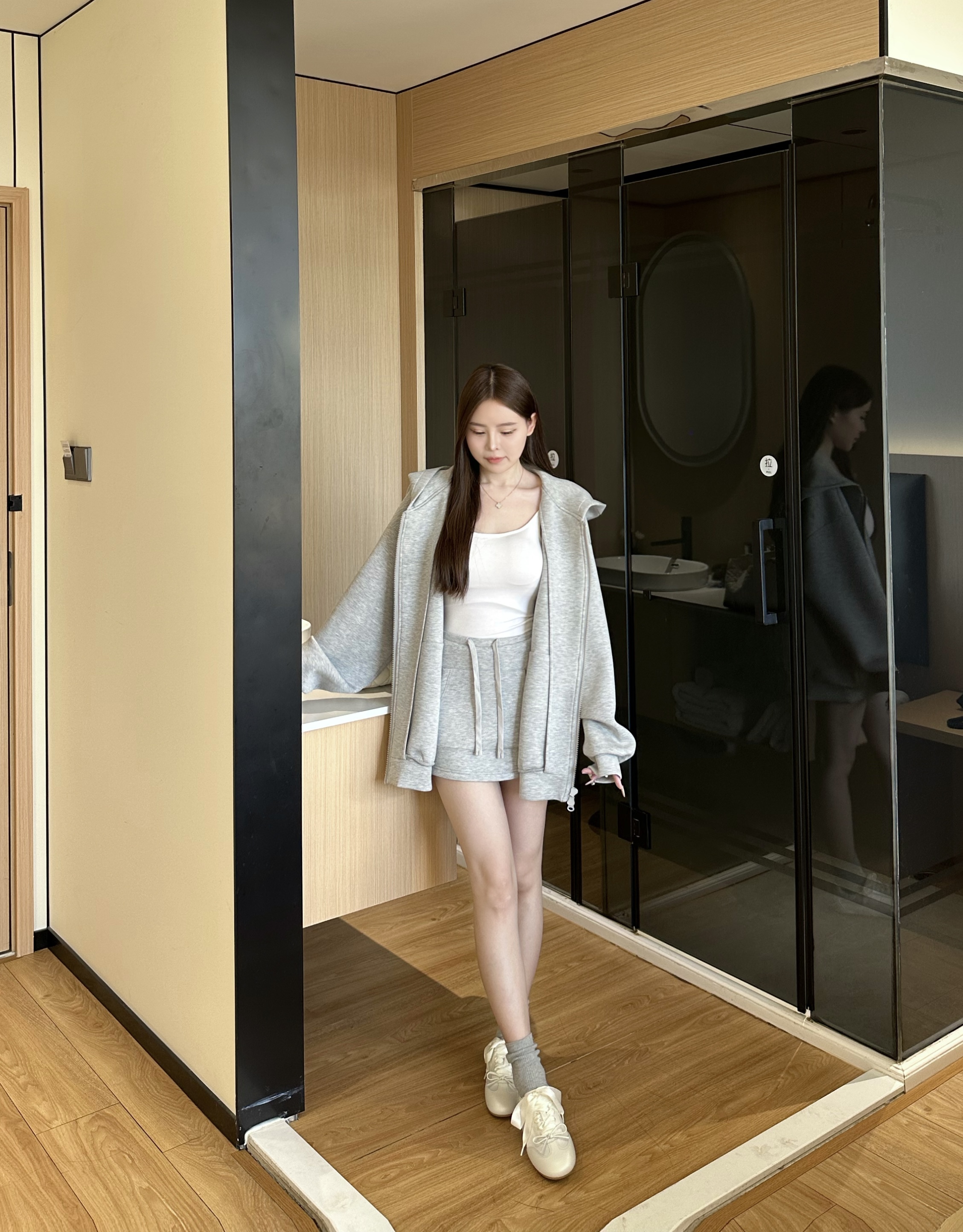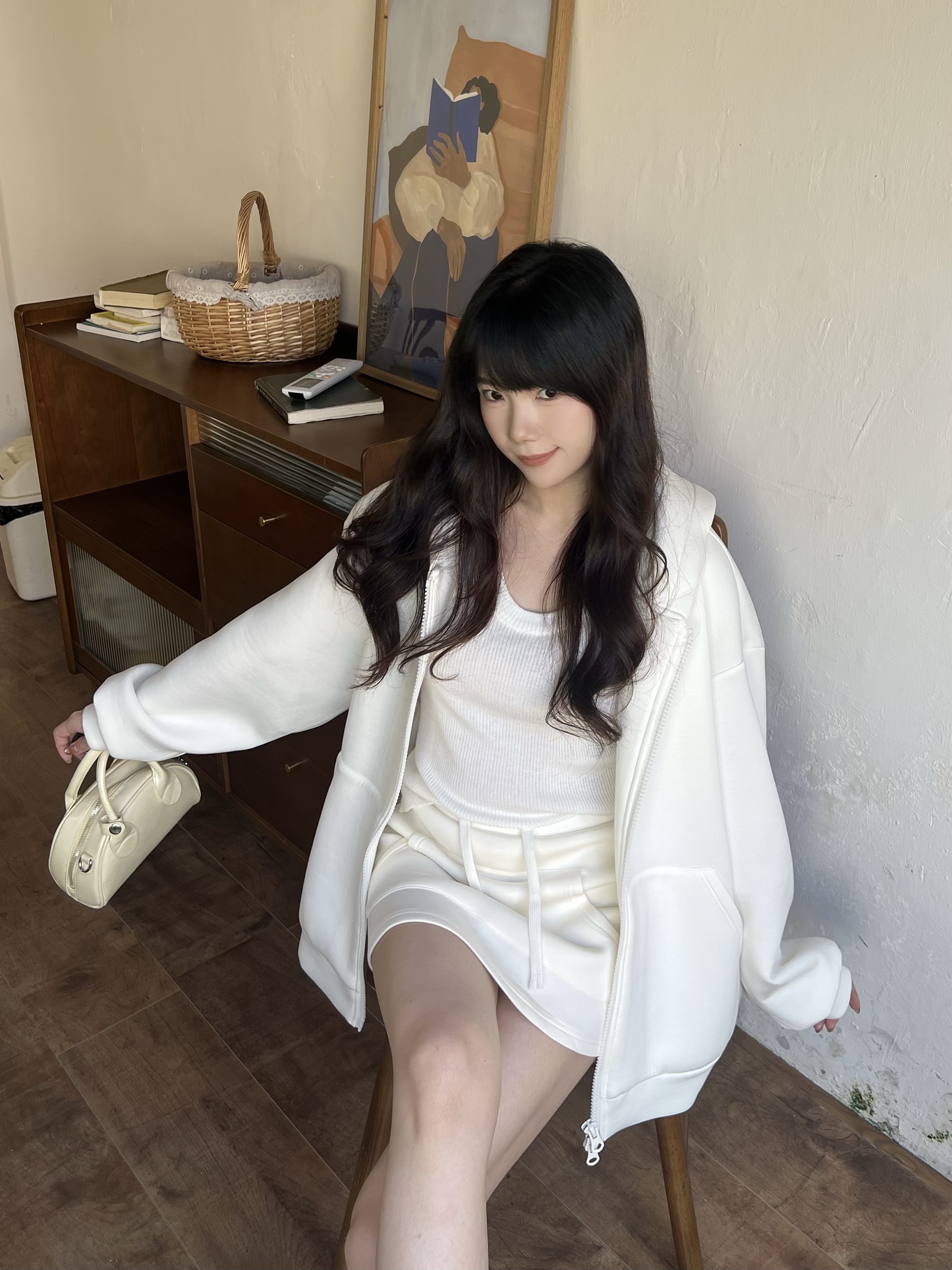 这件灰色卫衣外套真的是衣橱百搭王!面料摸起来软乎乎的,贴身穿不扎人