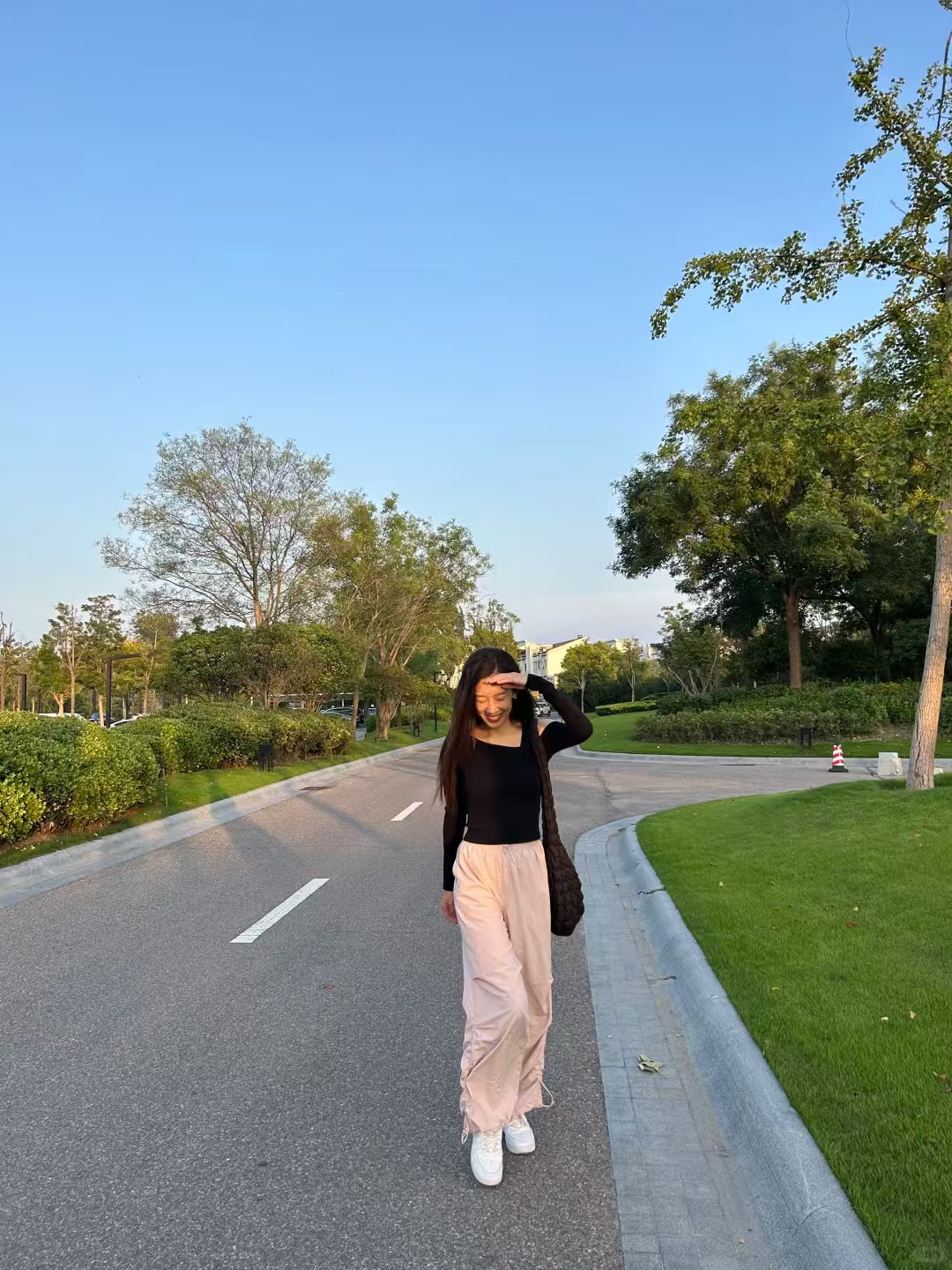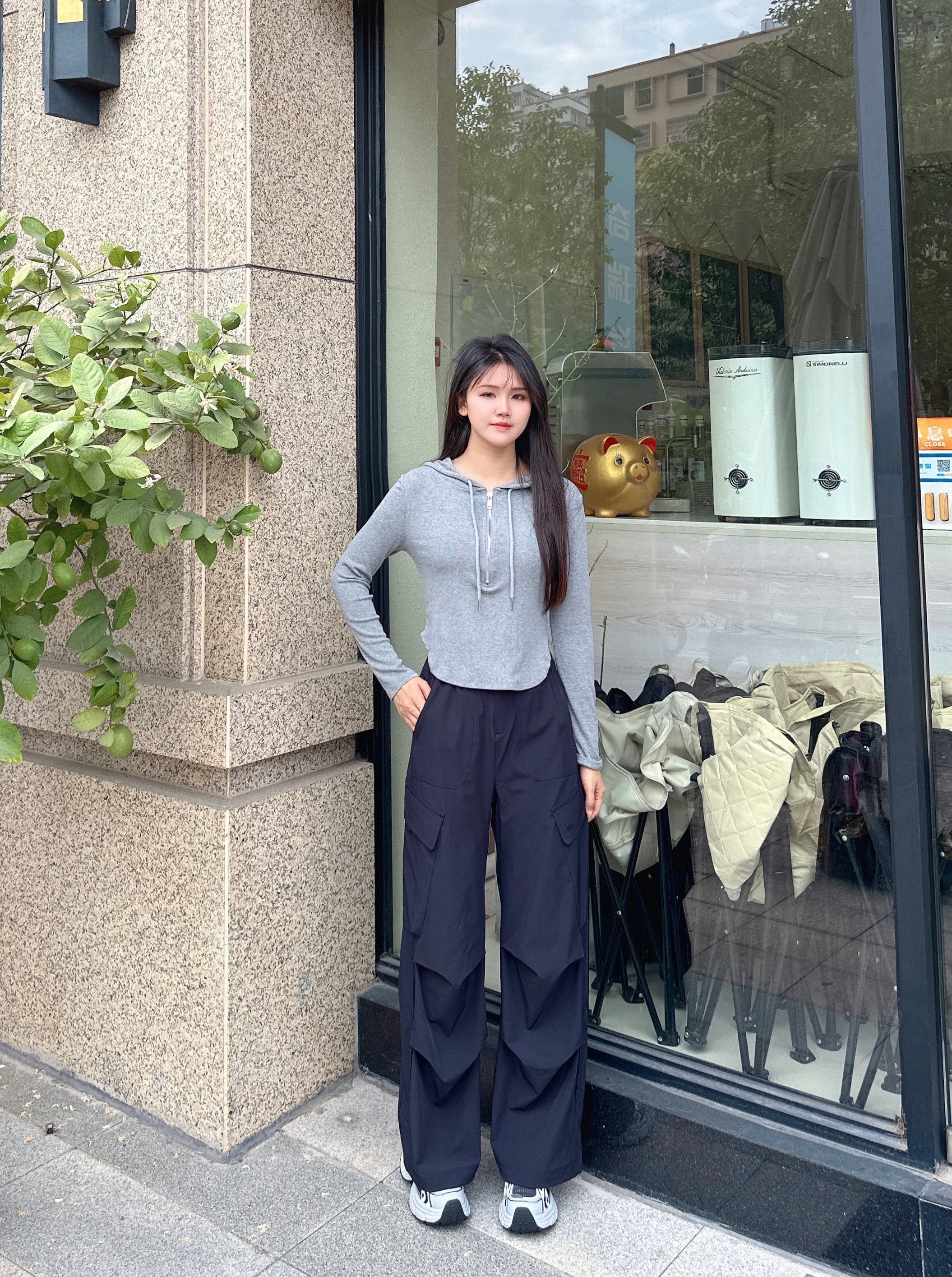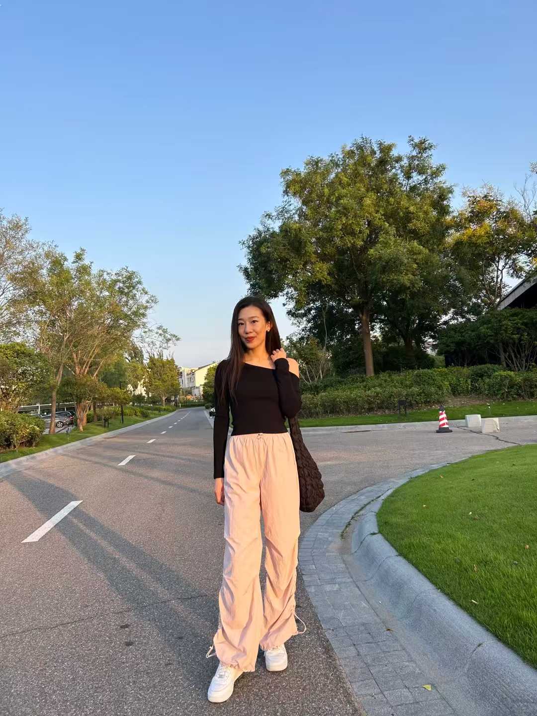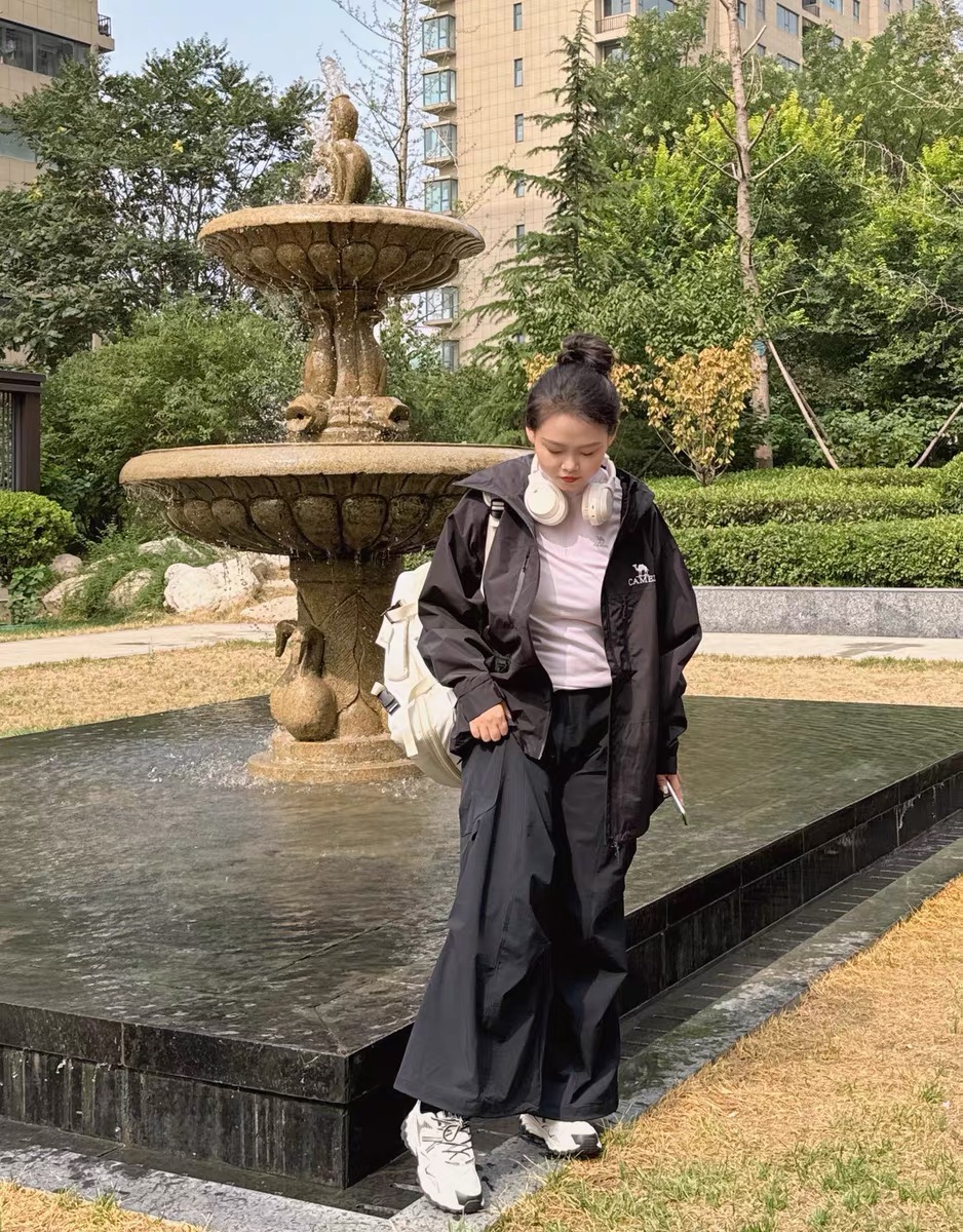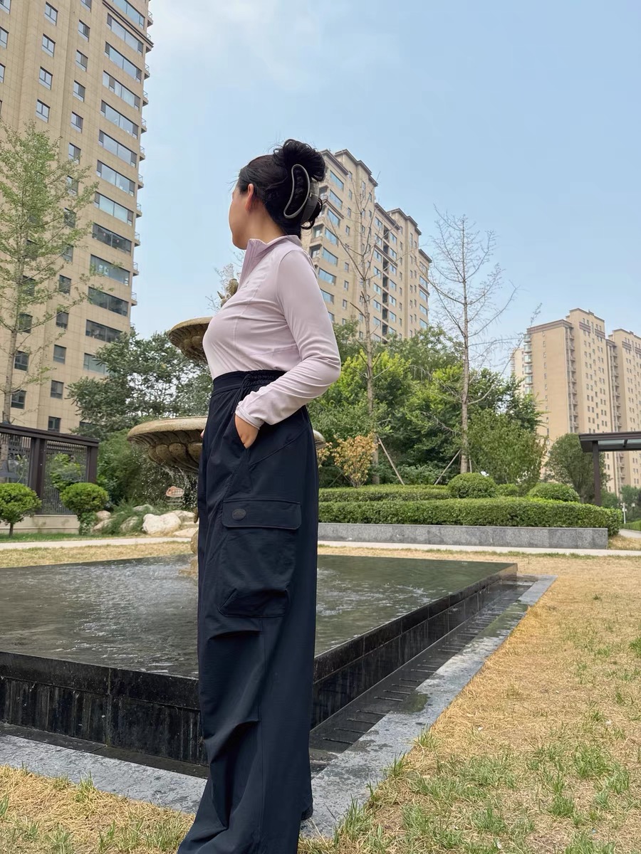这条黑色伞兵裤简直是小个子的救星!155cm 的我穿上,瞬间秒变大长腿。它的长度恰到好处,微微拖地,巧妙地遮盖住鞋子,从视觉上拉长腿部比例。腰部高腰设计,完美提升腰线。面料轻薄透气,夏天穿毫无压力,而且还具备防晒功能,通勤路上再也不怕晒黑,日常搭配简单的 T 恤就超好看,真的爱了!