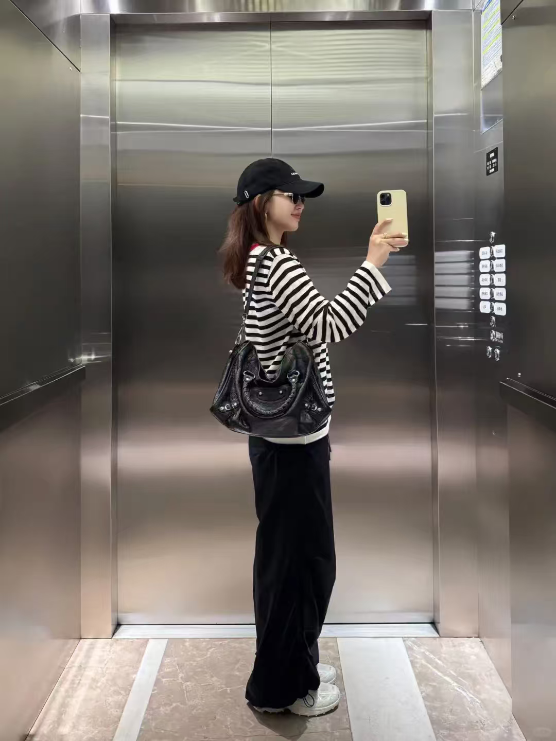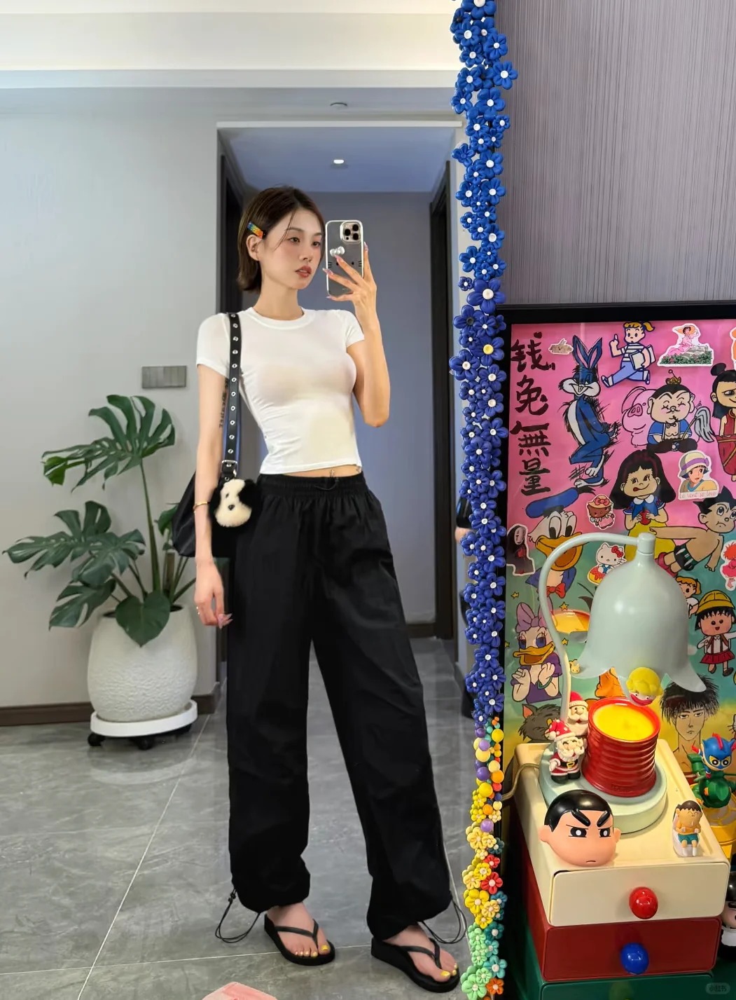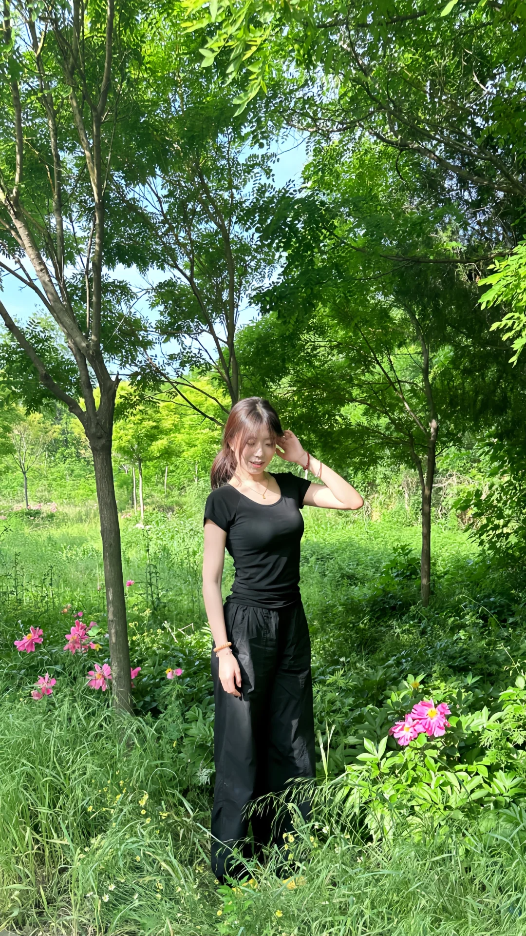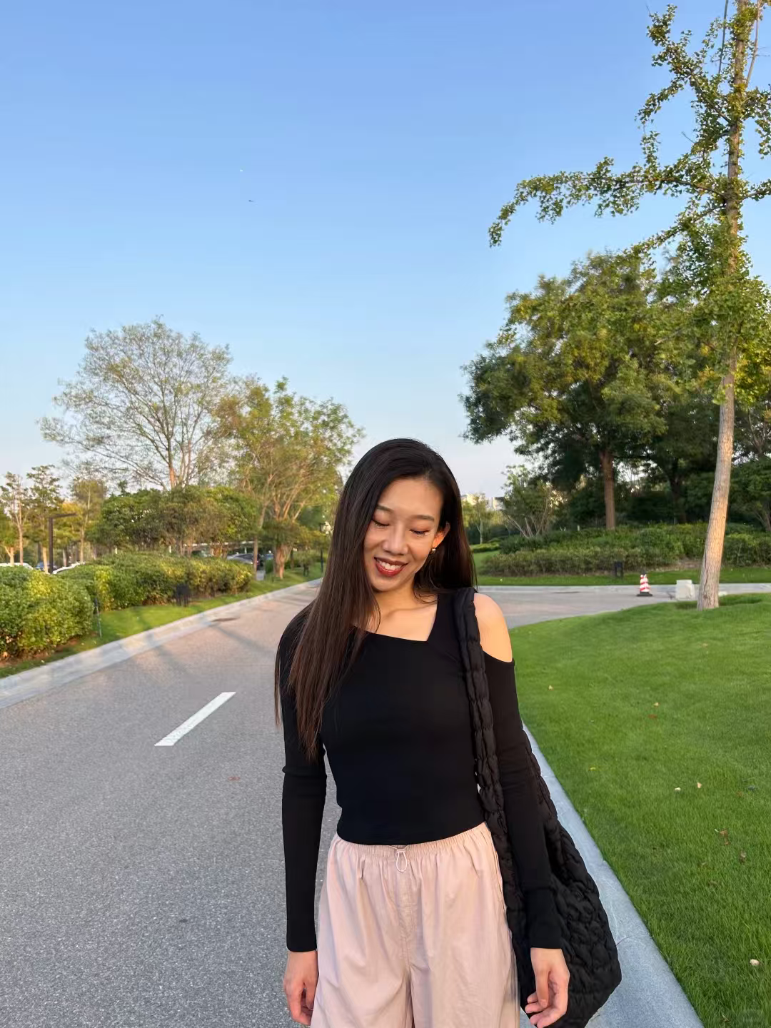 这条黑色伞兵裤简直是小个子的救星!155cm 的我穿上,瞬间秒变大长腿。它的长度恰到好处,微微拖地,巧妙地遮盖住鞋子,从视觉上拉长腿部比例。腰部高腰设计,完美提升腰线。面料轻薄透气,夏天穿毫无压力,而且还具备防晒功能,通勤路上再也不怕晒黑,日常搭配简单的 T 恤就超好看,真的爱了!