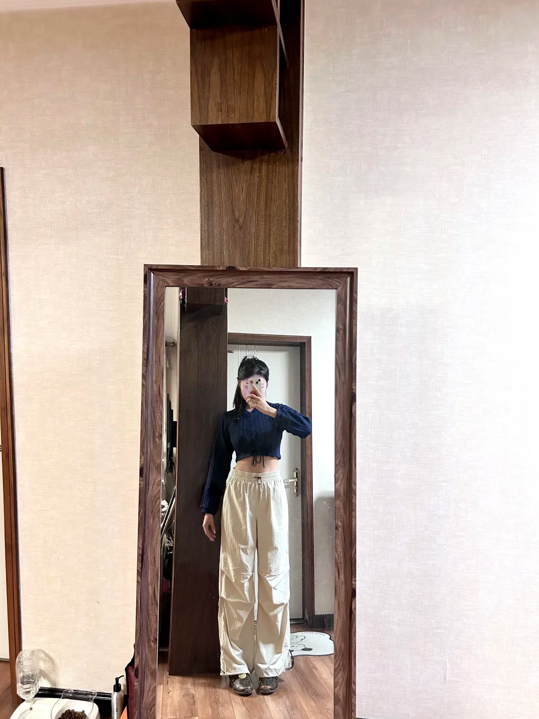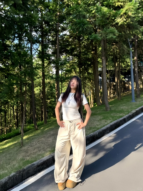 伞兵裤版型太绝了!卡其色真的温柔又百搭!捏褶设计太懂粗腿星人了,宽松廓形刚好藏住大腿赘肉,却完全不显臃肿,反而有种利落的松弛感。面料有垂感,走路都带风,搭配长T就很有范儿。腰头是松紧抽绳,穿脱方便,水洗后也没变形,终于不用为穿裤子发愁了,已安利给同是粗腿的闺蜜!