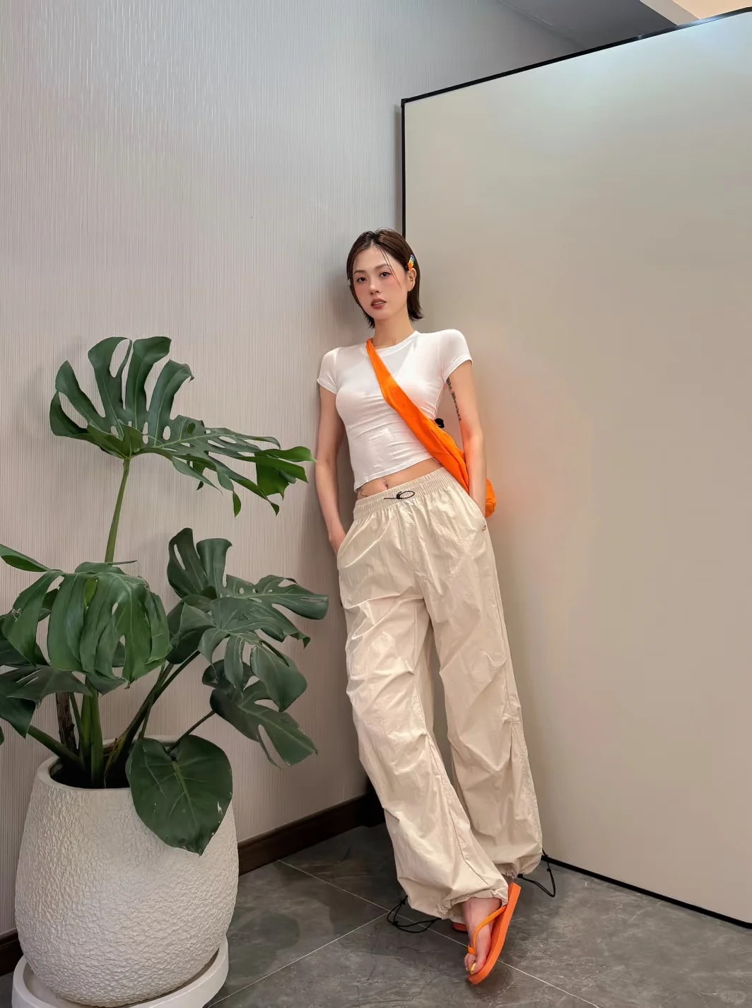 夏天穿这个裤子太爽了吧,超薄,而且这个裤子超显腿长,穿起来酷酷的,上身显高,版型很nice