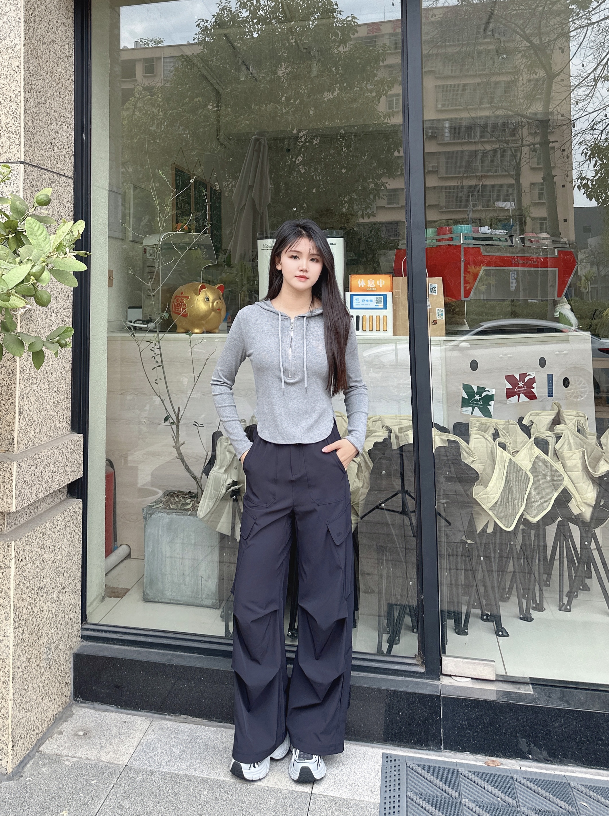 这条伞兵裤简直是我的本命裤!宽松设计对身材包容度太高了,胯宽、假胯宽都能轻松藏住,直筒版型从视觉上拉长腿部比例,小个子也能驾驭。面料垂感一级棒,挂在那里就很有型,穿上身舒服又自在。抽绳腰头比普通裤子更灵活,吃饱也不勒肚子,裤脚抽绳可以自由调节松紧,想酷想慵懒都能满足。卡其色是那种很低调的高级感,怎么搭都不会出错,性价比绝了!