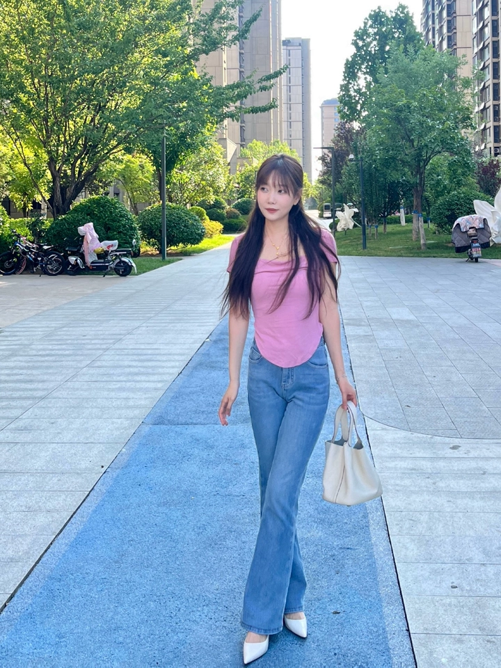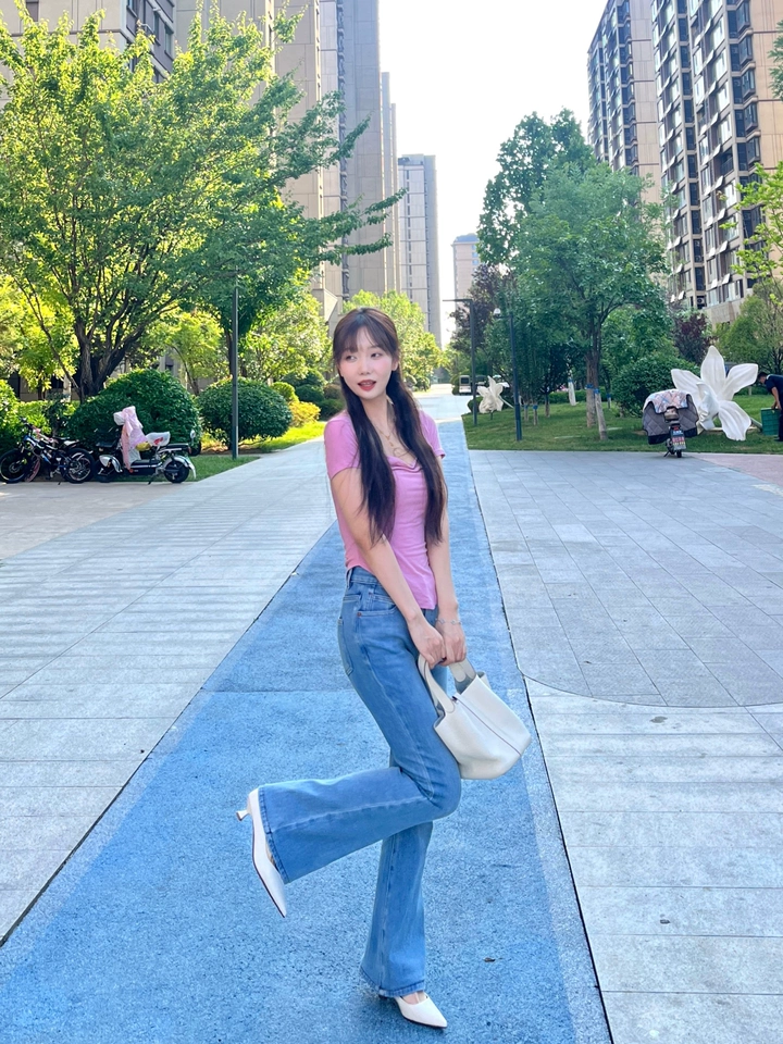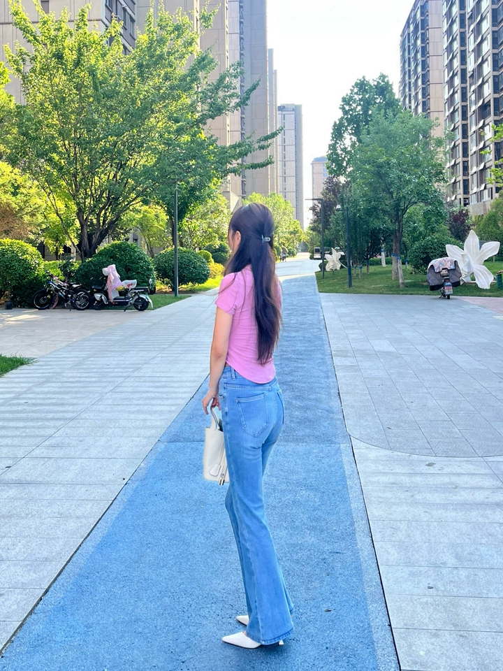 米白色真的很绝,搭这种浅色的喇叭裤特别有魅力,气场到位,穿上很舒服不磨脚,跟型是我喜欢的,走路稳当当的,没毛病~