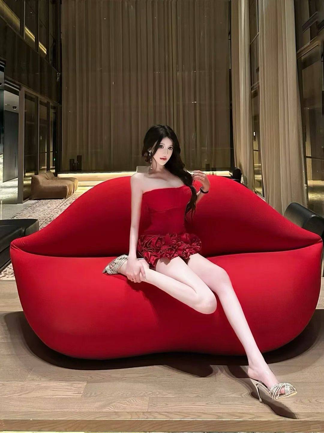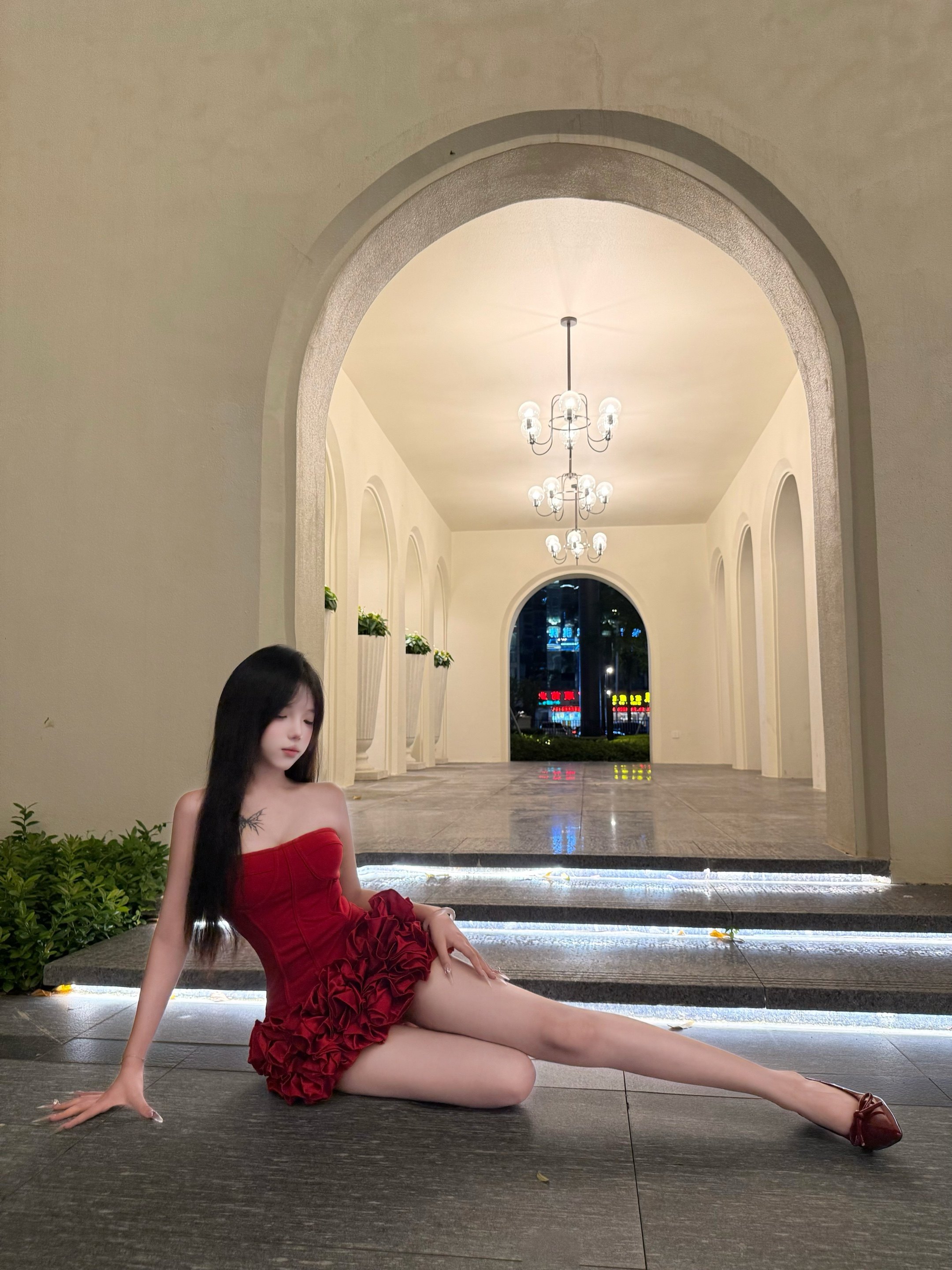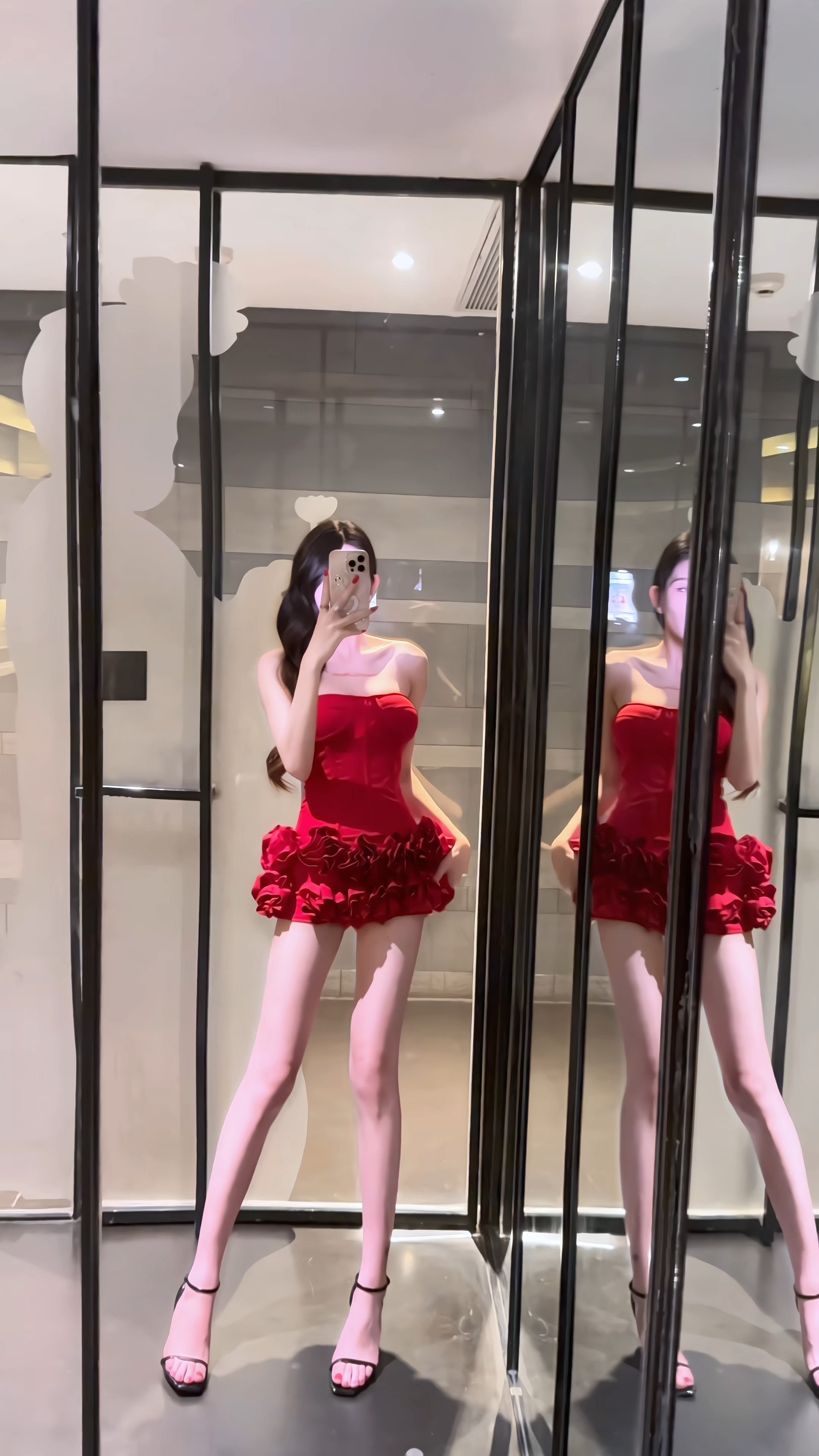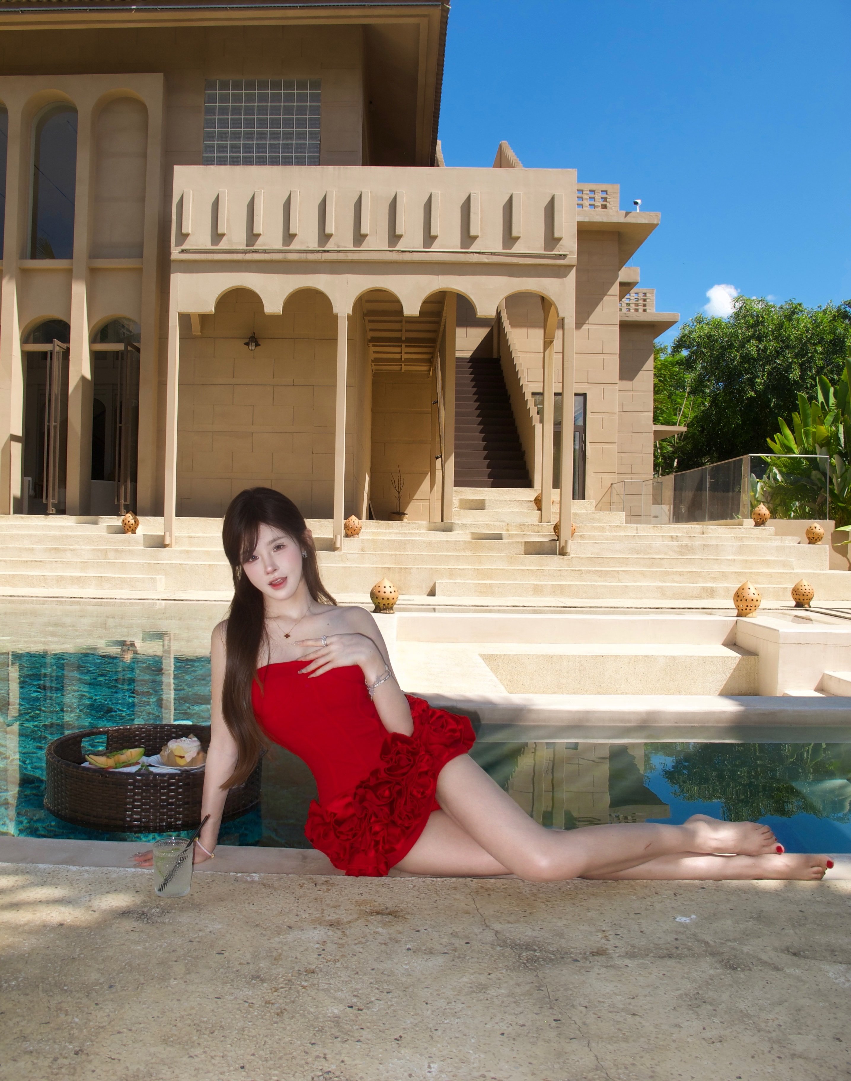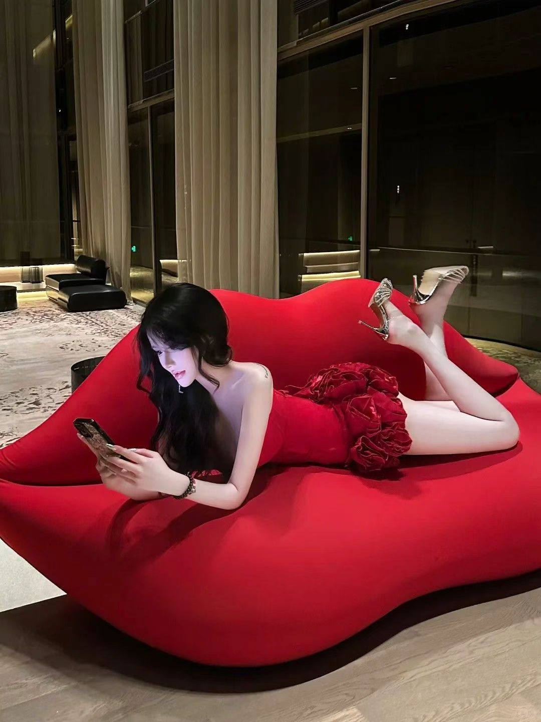 红色太惊艳了!款式很大胆又吸睛,抹胸设计凸显迷人锁骨和肩线,裙摆的花朵装饰精致又独特。质量没话说,面料质感高级,做工也很精细。版型超级显瘦,把身材比例修饰得特别好。坐在造型别致的红色大沙发上,和裙子颜色很好看,整个画面时尚感爆棚,穿上就是人群中最亮眼的存在!